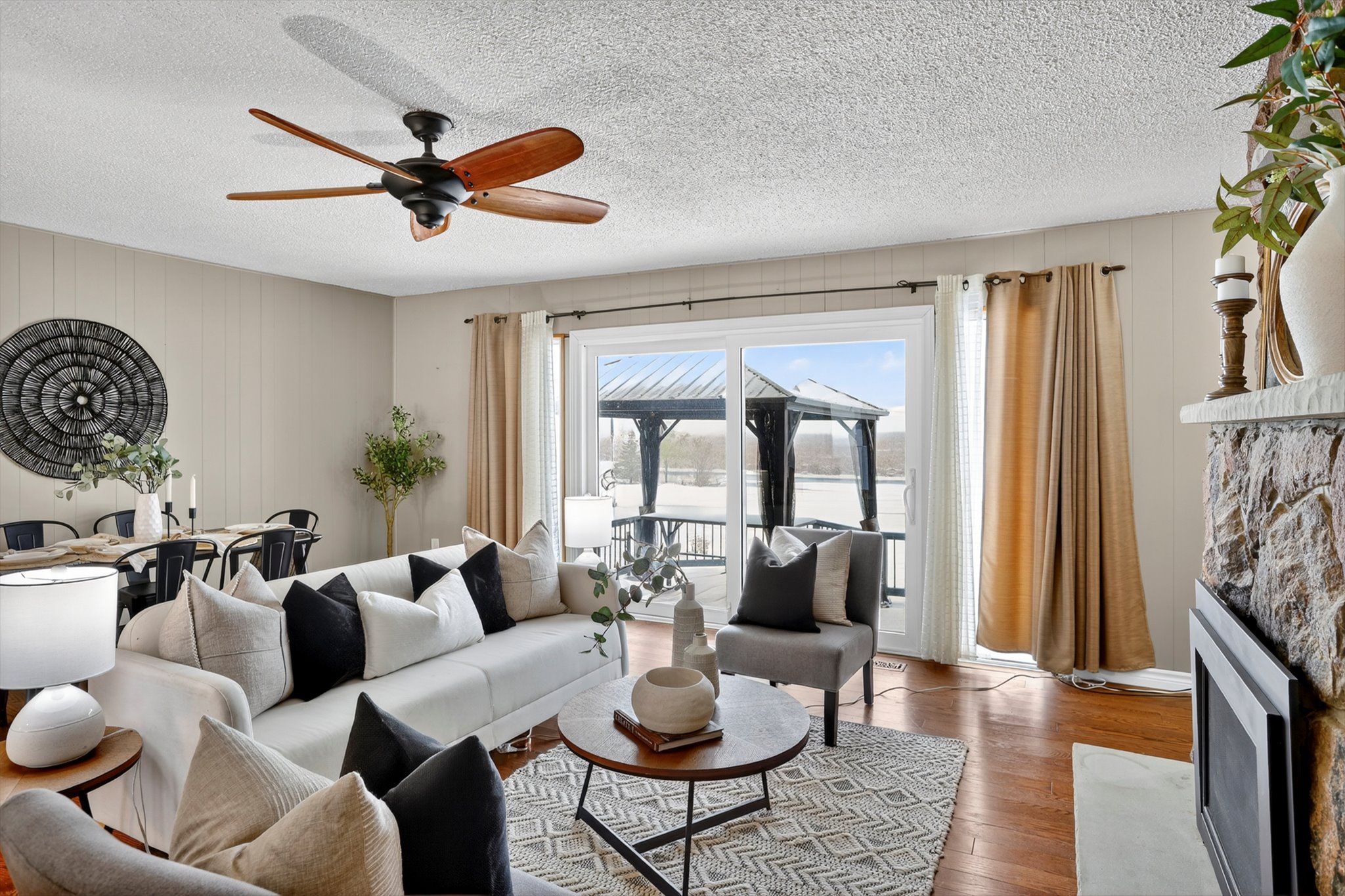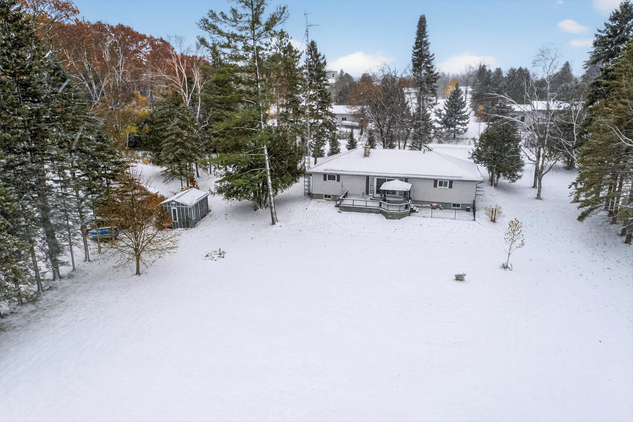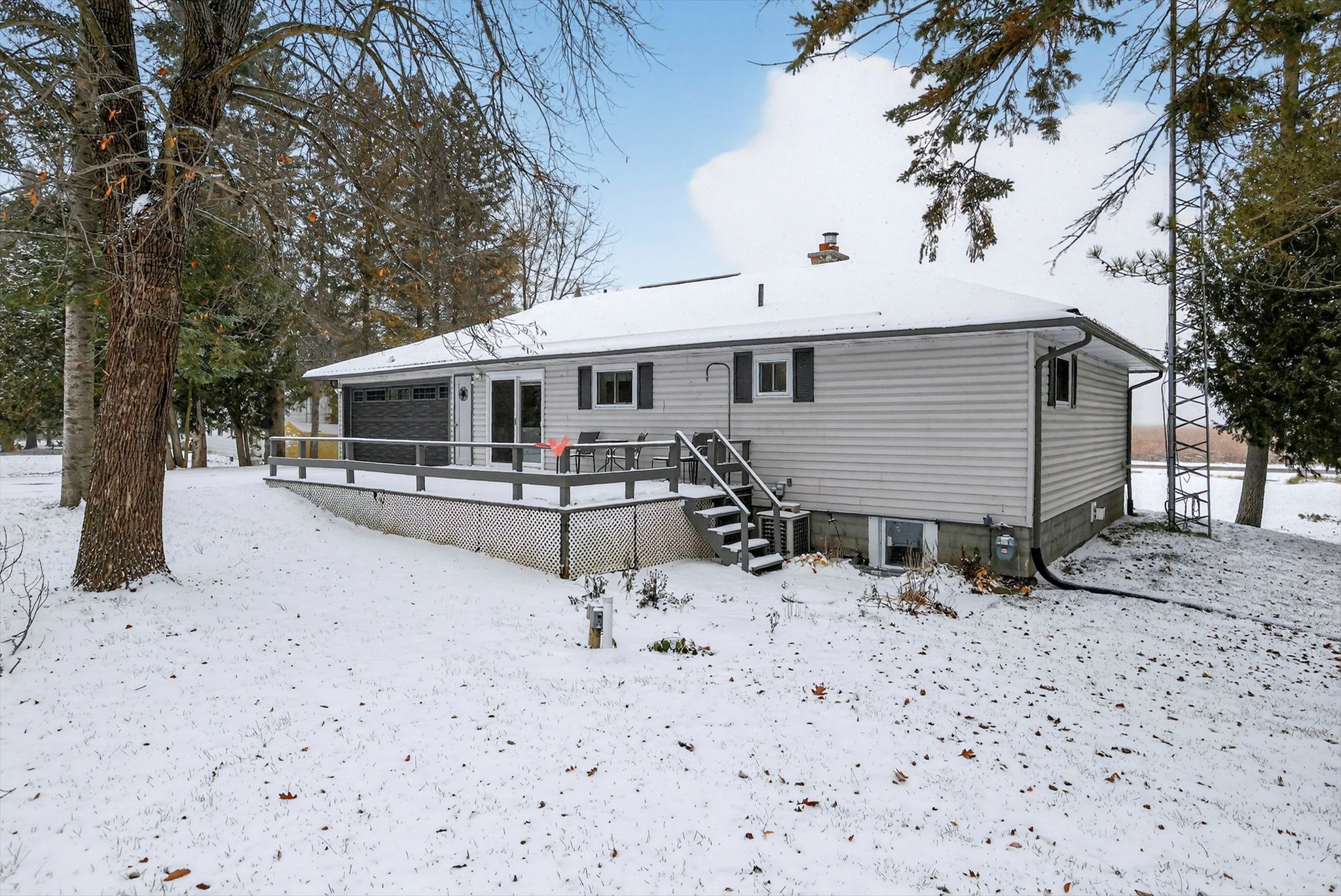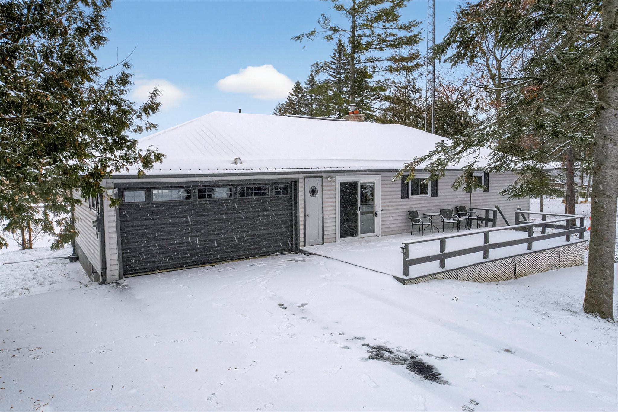• Level entry bungalow on 0.8 acre lot with over 100 ft of lake frontage.
