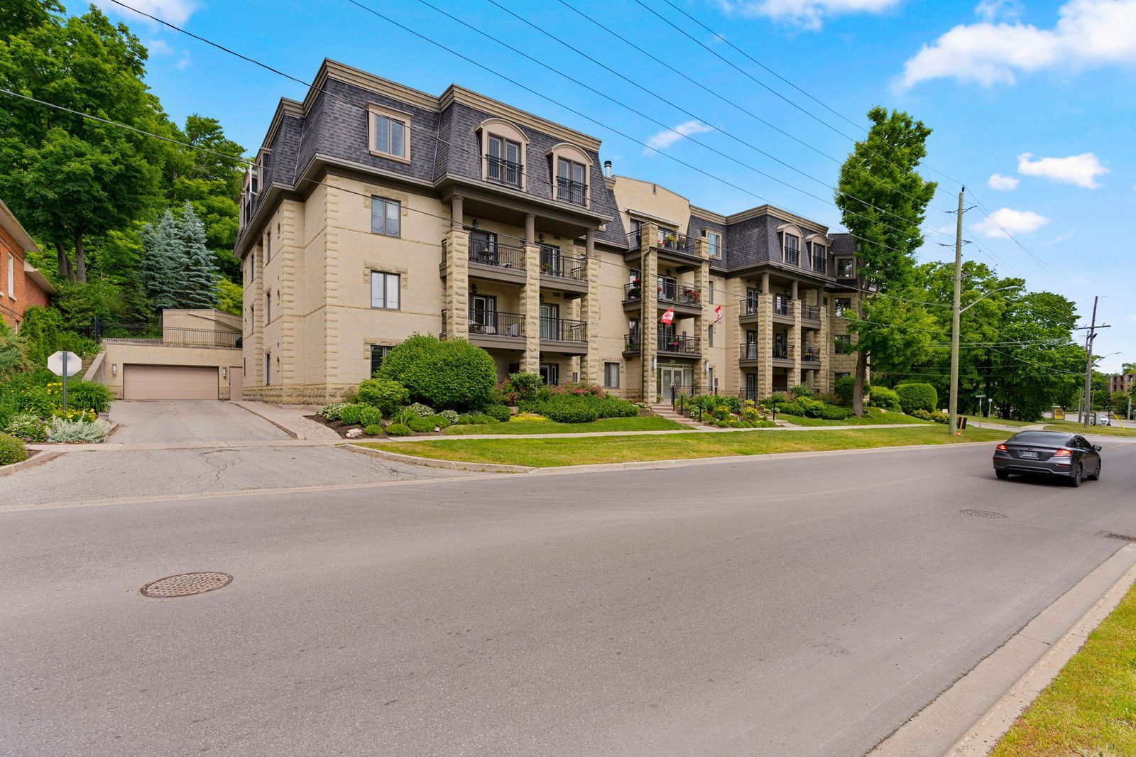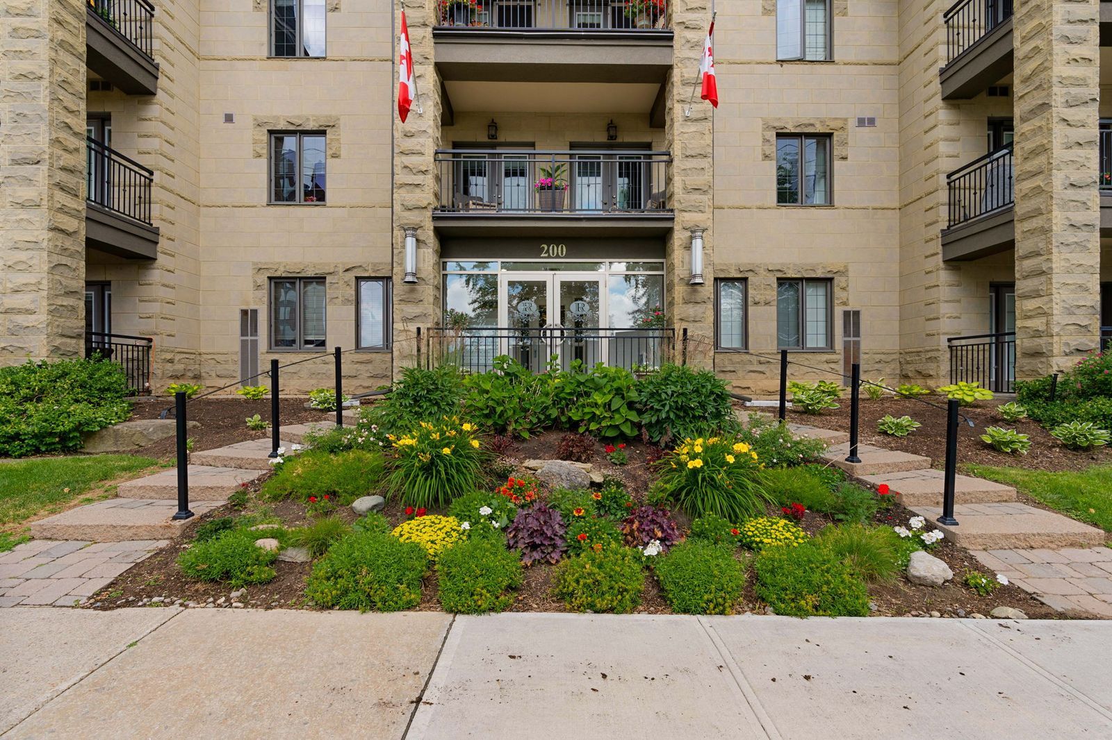 Ground floor end unit in a well-maintained, quiet building just steps to the waterfront & downtown barrie! Life at "the roxborough" condos brings together quiet living, beautifully kept surroundings, and the ease of walking to the waterfront, the downtown core, dining, entertainment, and the farmers' market. This charming and quiet 3-storey building stands out with its elegant stone exterior, boutique character, and meticulously kept gardens, offering underground and visitor parking, a community room, and a guest suite. The well-kept interior with a functional layout features newer wide-plank engineered hardwood flooring through the principal rooms, adding warmth and durability, while the modernized u-shaped kitchen makes a statement with quartz countertops, white shaker cabinetry topped with crown moulding, and stainless steel appliances. Double garden doors open from the living and dining room to a ground-floor terrace wrapped in lush greenery and mature gardens, a rare and inviting extension of living space when the weather turns warm. Two comfortable bedrooms each offer double closets, adding flexibility for guests, hobbies, or a tucked-away home office. Water is included in the condo fees for predictable monthly living, and the unit includes a locker and the option to rent a second parking spot. This is a standout #hometostay for buyers who want downtown living with a calmer place to call home.