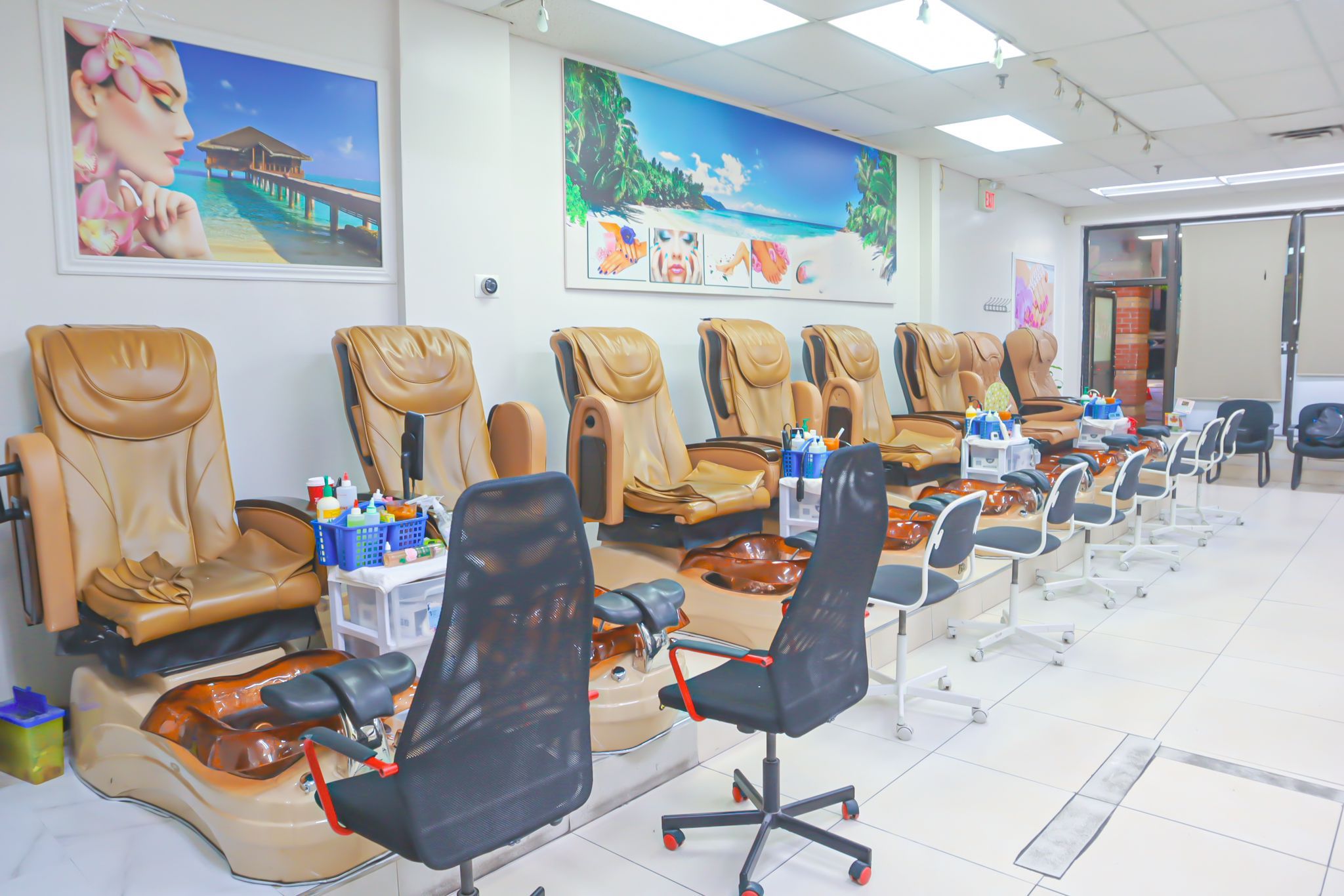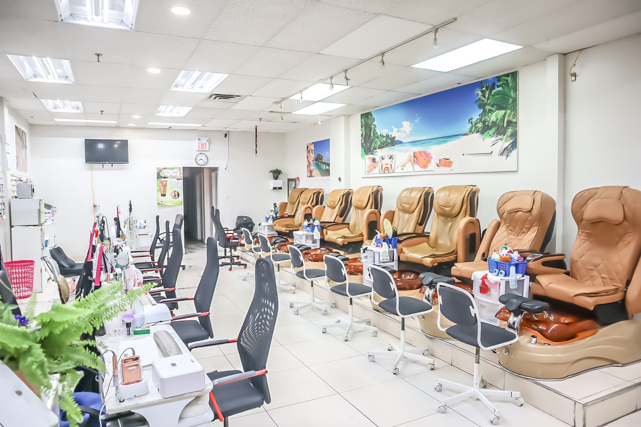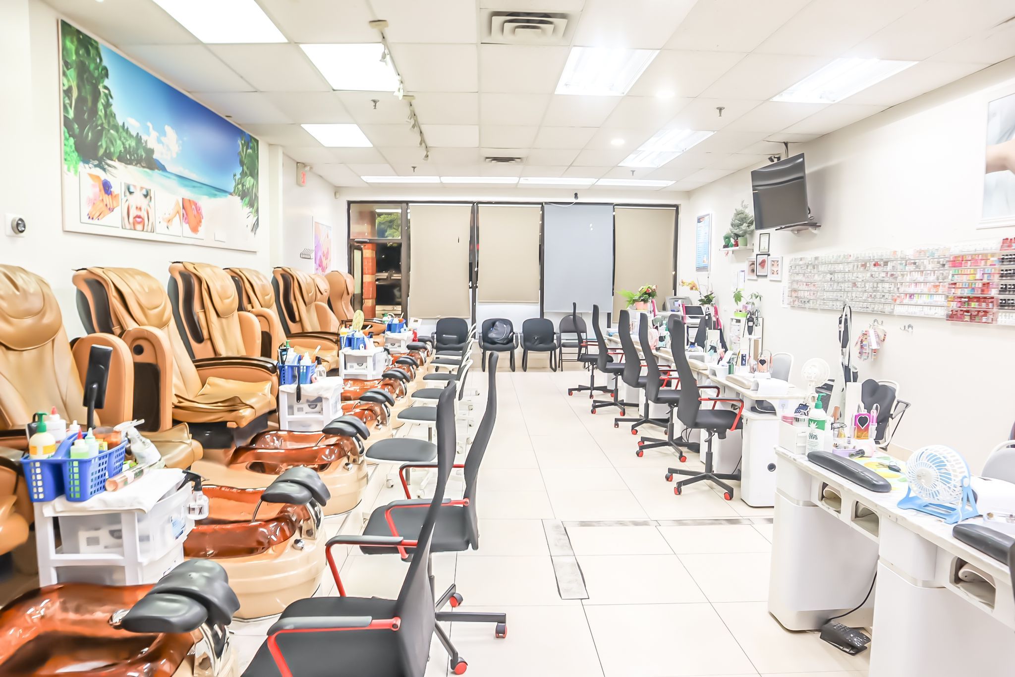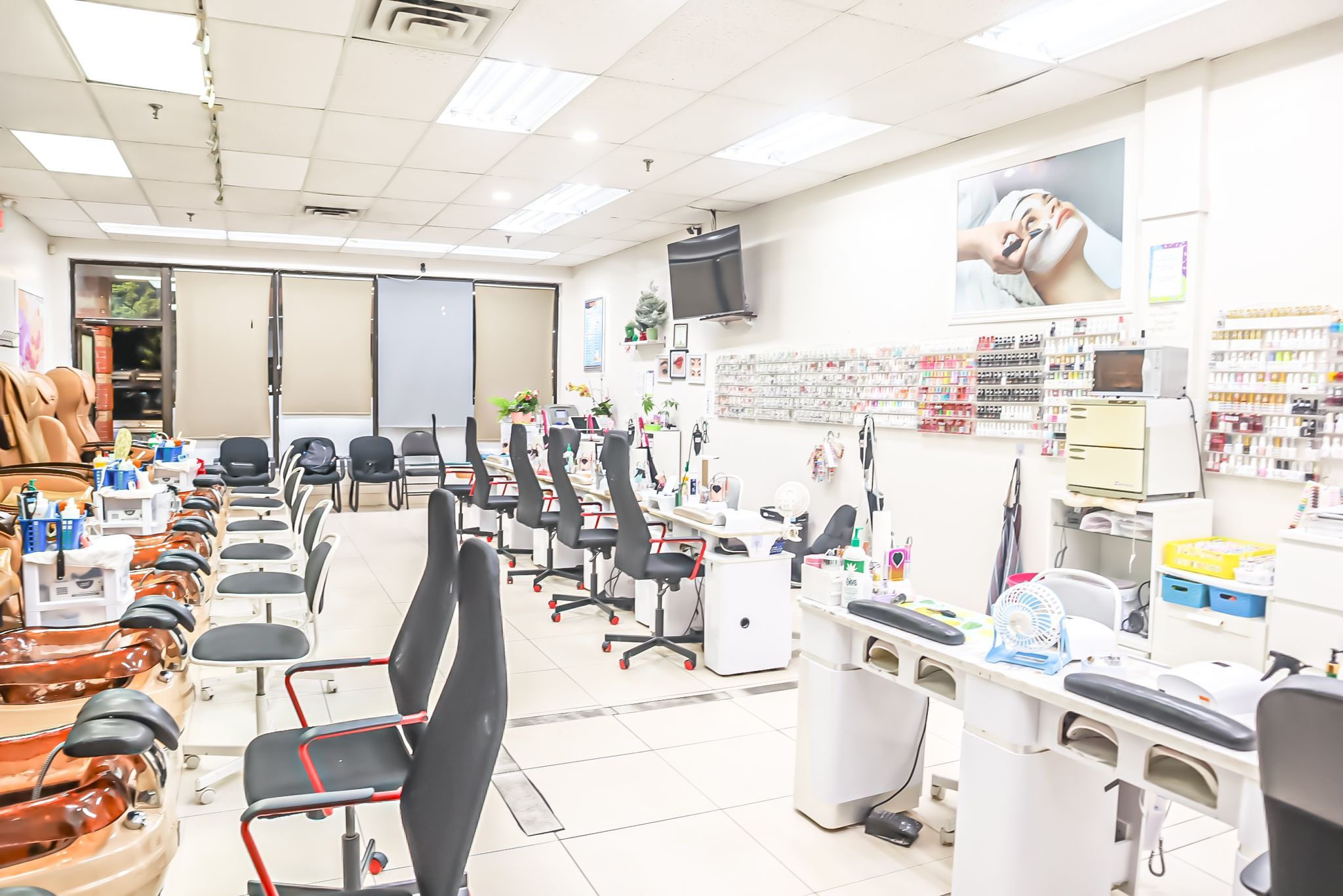 • Spacious 1200 Sqft layout featuring 8 manicure tables and spa chairs.