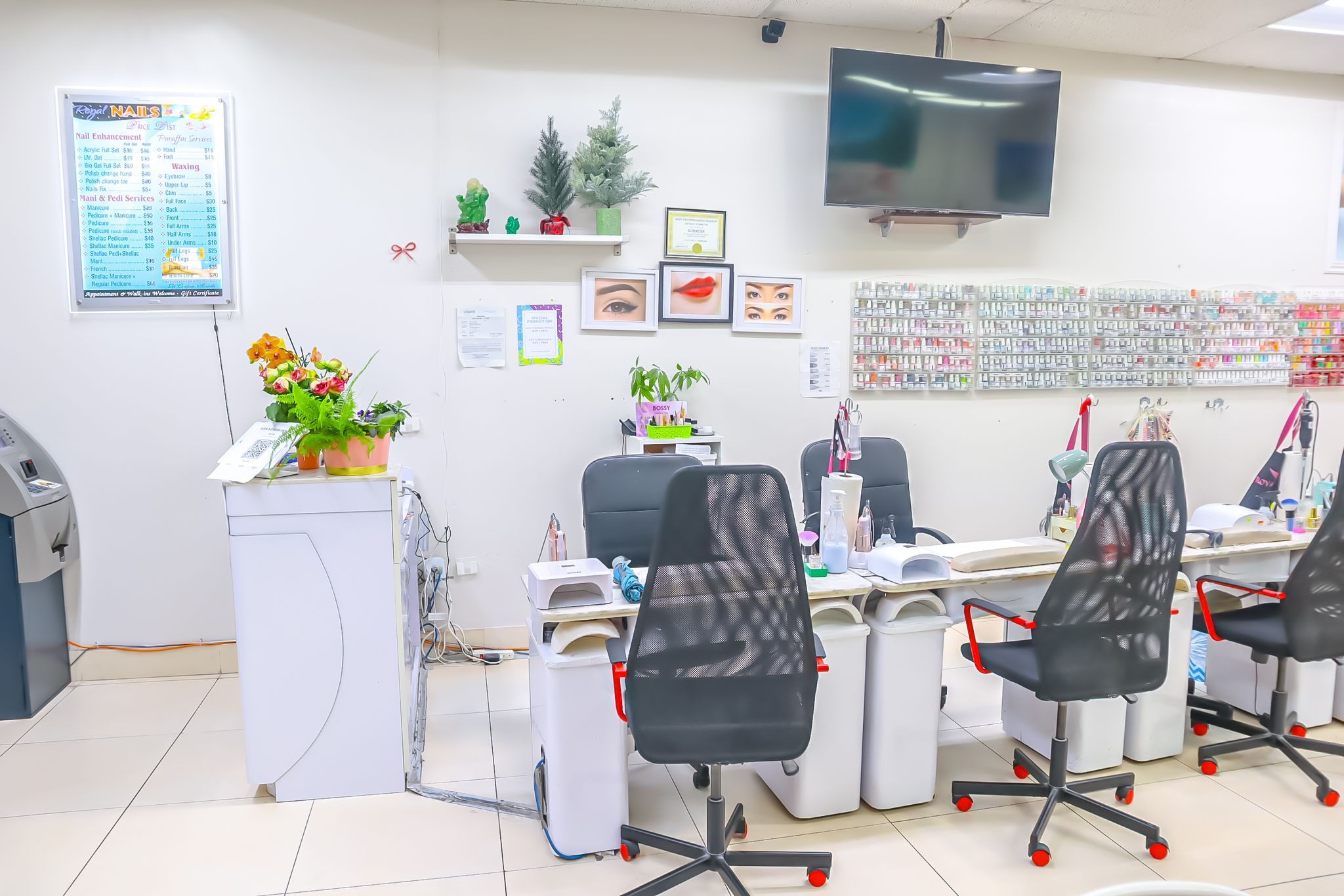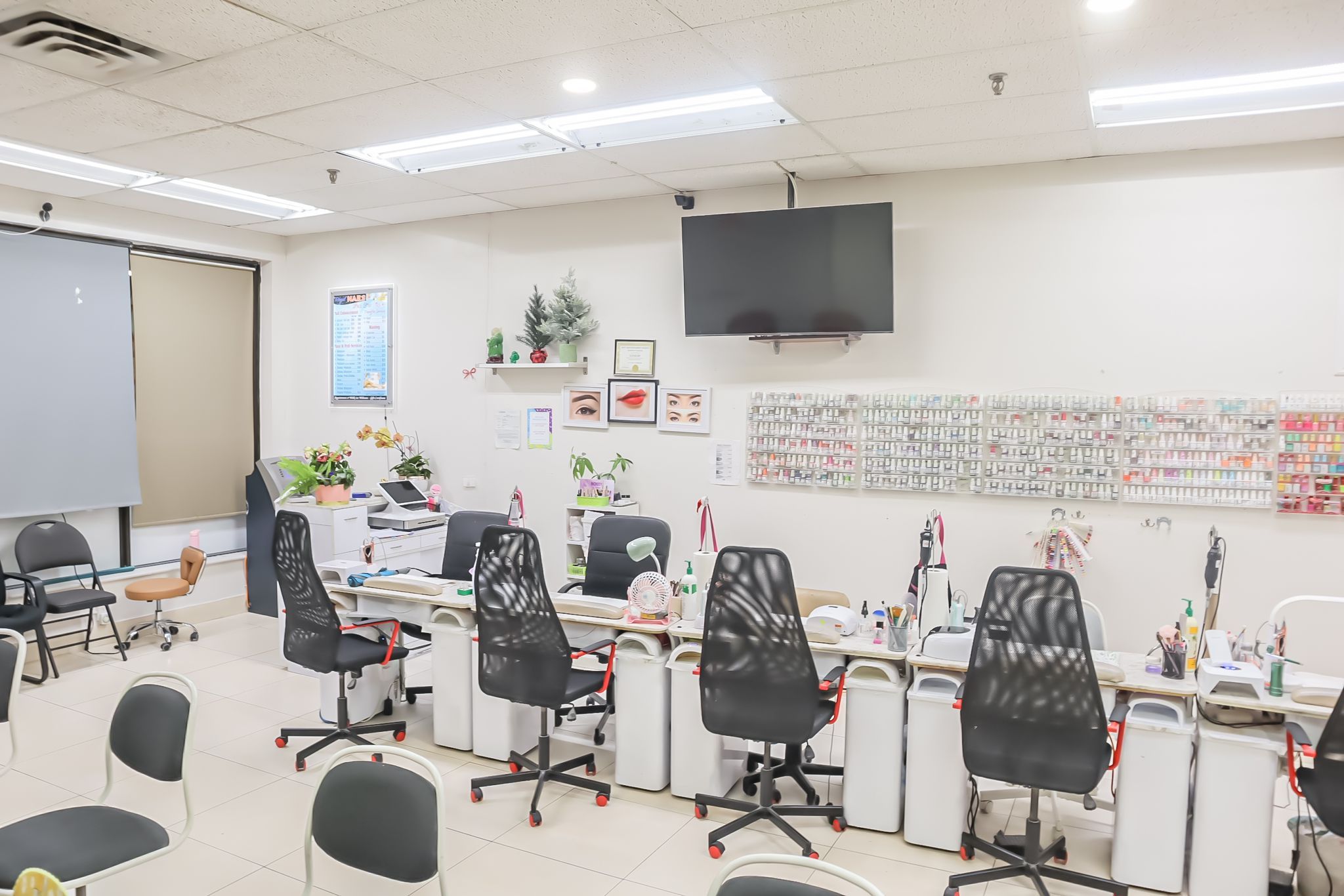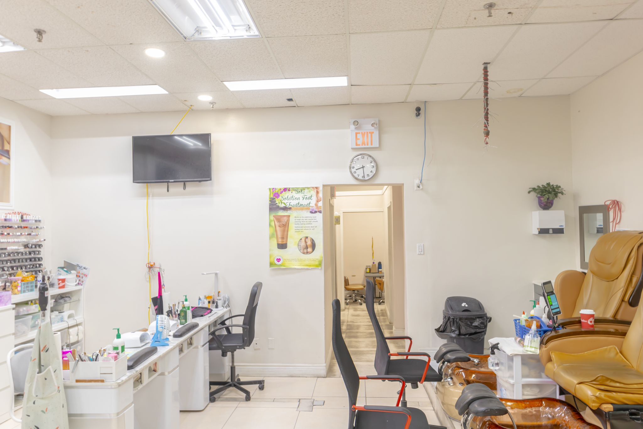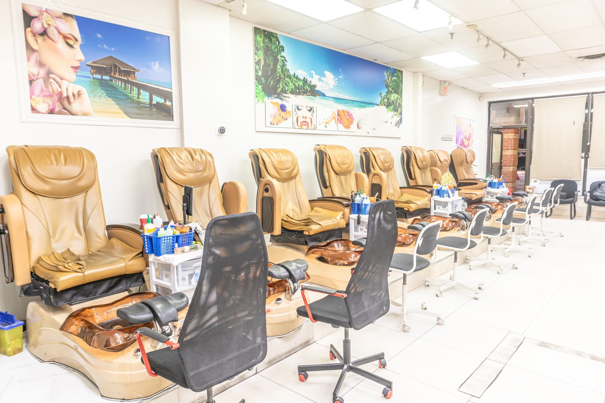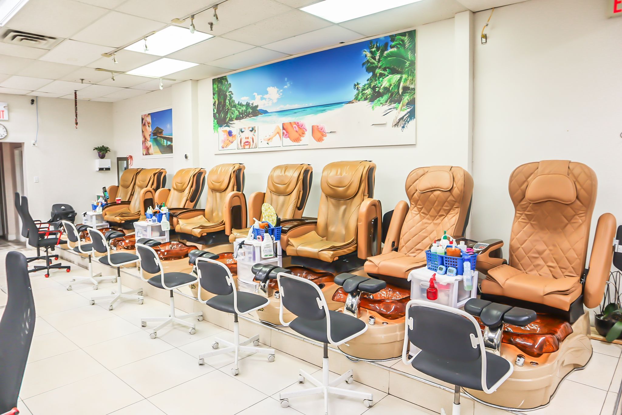 • Spacious 1200 Sqft layout featuring 8 manicure tables and spa chairs.