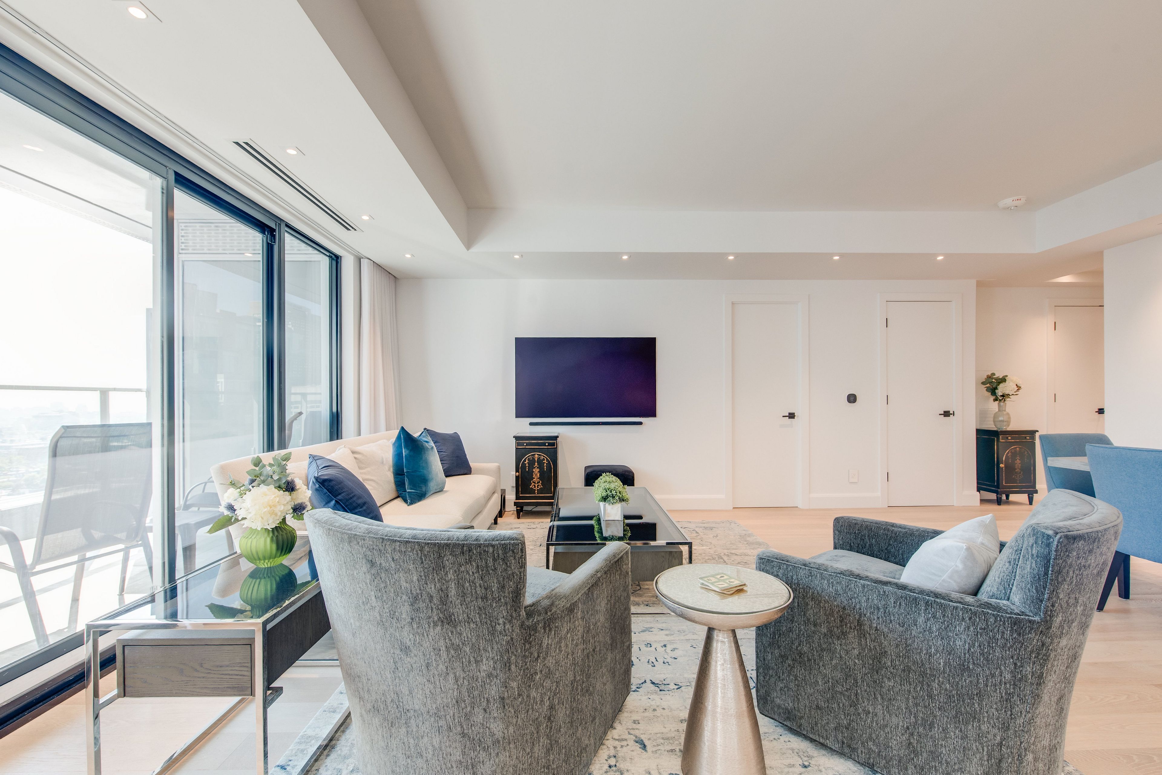 • Full-service amenities including 24/7 concierge, gym, and indoor pool.