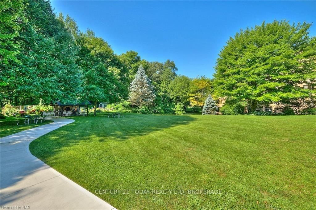 Welcome to beautiful fonthill ! ... 2 bedroom, 2 bath 1315 sq. Ft. Condo apartment in highly sought after lookout village. This no pets, no smoking building is serenely set on a beautifully manicured 7-acre parklike treed landscape, a nature lovers paradise and resort living lifestyle. A definite accessibility bonus is being a ground floor unit having direct access from the parking garage therefore elevator/stairs are not required. Premium location overlooking trees, ravine provides a private quiet peaceful setting. Wall-to-wall windows and a southern exposure providing plenty of natural daylight. This is a split plan layout with a bedroom/bath at each end of the unit offering great privacy. Efficient kitchen layout w/ updated s/stl appliances, huge open concept living/dining/office area. Each unit comes with storage locker & assigned underground parking spot. This complex offers saltwater heated inground pool, beautiful outdoor gazebos, patios ,underground parking/car wash, golfclub storage room, billiard room, bbq area, garden plots, exercise room, library, 2 laundry rooms on each floor, party room. Only a minute to downtown fonthill, shopping, restaurants, fresh fruit markets meridian community centre and championship golf courses. You will be amazed at the location and outdoor space this property has to offer.