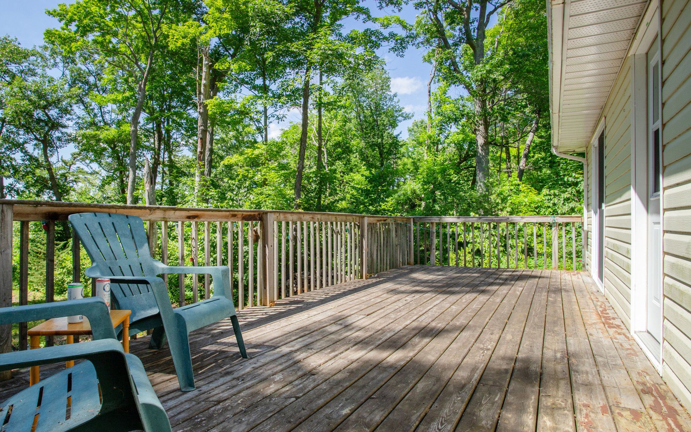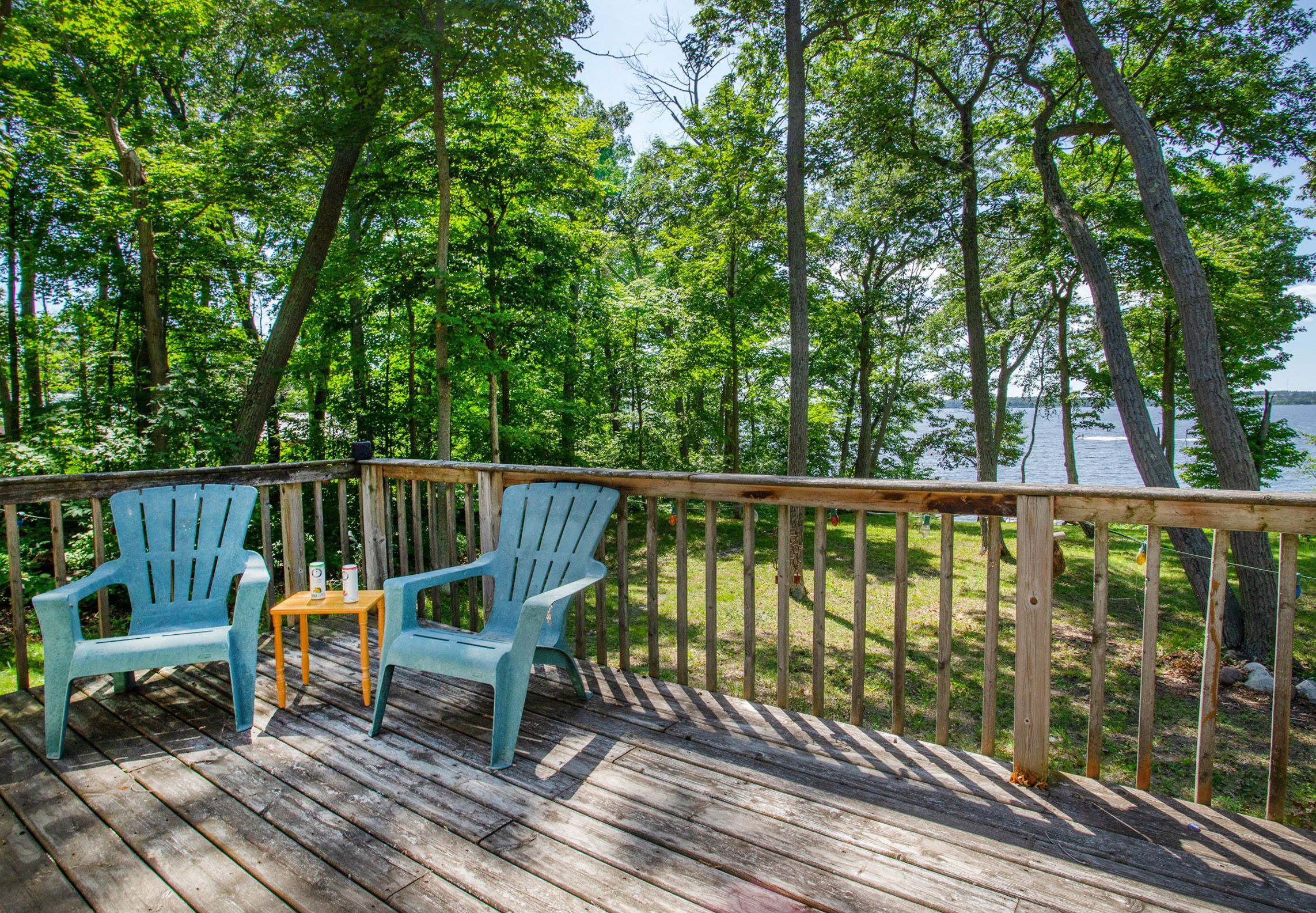 • Enjoy morning coffee on the deck overlooking the lake.