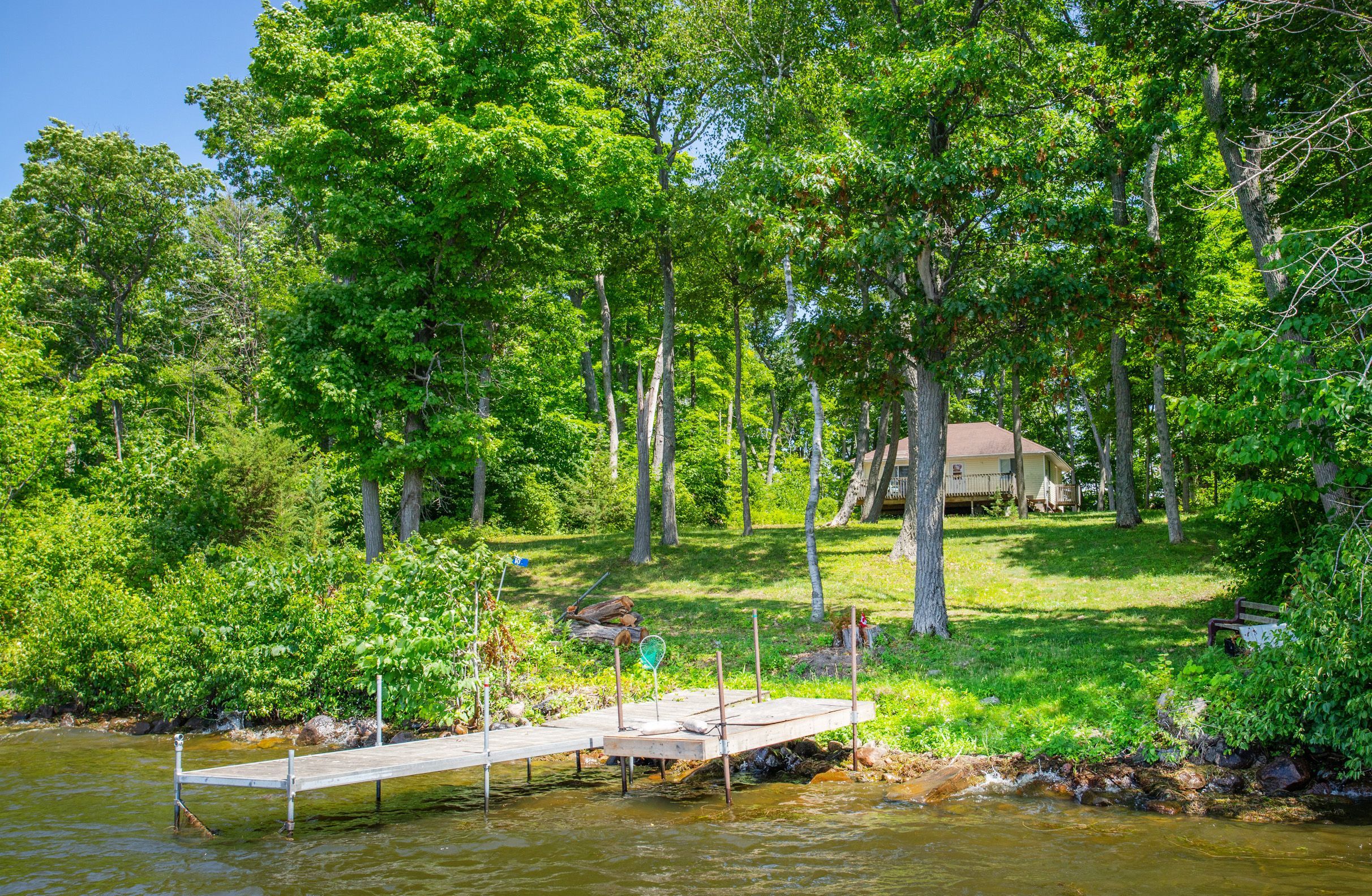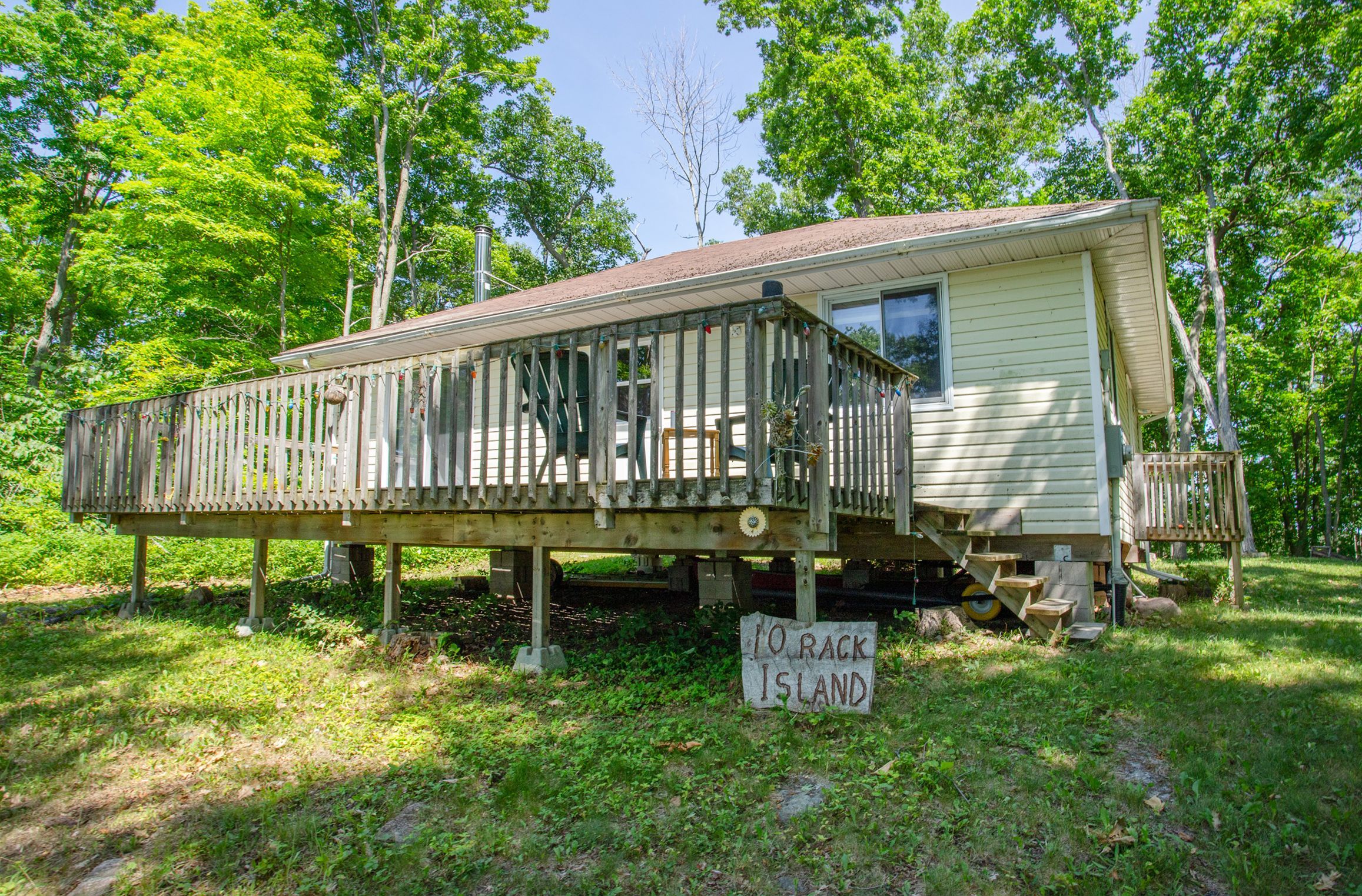 Rack island, rice lake. Enjoy the simplicity of this 2 bedroom, rustic, island hide-away. The perfect little spot to get back to nature. Enjoy the simple things in life.... Early morning coffee on the deck with the sound of waves lapping the shoreline, refreshing afternoon dips in the lake and quiet moments around the crackling bonfire watching the blazing rice lake sunsets slowly dissipate into nightfall. Enjoy the rustic, carefree ambiance as is, or add your own personal finishing touches. Island dock included with plenty of space to pull those toys ashore! Deeded, lit & gated, mainland parking included.