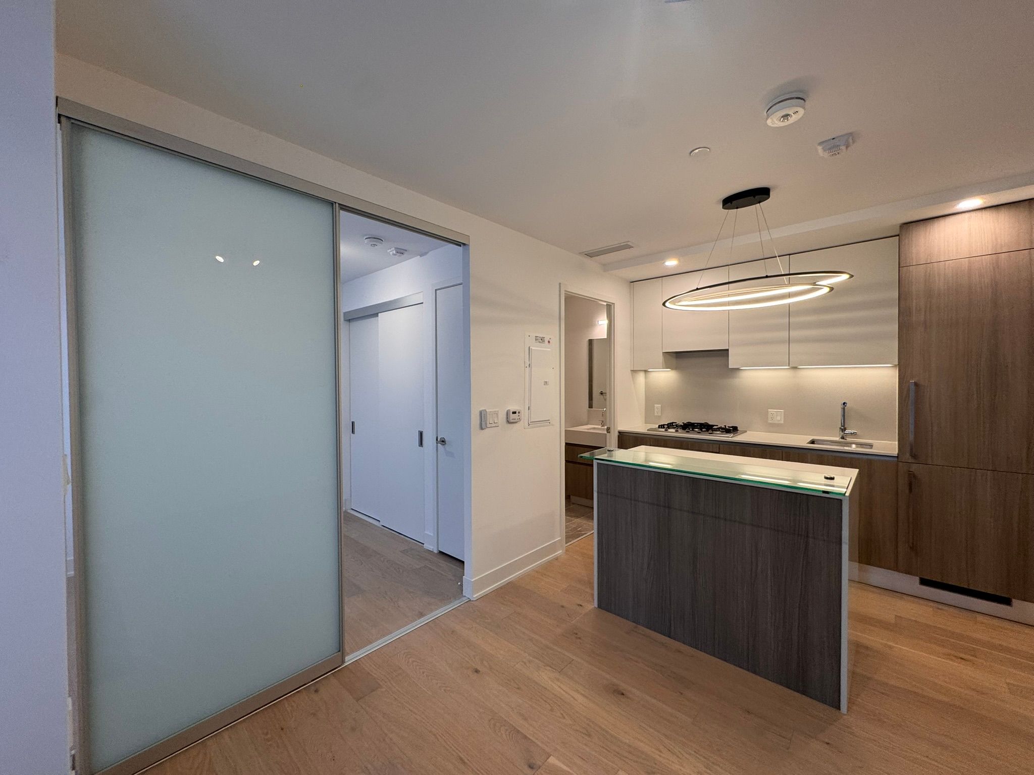 • Sun-filled one-bedroom suite features open-concept living and hardwood floors.