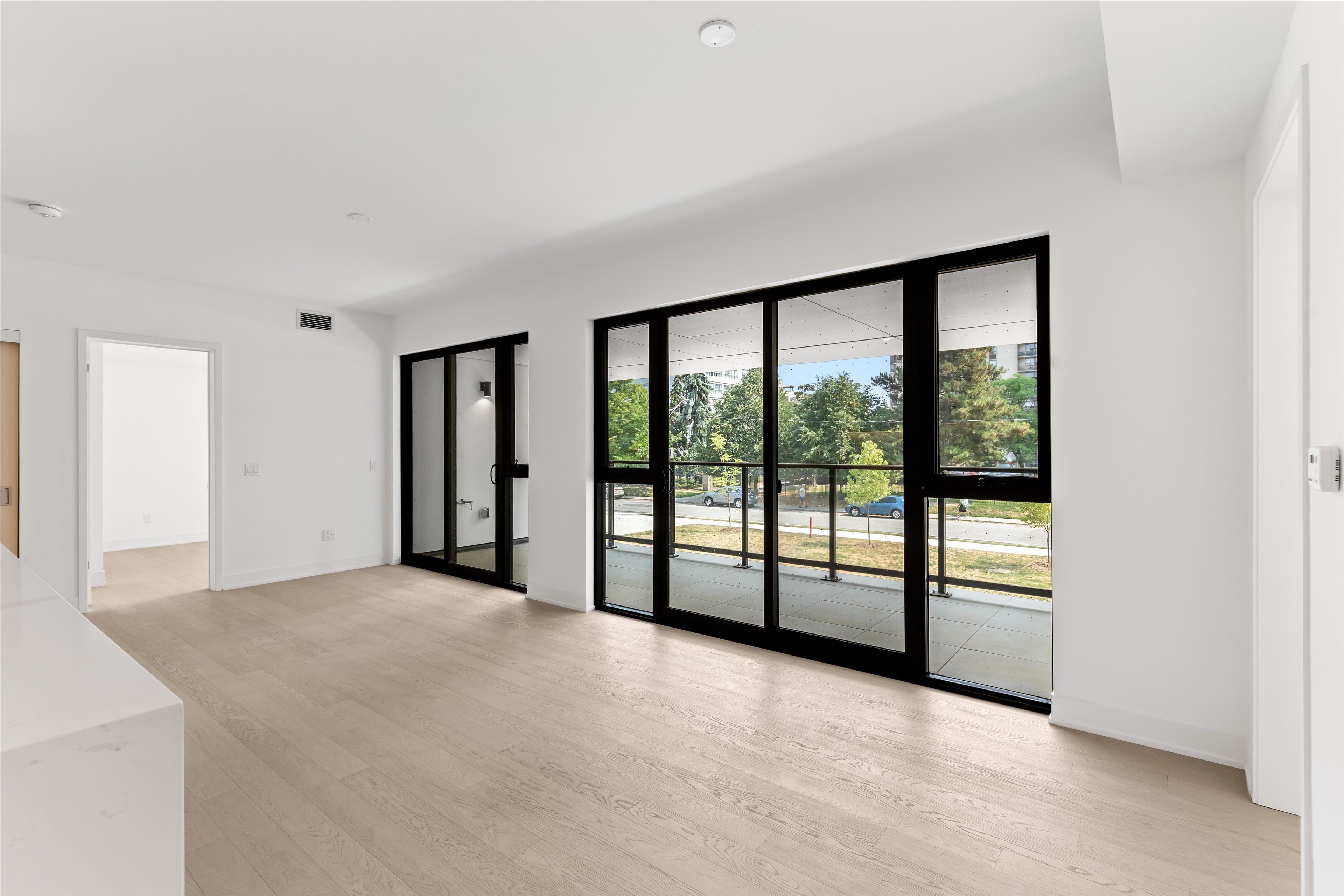 • Bright living and dining areas with engineered hardwood and balcony access.