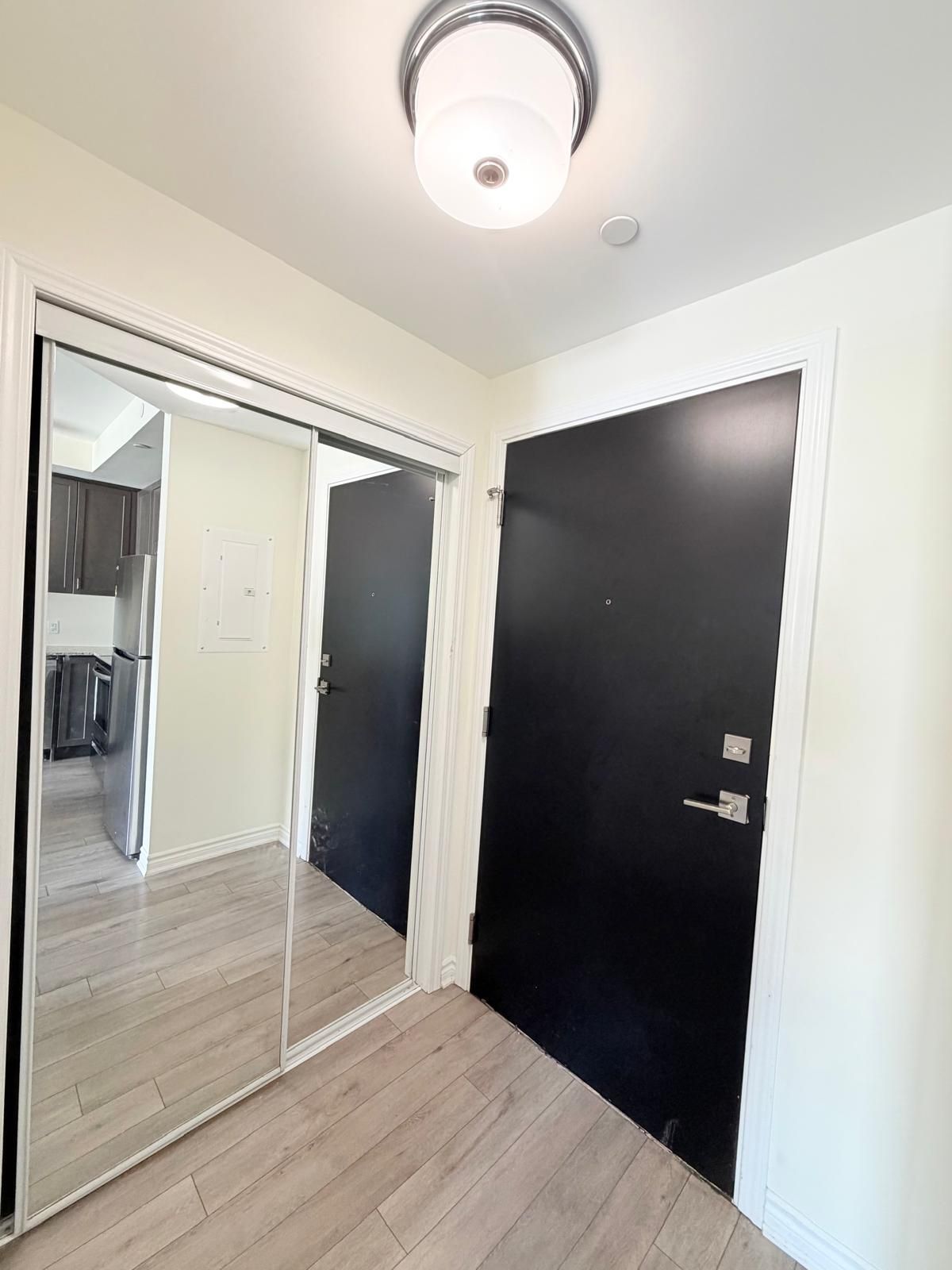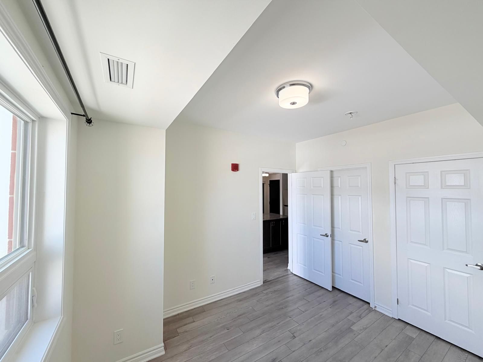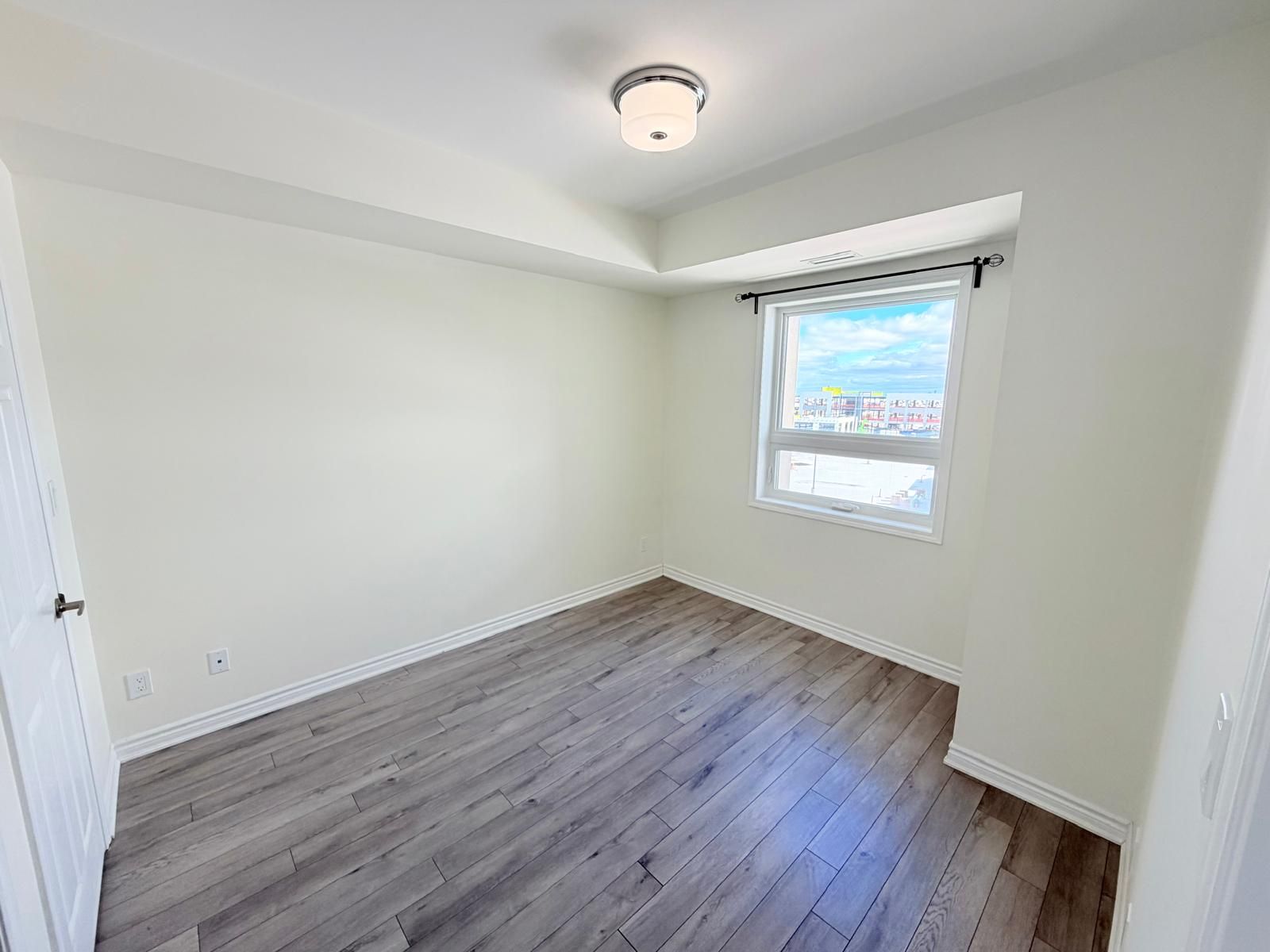 With go train & upcoming plaza at footstep, this south facing, well maintained 2 br 2 full wr,757 sqft. With 9ft ceiling unit is perfect for family, first time home buyer or an investor. Abundance of sunlight, unblocked view, no carpet throughout the unit, granite countertops with centre island, s/s appliances, state of the art balcony with retractile glass and smart thermostat makes it a good deal. 1 storage locker and 1 underground parking in basement. Beautiful party room with separate entrance from outside, ample visitor parking, garbage chute on the floor, 2 elevators to service residents. Low maintenance fee includes rogers high speed internet, heating and cooling expenses which makes it very reasonable in todays market.
