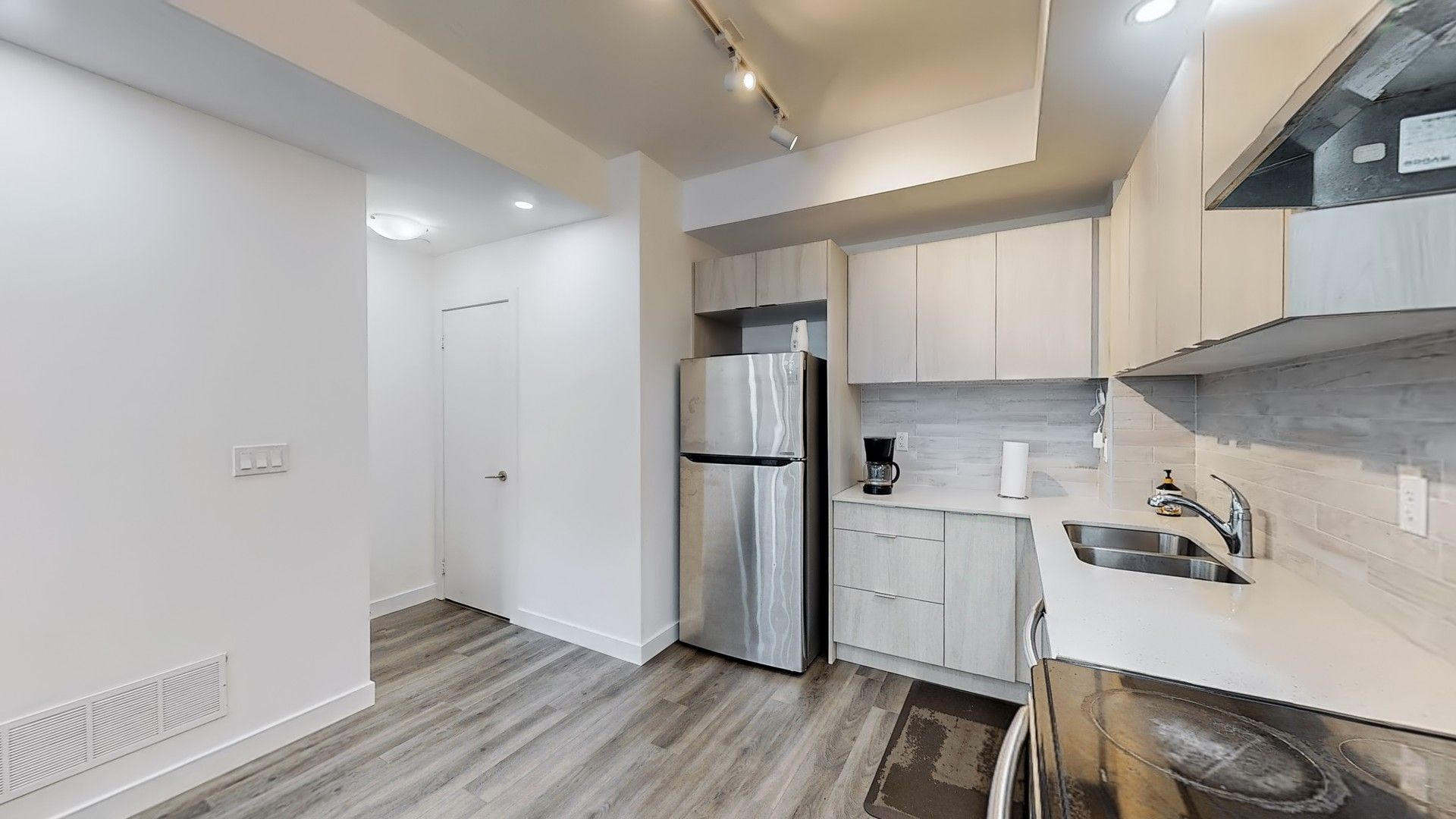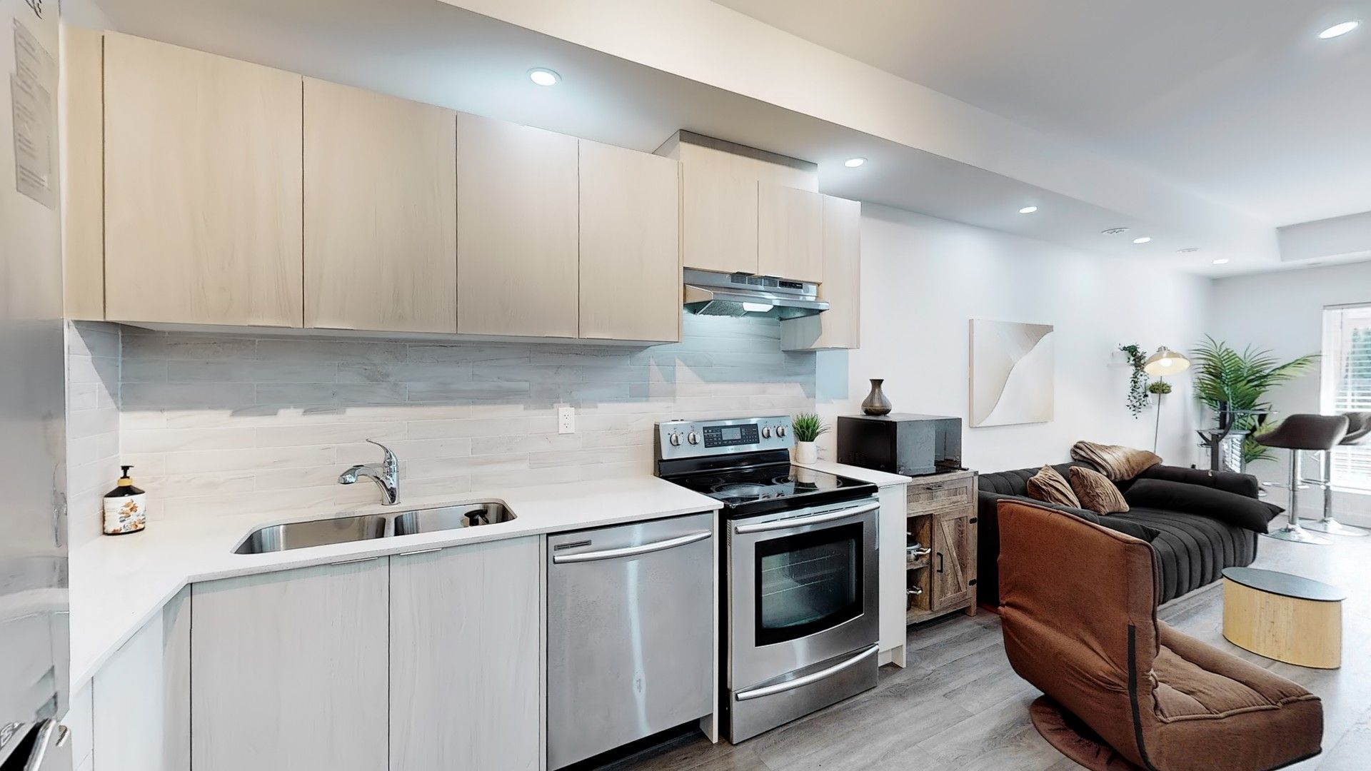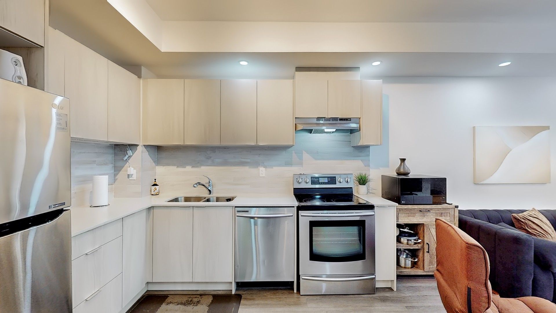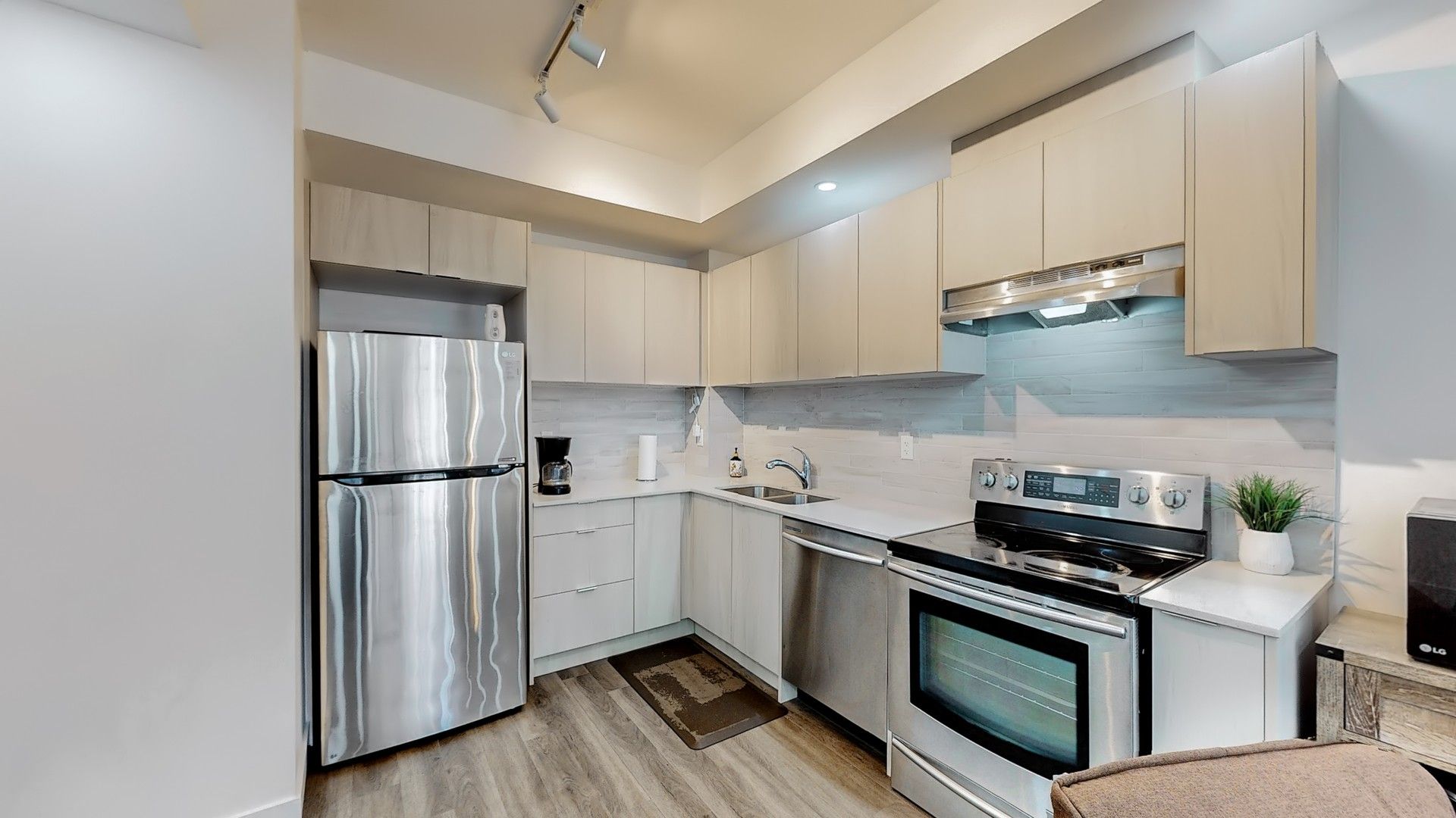 • Upgraded kitchen featuring quartz countertops and stainless steel appliances.