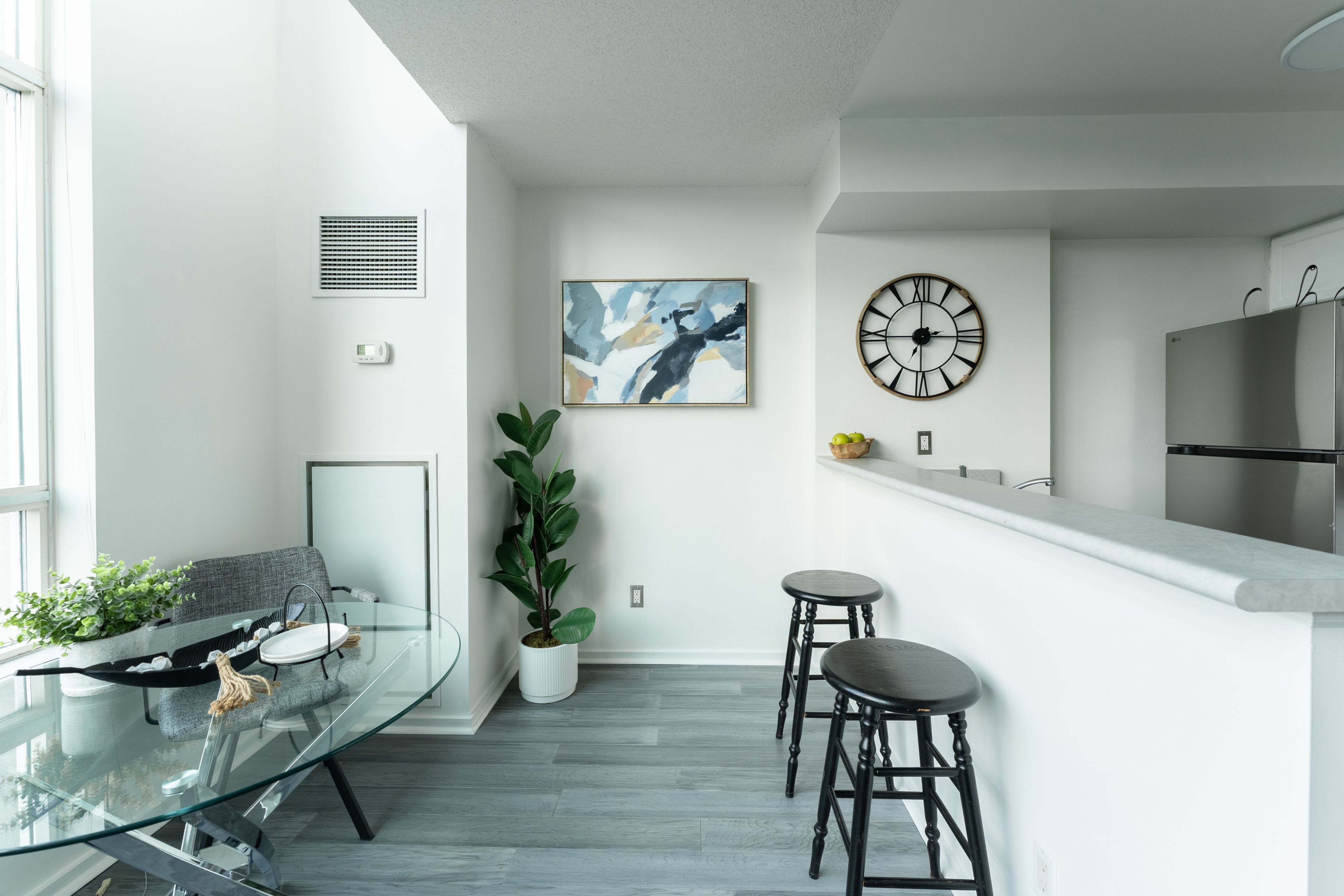 • Freshly updated loft with a bright, open concept layout and high ceilings.