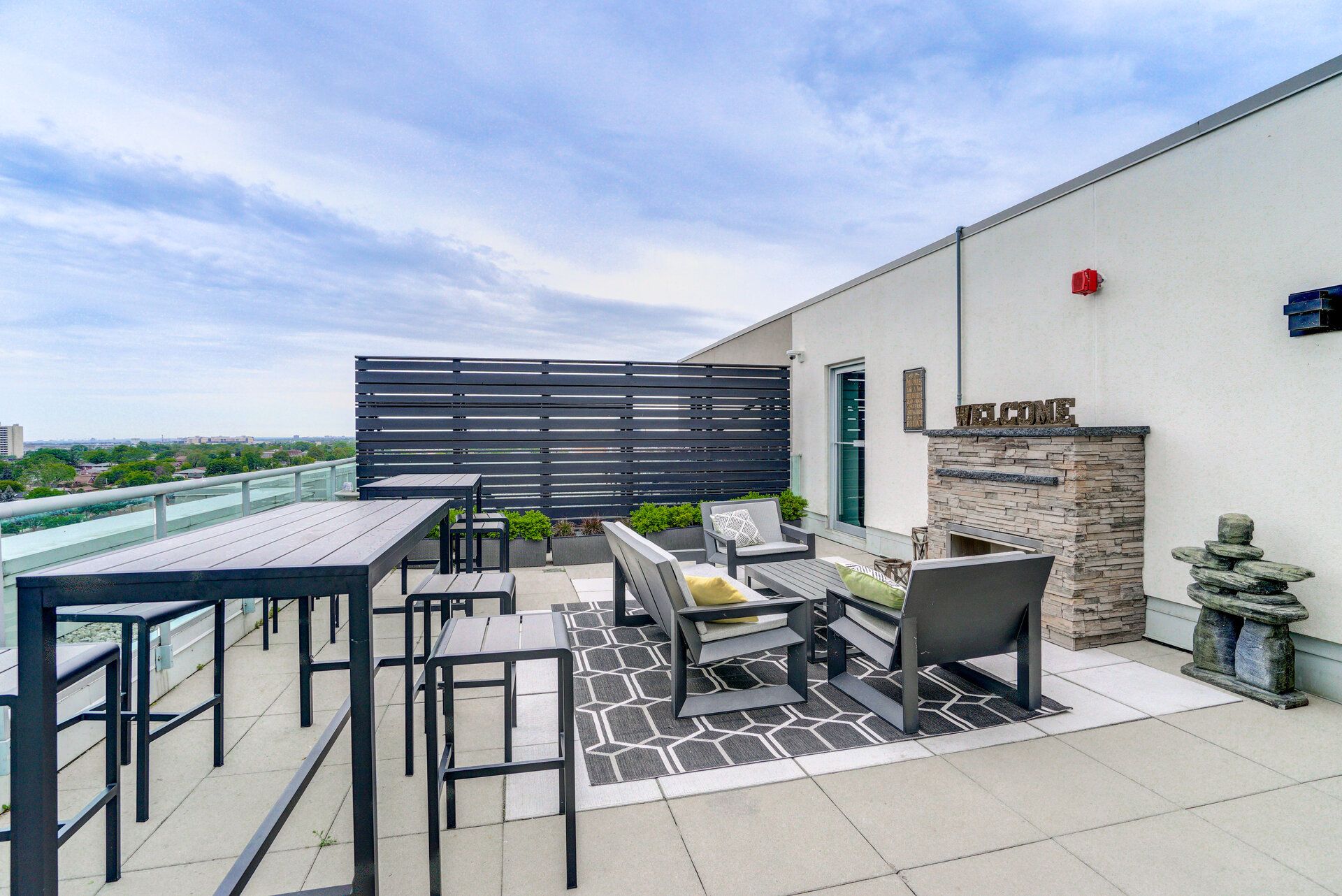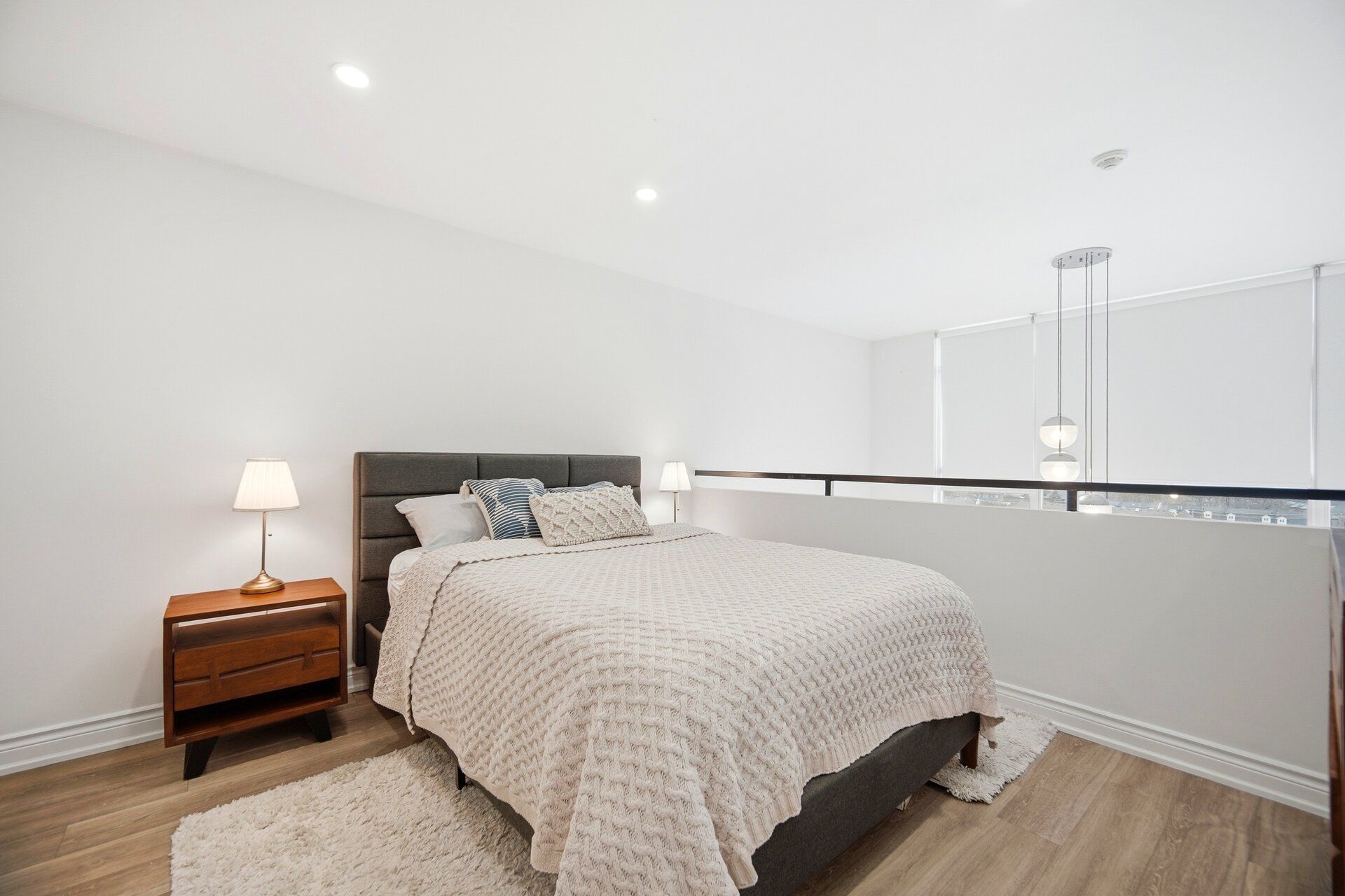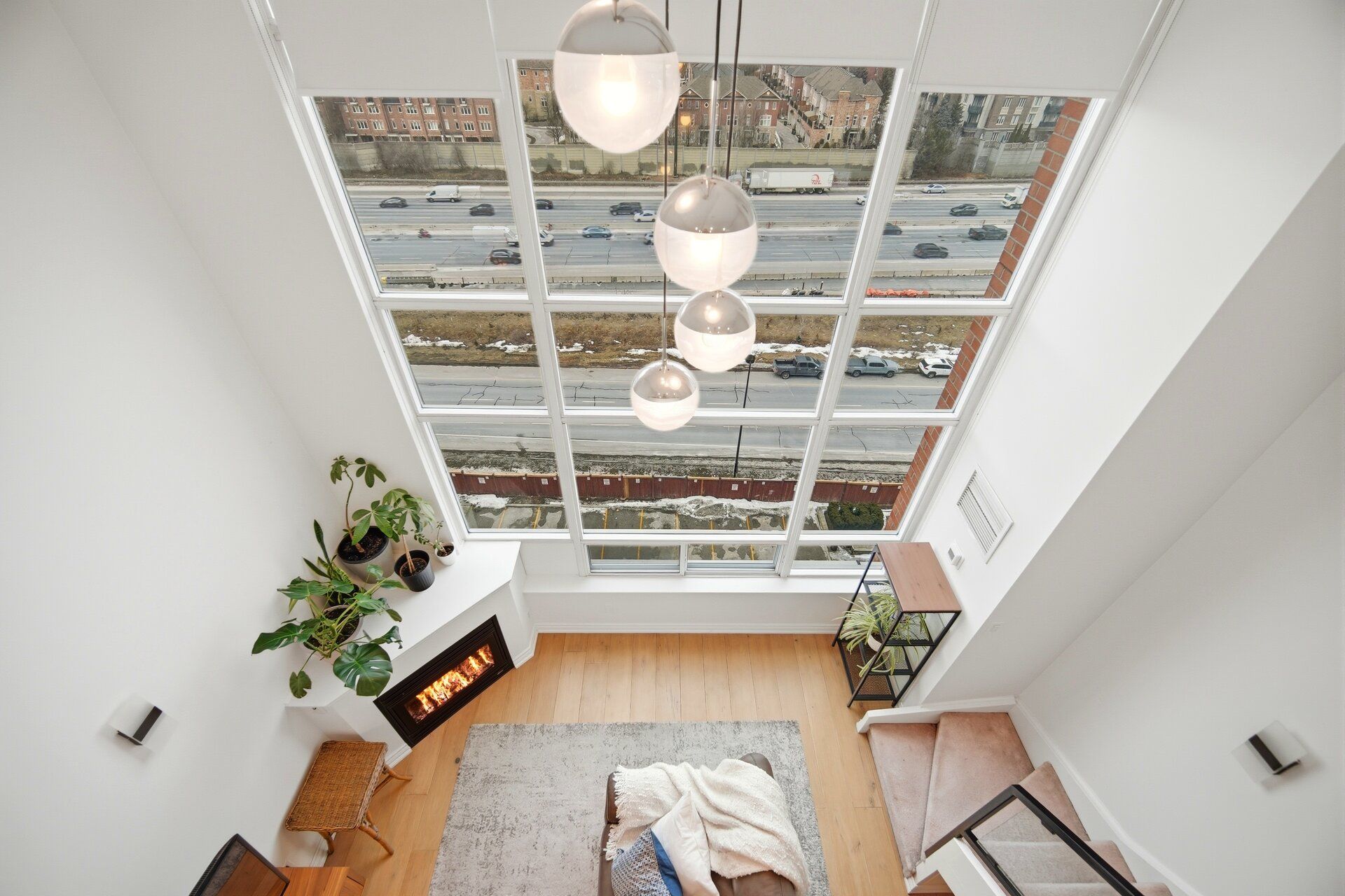 Set in skylofts ii at mystic pointe, this stunning two-level loft delivers sunlight and style, near the shores of lake ontario. The space features a 17-foot window wall that offers incredible natural light. The main floor is open and functional with an updated kitchen complete with quartz counters, stainless steel appliances, and new cabinetry. The living room centres around a gas fireplace and is completely open concept. Upstairs has a loft bedroom that offers privacy. In addition, there is an ensuite bath, ample closet storage, and laundry - as well as a den that can be used as an office, workout area or sitting space. Building amenities include: guest suites, fitness centre, sauna, games and billiards lounge, party room, and a rooftop terrace equipped with bbqs and panoramic city and lake views. All of this is in the heart of mimico - steps to the waterfront trails, mimico go station for an easy downtown commute, and minutes from cf sherway gardens, neighbourhood shops, and some of etobicoke's best dining spots.