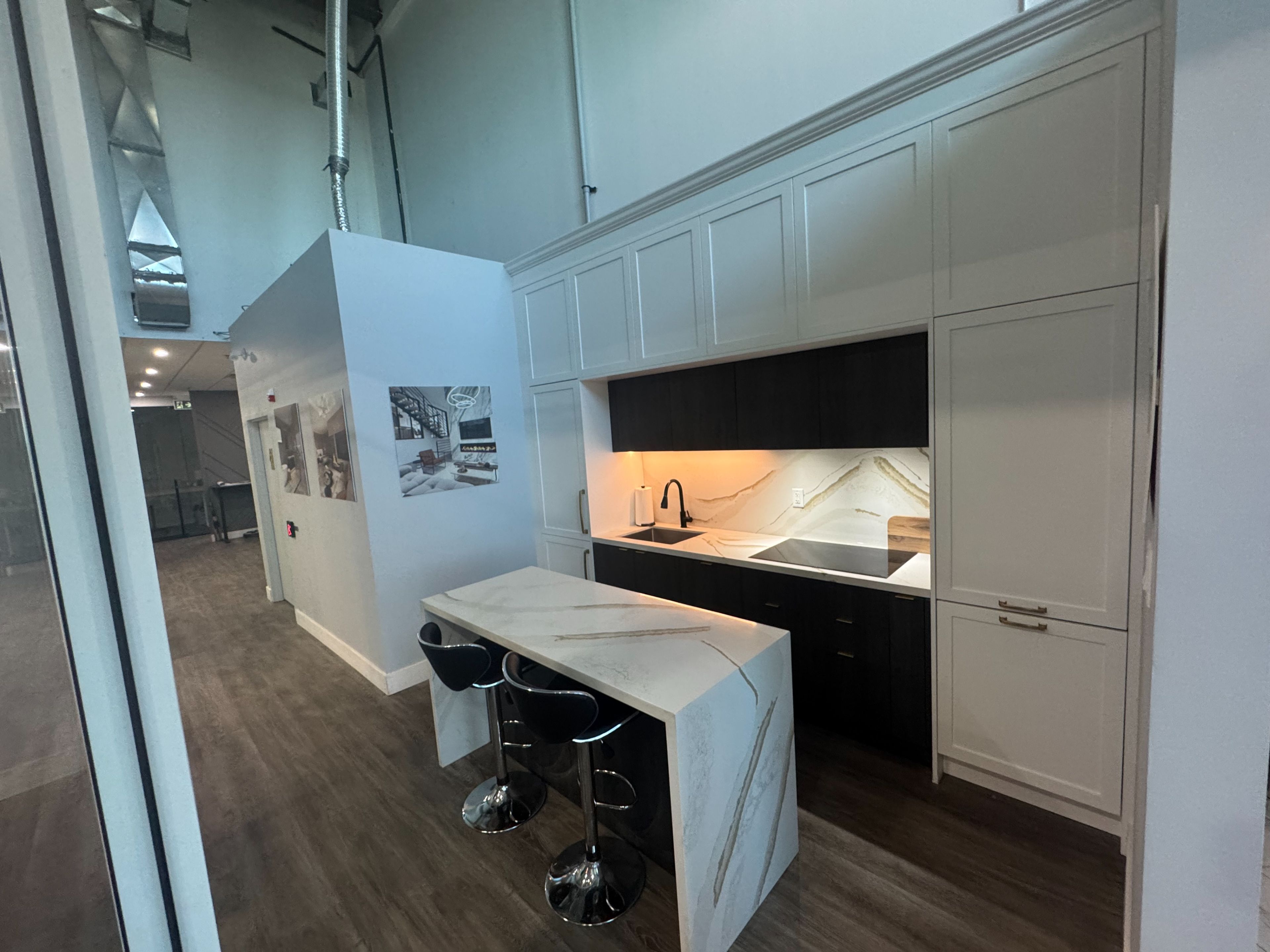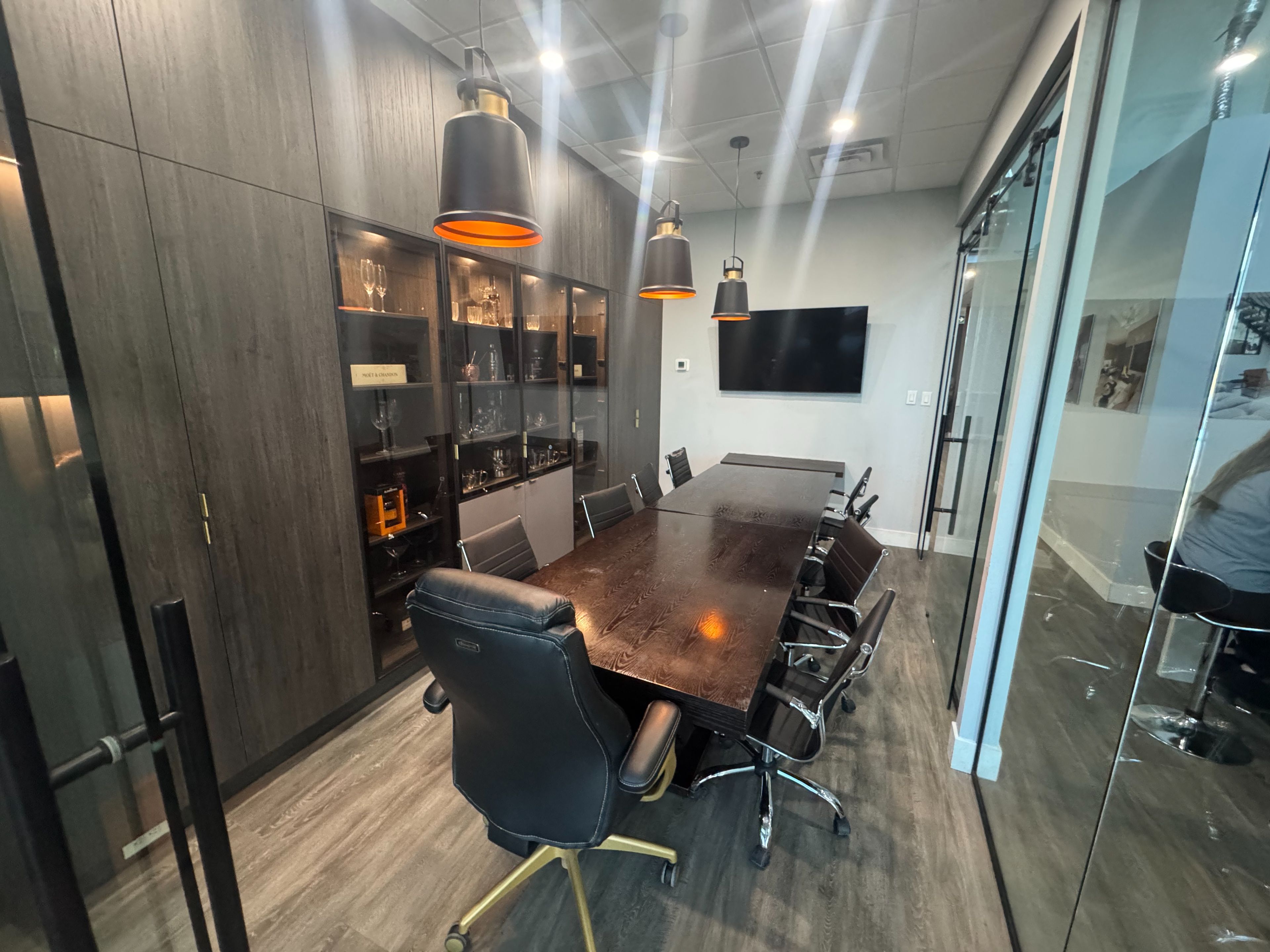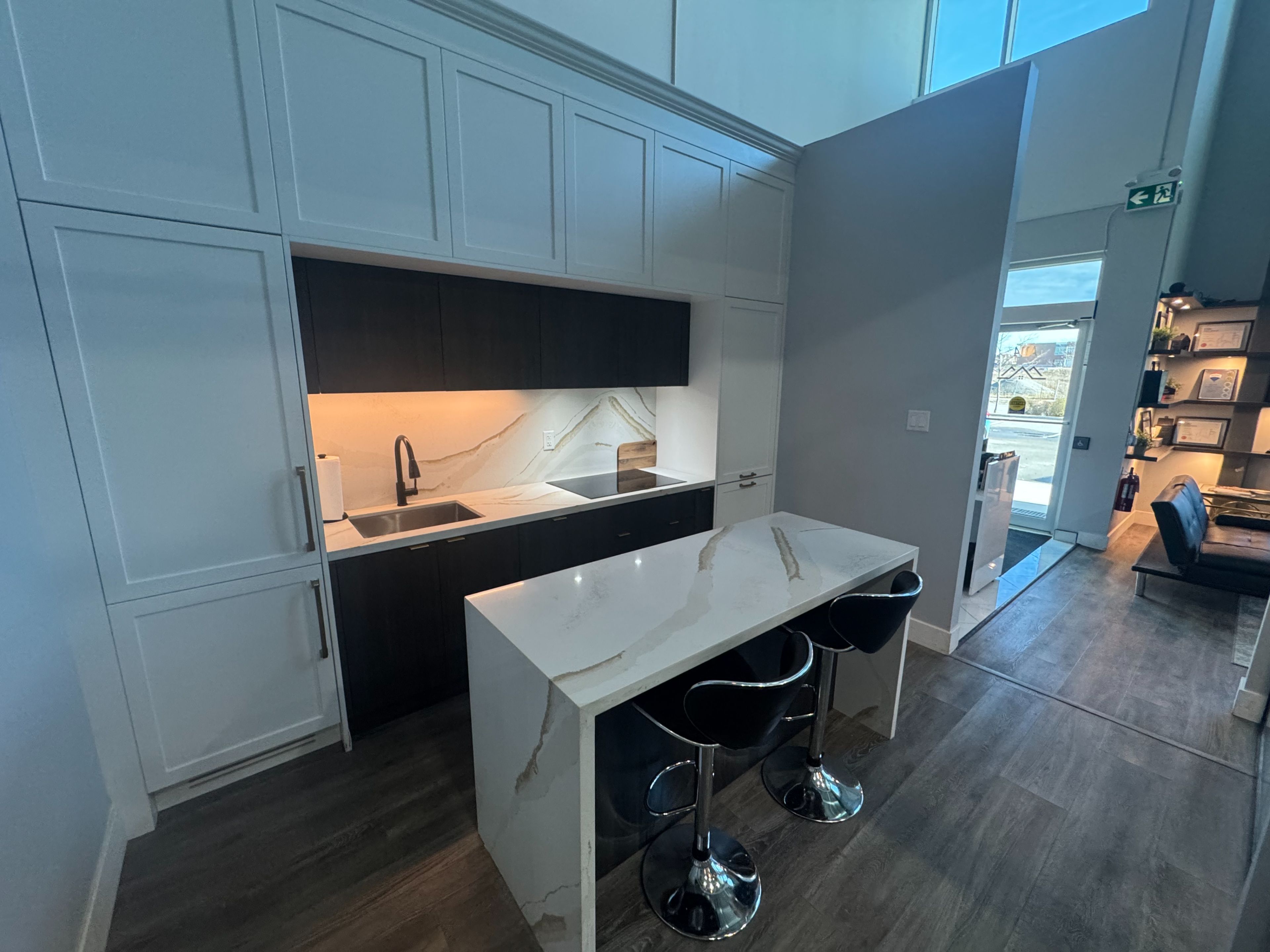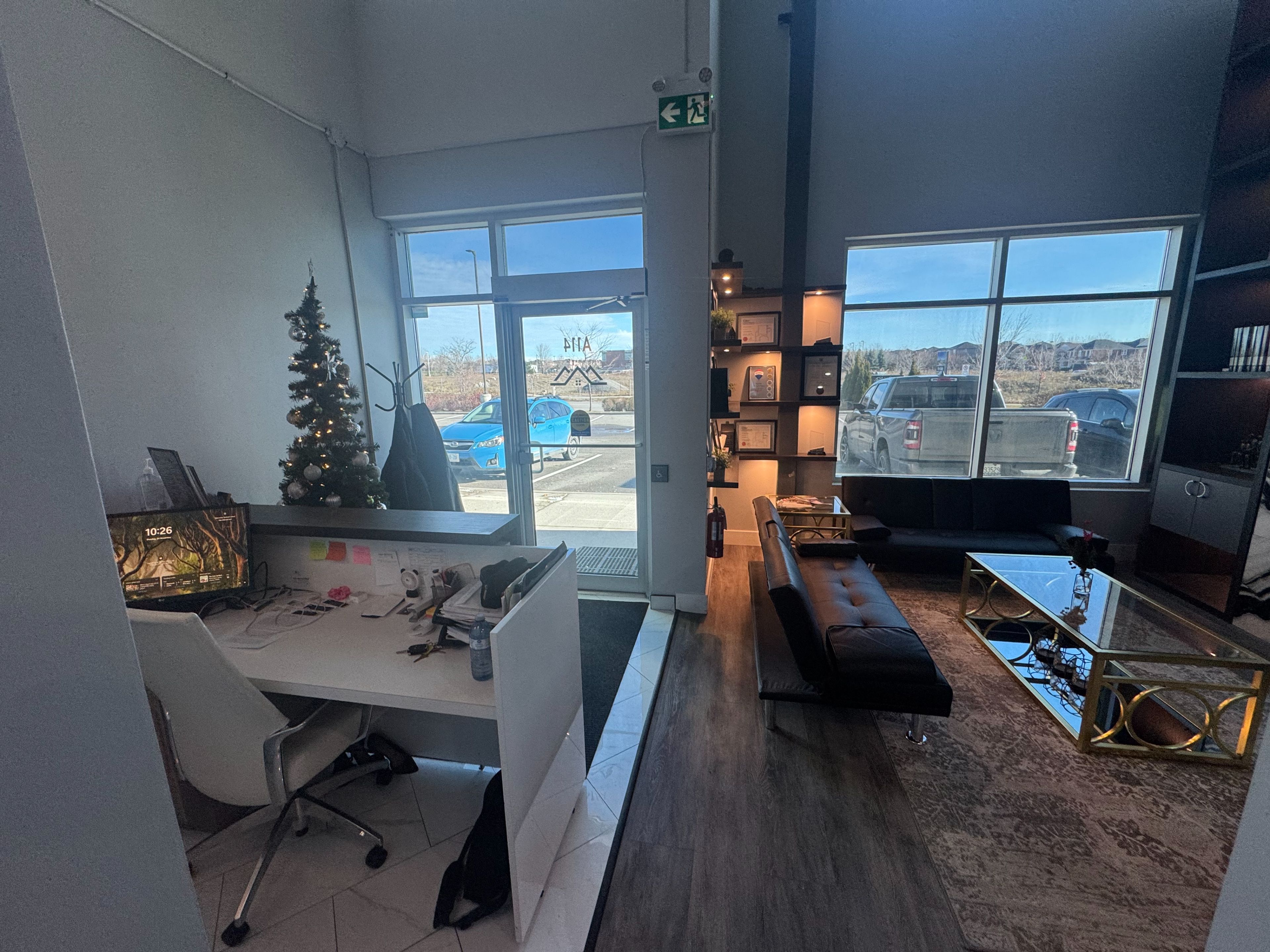 Experience a luxury workspace crafted with premium finishes and smart, modern design. This fully transformed commercial unit offers the perfect blend of professionalism, comfort, and functionality-ideal for a wide range of business operations. Main floor - approx. 1,800 sq. Ft. The main level features four private offices, a dedicated boardroom, and an inviting front lounge highlighted by a contemporary fireplace-creating a warm, professional space for clients and staff. A beautifully finished kitchenette and a mid-sized dining area offer everyday convenience, while a modern washroom completes the layout. Upper mezzanine - approx. 600 sq. Ft. The mezzanine level includes a spacious executive office with an attached boardroom, perfect for leadership functions and confidential meetings. A soundproof media room adds versatility for presentations, recording, or secure communications. A bathroom with a shower provides additional comfort and flexibility. Completely renovated after purchase, this unit offers a true turnkey workspace with exceptional value and design. Key features: high-exposure location fronting mostar street stunning showroom and office layout bright, modern finishes with large windows and abundant natural light.