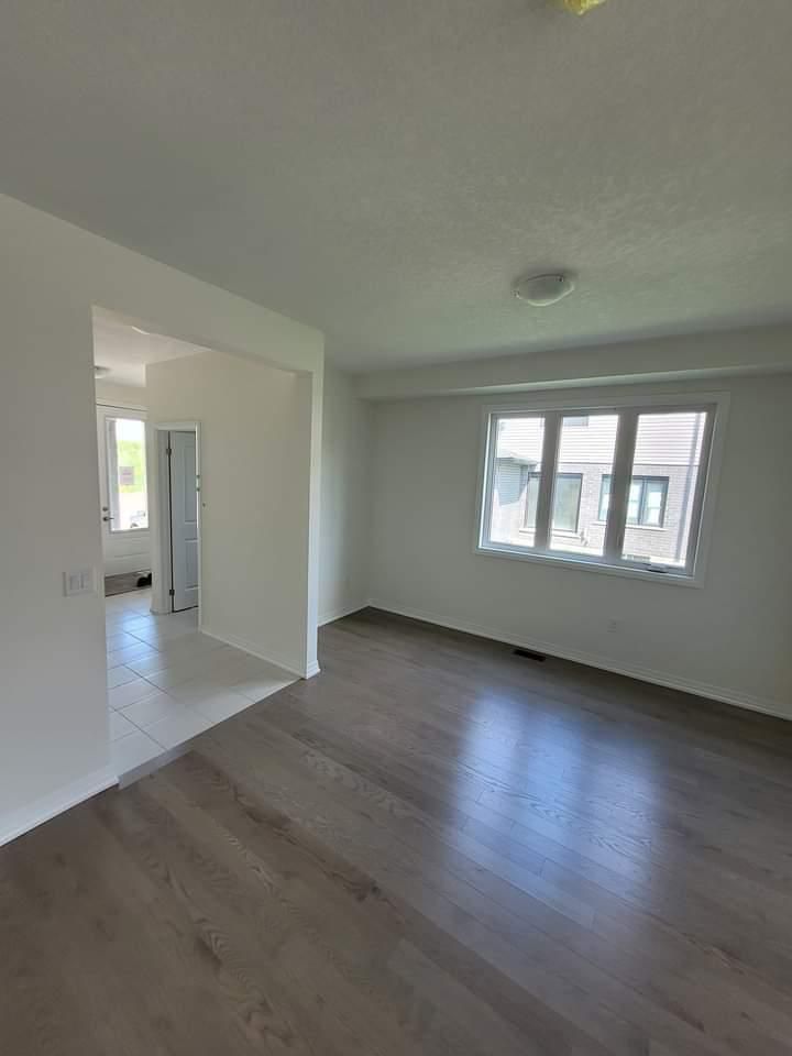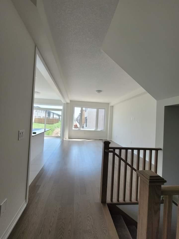 Modern and luxurious 4-bedroom, 3-bathroom detached home situated on a massive corner lot in a highly sought-after area of cambridge, on. The main floor features a bright open-concept layout with 9-foot ceilings, hardwood flooring, and oversized windows that fill the space with natural light. The chef's kitchen is equipped with stainless steel appliances and a large quartz island, perfect for entertaining. The upper level offers four spacious bedrooms, including a primary suite with a walk-in closet, along with the convenience of second-floor laundry. Overall, this stunning home is ideal for families seeking comfort, style, and functionality in a safe and convenient neighborhood close to numerous amenities.