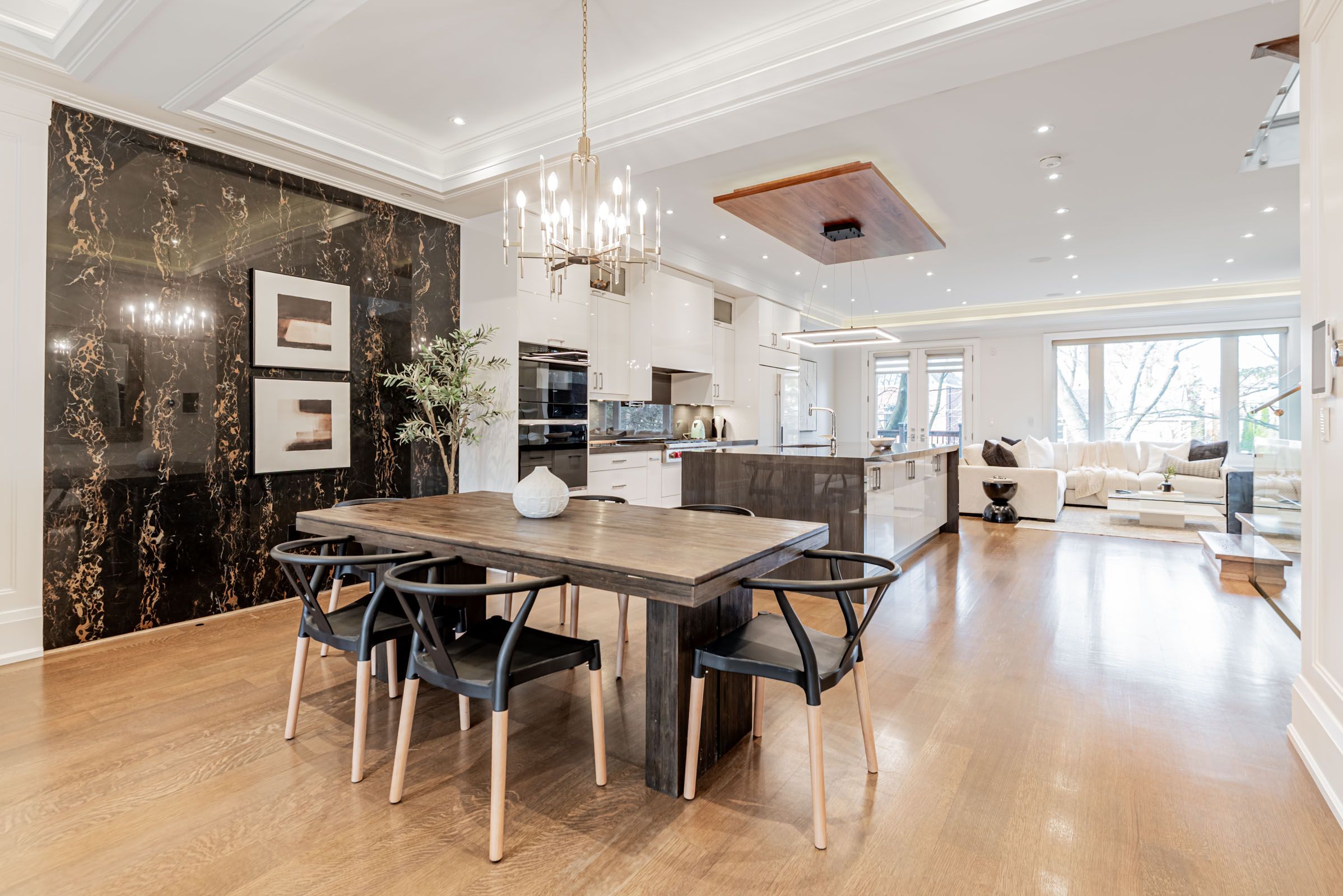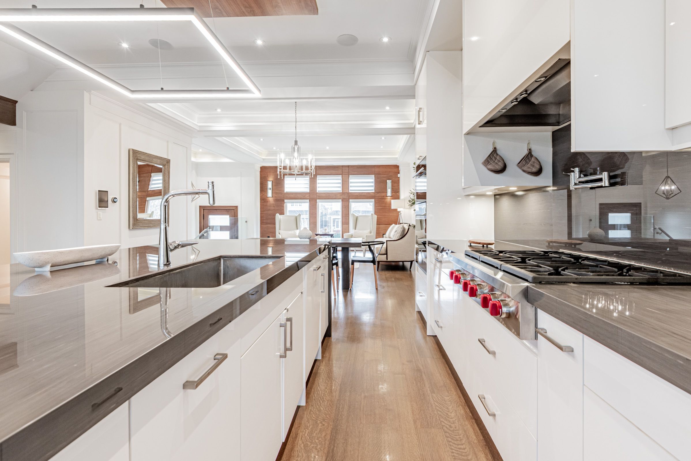 Stunning builder's own residence in lawrence park north. This home is defined by exceptional craftsmanship, custom full wood panelling, a walnut feature wall, built-in ceiling speakers, and an integrated smart home lighting system that elevates every room. The chef's kitchen features a forty-eight inch sub-zero refrigerator, wolf cooktop, and built-in wolf oven and microwave. White oak rift-cut hardwood flows throughout, complemented by heated floors in the primary ensuite and the walkout lower level. Premium mechanical systems include two ultra-quiet lennox furnaces and fully insulated ductwork for whisper-silent comfort. The lower level offers high ceilings and a seamless walkout to a wide, private yard. Steps to yonge street, top schools, shops, amenities, and moments to the rosedale golf club. A rare offering that blends luxury, quality, and an unmatched midtown location.