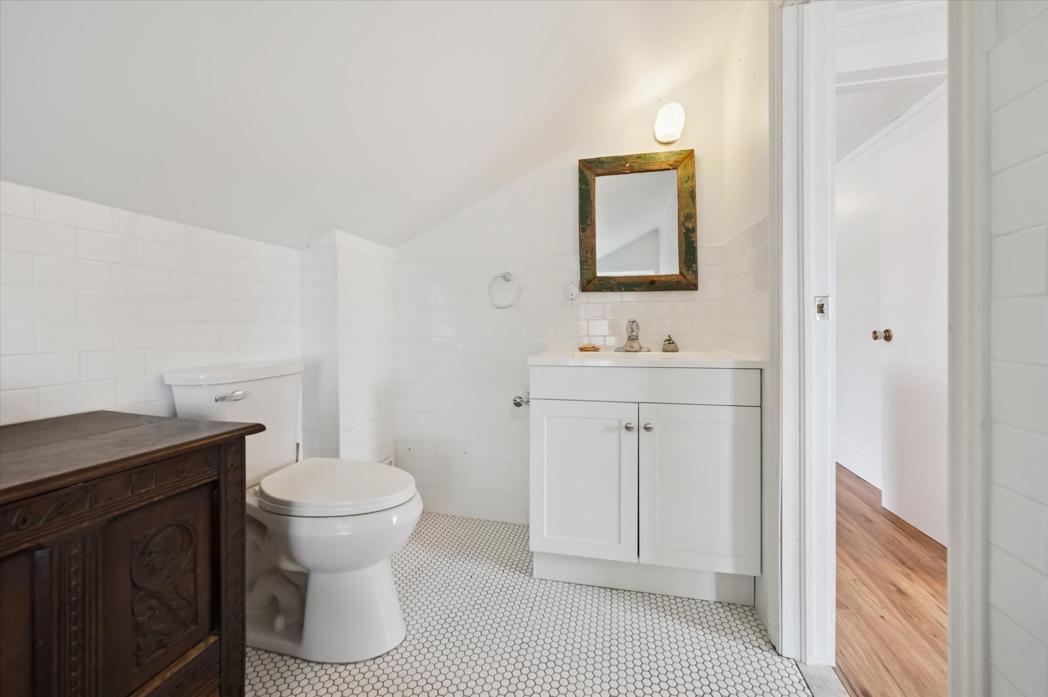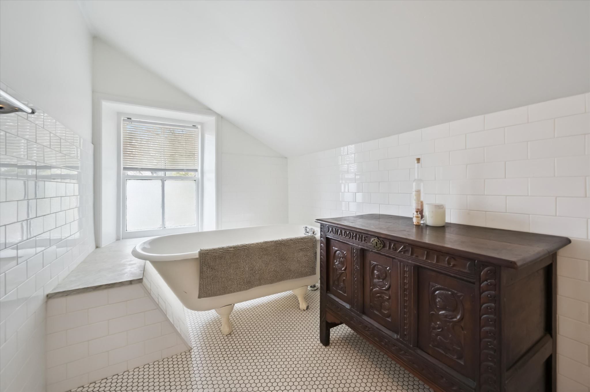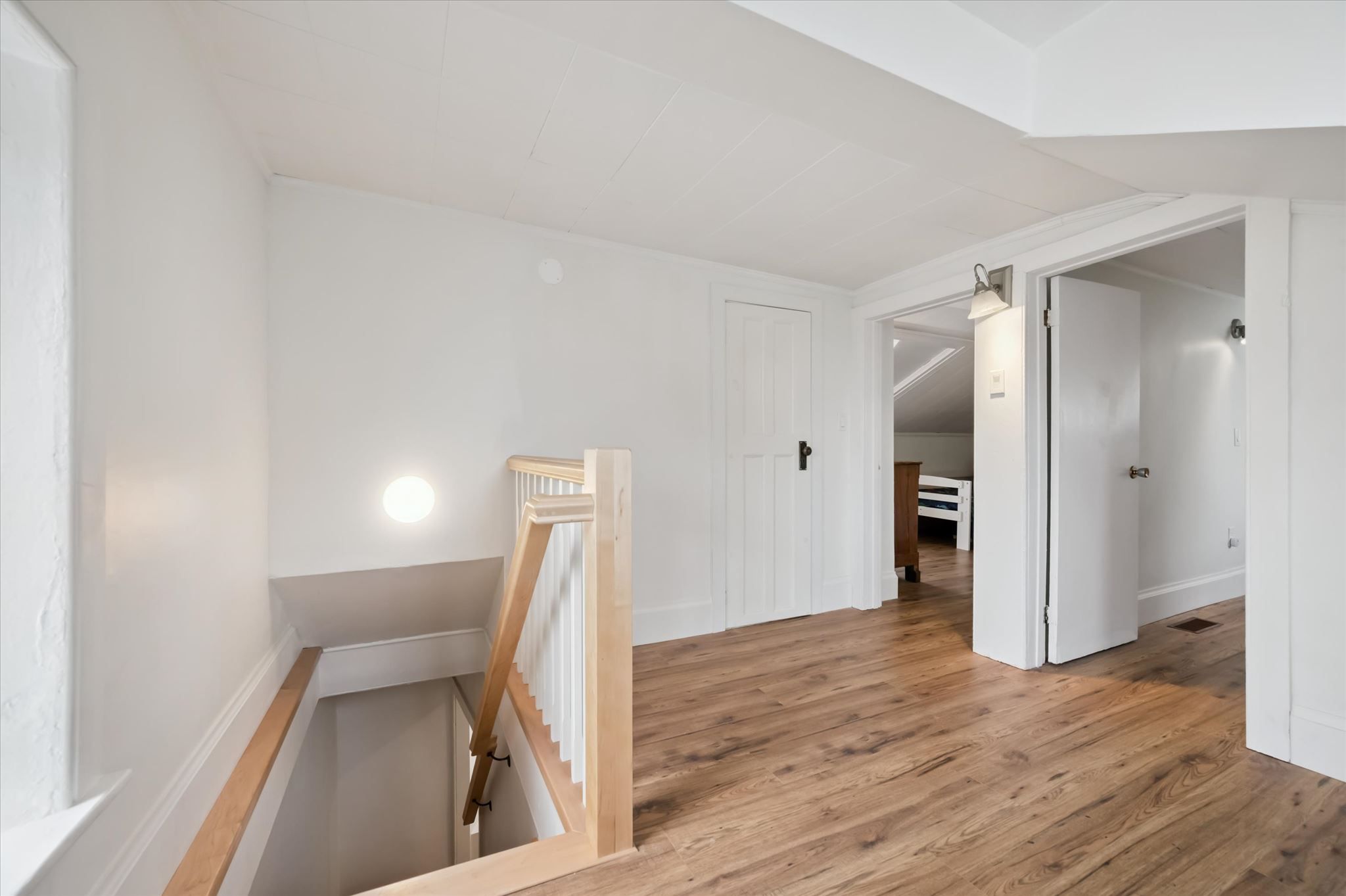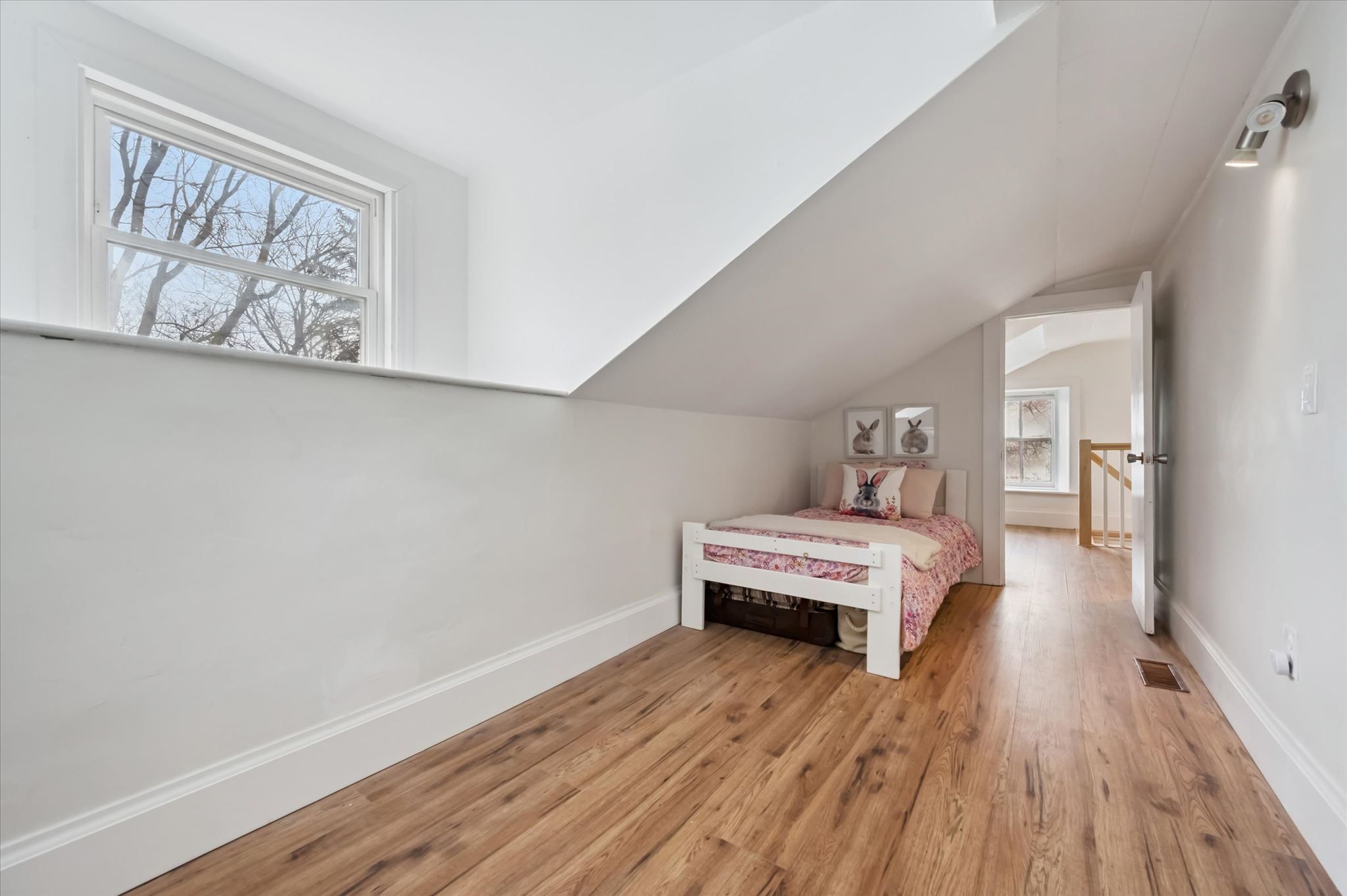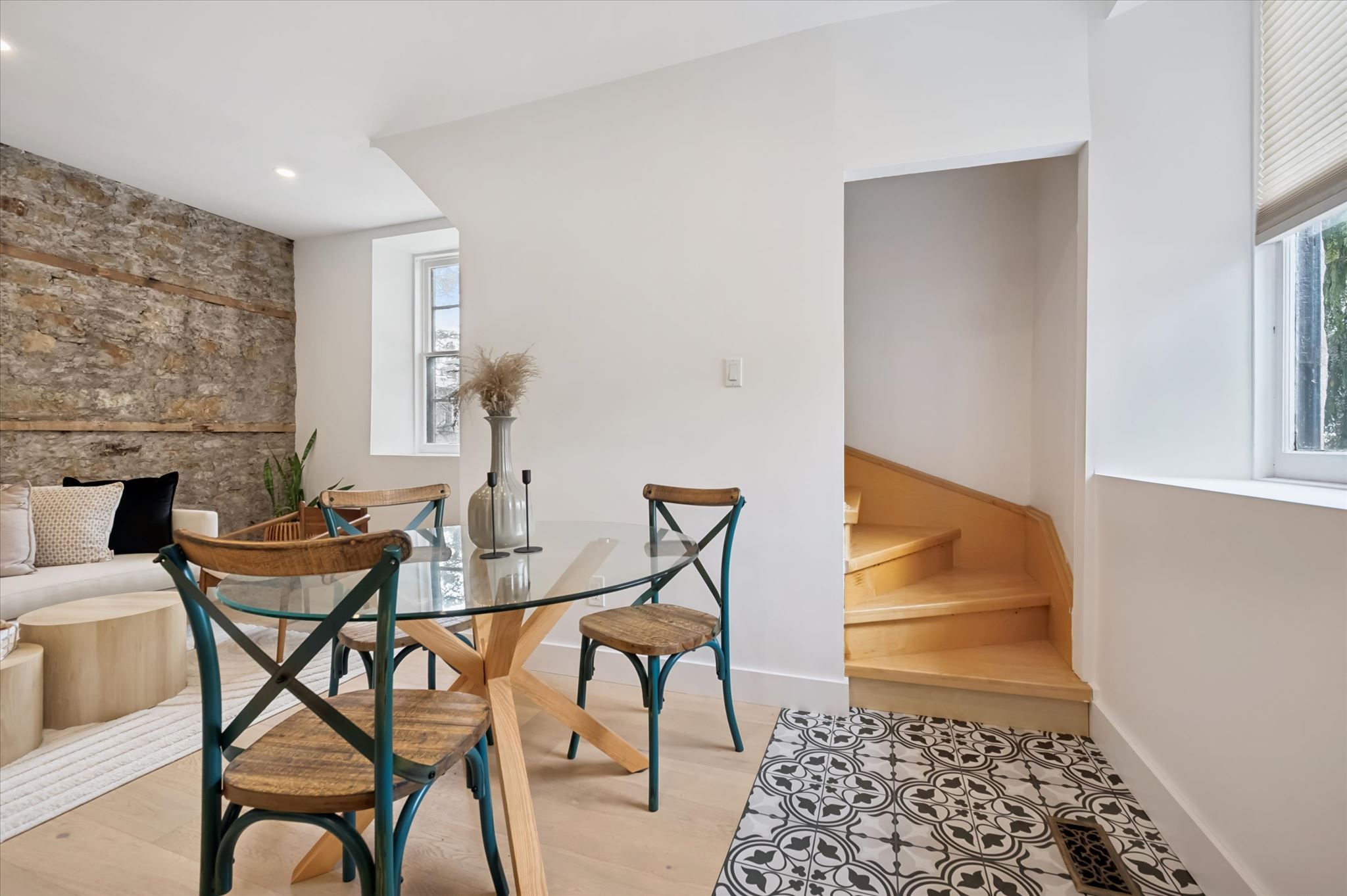 Stunning stone 4 bedroom home with character and charm. This charming 4 bedroom home has been lovingly renovated with a massive, open concept main floor living space. Beamed ceilings, exposed stone walls, new bright white chef's kitchen with quartz countertops and massive island. From the moment you step inside you'll recognize the attention to detail and the love that went into this home. Gleaming neutral hardwood, gorgeous gem toned backsplash, stainless appliances, and so much space! The high ceilings and large windows make this floor inviting and airy. The den, with abundant windows sits just off the kitchen, and a convenient main floor bedroom and newly renovated 3 piece bath with tiled shower and heated floors round out this level. Each end of the home has its own staircase, one to the oversized primary bedroom (with walk in closet) and one to the children's wing. One bedroom upstairs is connected to the primary, perfect for a nursery or office. The second floor bathroom features a clawfoot tub. The backyard is an oasis, with perennial gardens, newer deck and is fully fenced with mature trees, and a private pond. Along the side of the home a concrete pad was poured to double as extra parking and a mini basketball court. The single car garage has been insulated and drywalled and is connected to the home by an interior door. This home is truly the perfect blend of historic elegance with warmth and character, and modern conveniences.