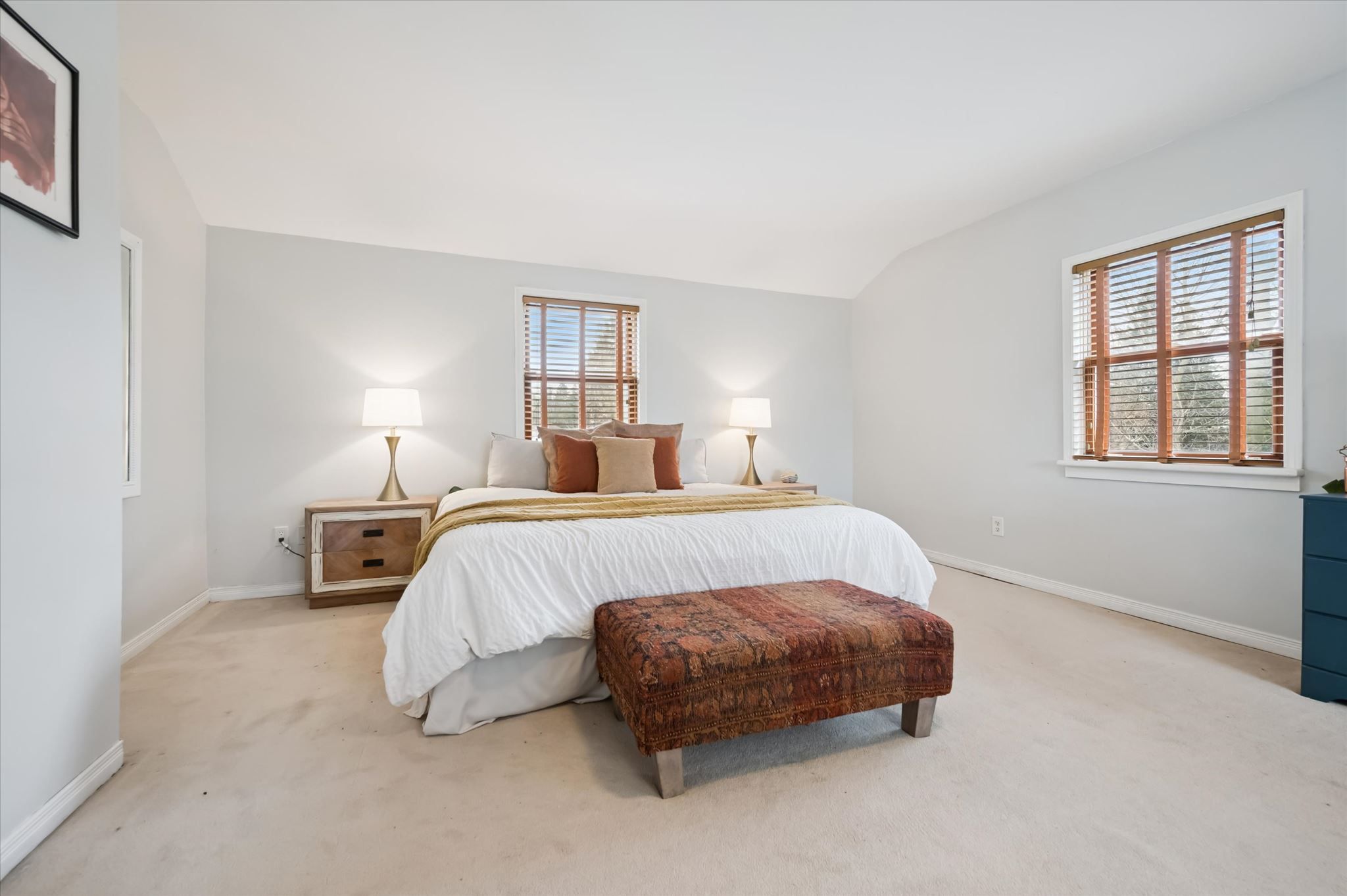 • Private backyard oasis with gardens, deck, and a pond for relaxation.