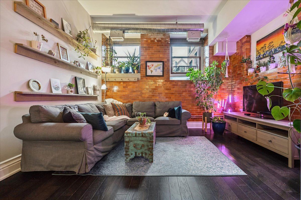 Charming loft-style condo in the heart of hamilton, set within a beautifully converted schoolhouse dating back to 1894 and rich in architectural character. This spacious open-concept one bedroom, one bathroom offers an ideal blend of historic charm and modern updates. Featuring soaring 10' ceilings, large windows that flood the space with natural light, and glazed ceramic exposed brick accents, this carpet-free unit exudes warmth and style. The designer kitchen is complete with a centre island, granite countertops and stainless steel appliances which flows seamlessly into the living area. A versatile additional flex space offers the opportunity for a home office, den, library or separate dining area. Additional highlights include in-suite laundry, a renovated four-piece bathroom and hardwood flooring throughout. Perfect for professionals, first-time buyers, or downsizers. Conveniently located just minutes from the city centre with easy access to highways, transit, and a wide range of amenities. Don't miss it!