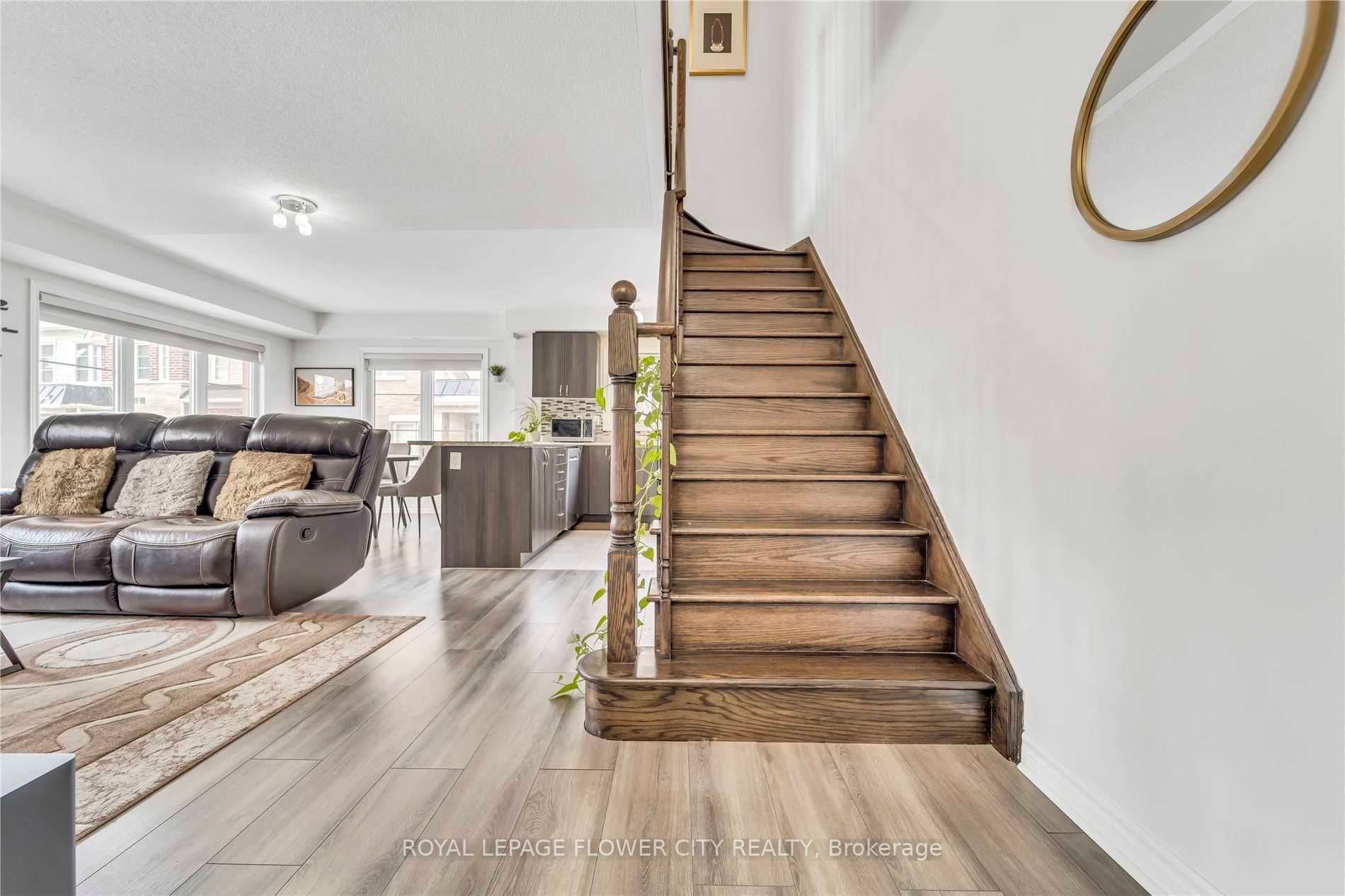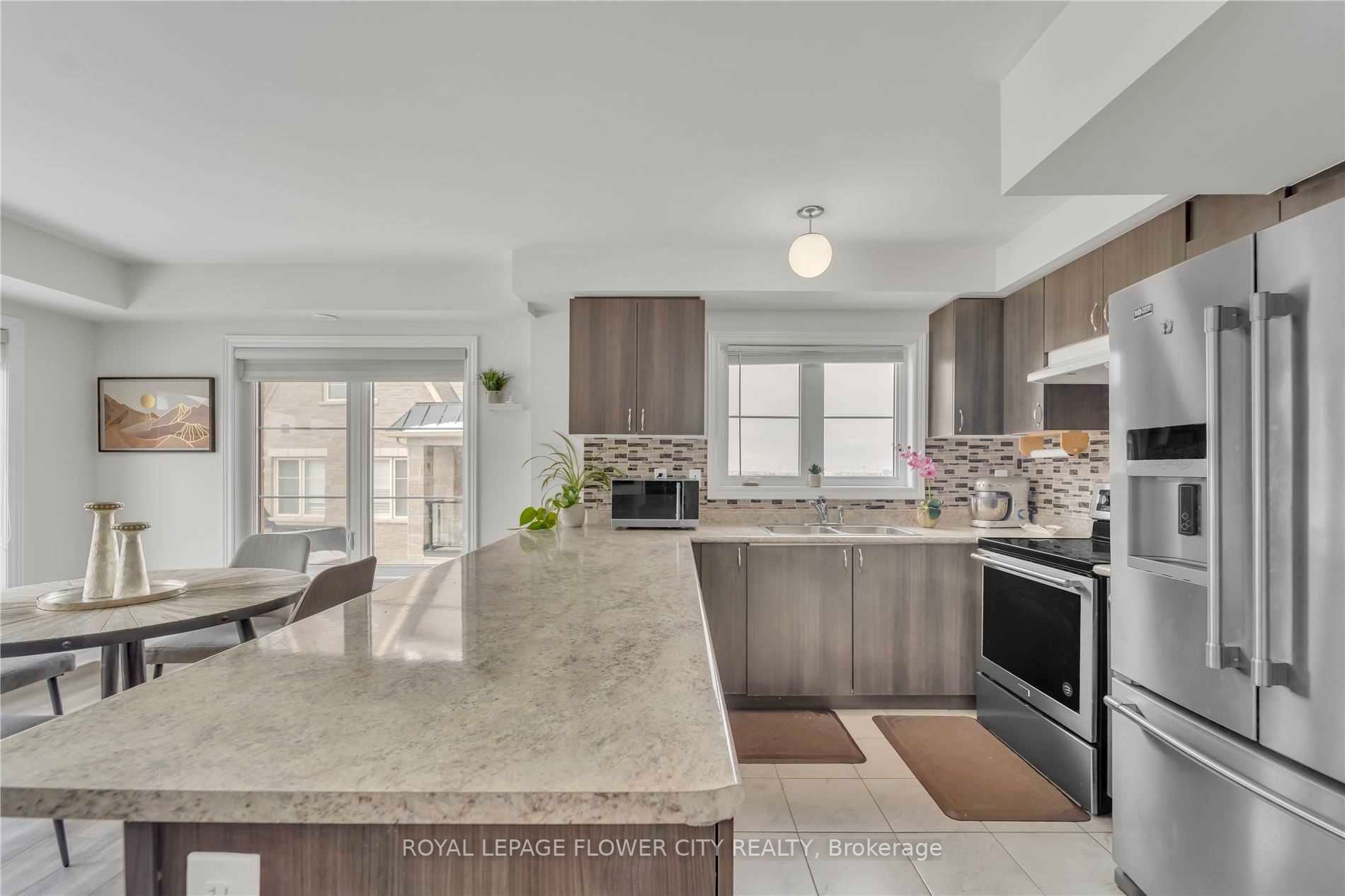3 bedroom + 3 washroom rare corner unit at veterans dr with balcony facing park. Elegantly designed kitchen with extended island and lots of storage. Open concept main floor with kitchen and living room. Laminate on main floor and hallway. Close to mt pleasant go station. Walking distances to all amenities. Beautiful exterior with sun-filled interior.