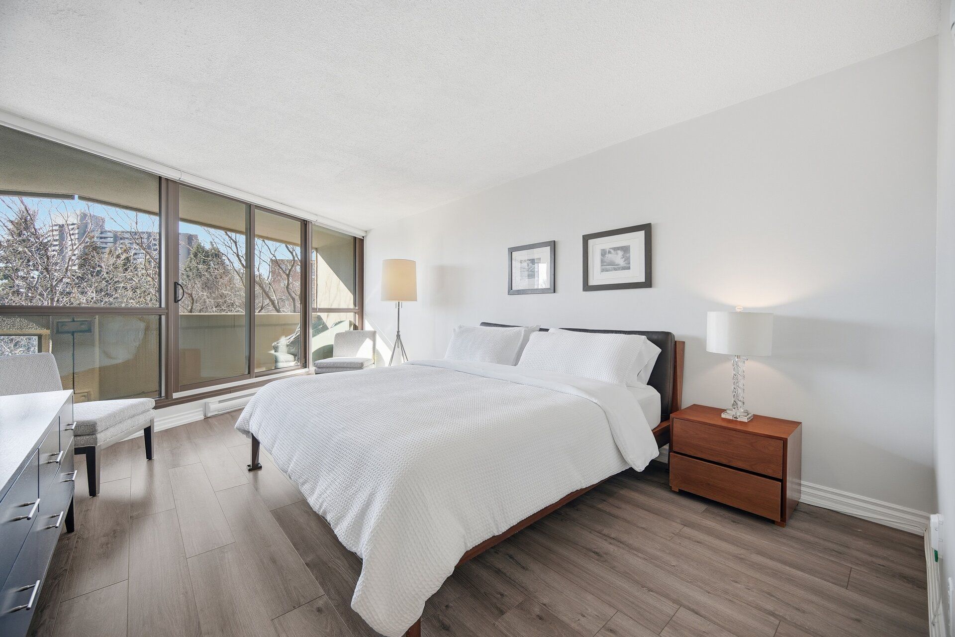 • Private balcony offers tree-lined views, perfect for morning coffee.