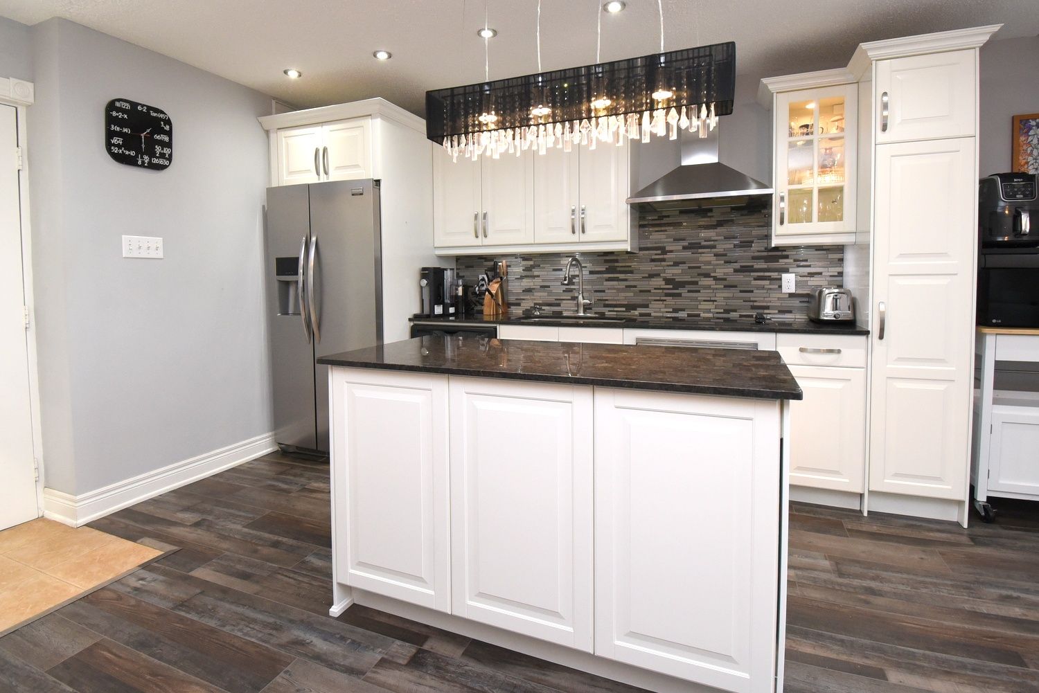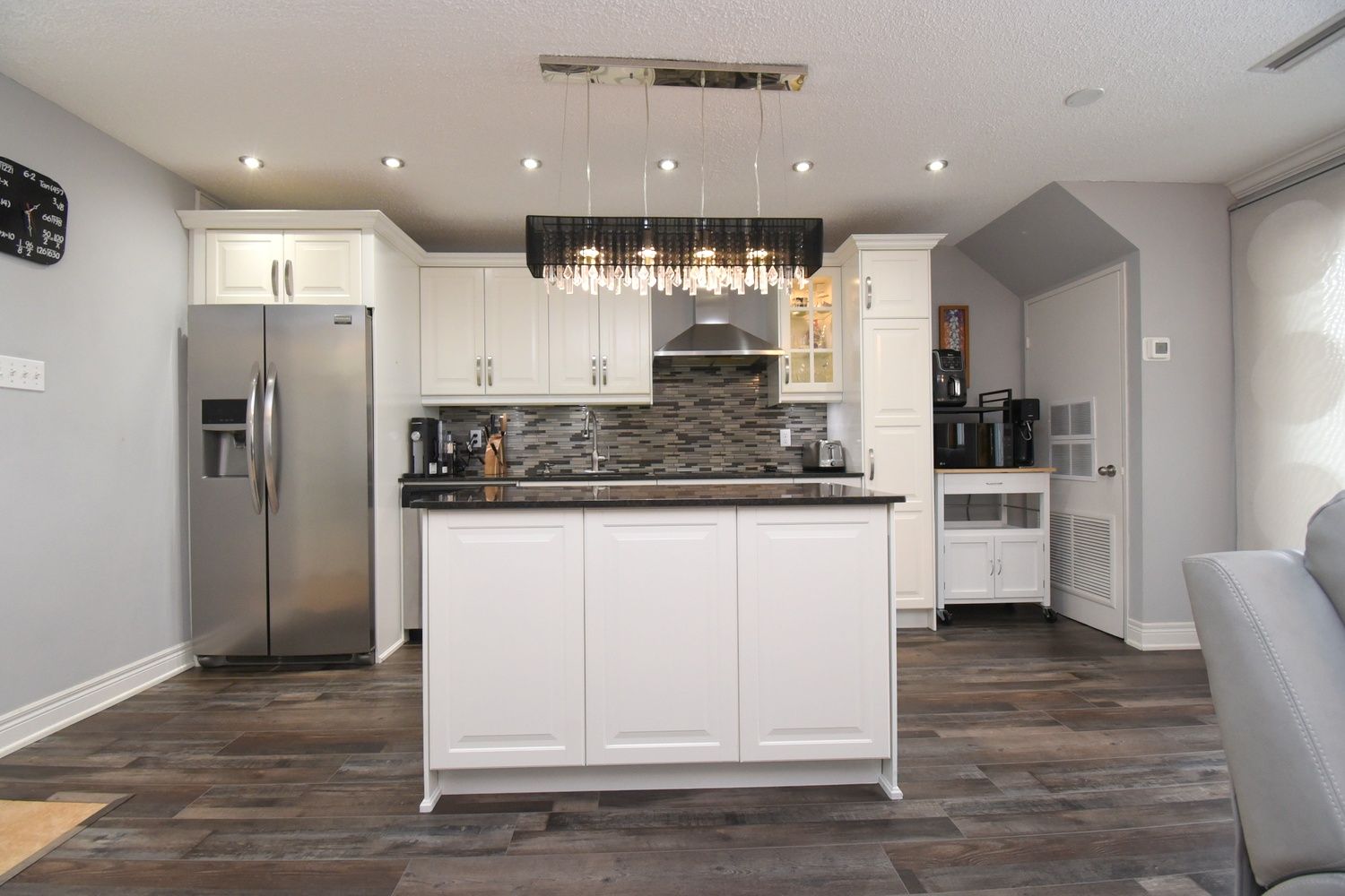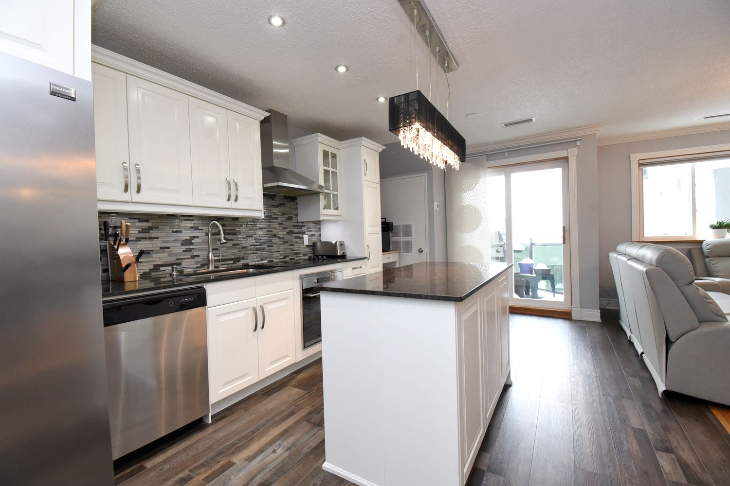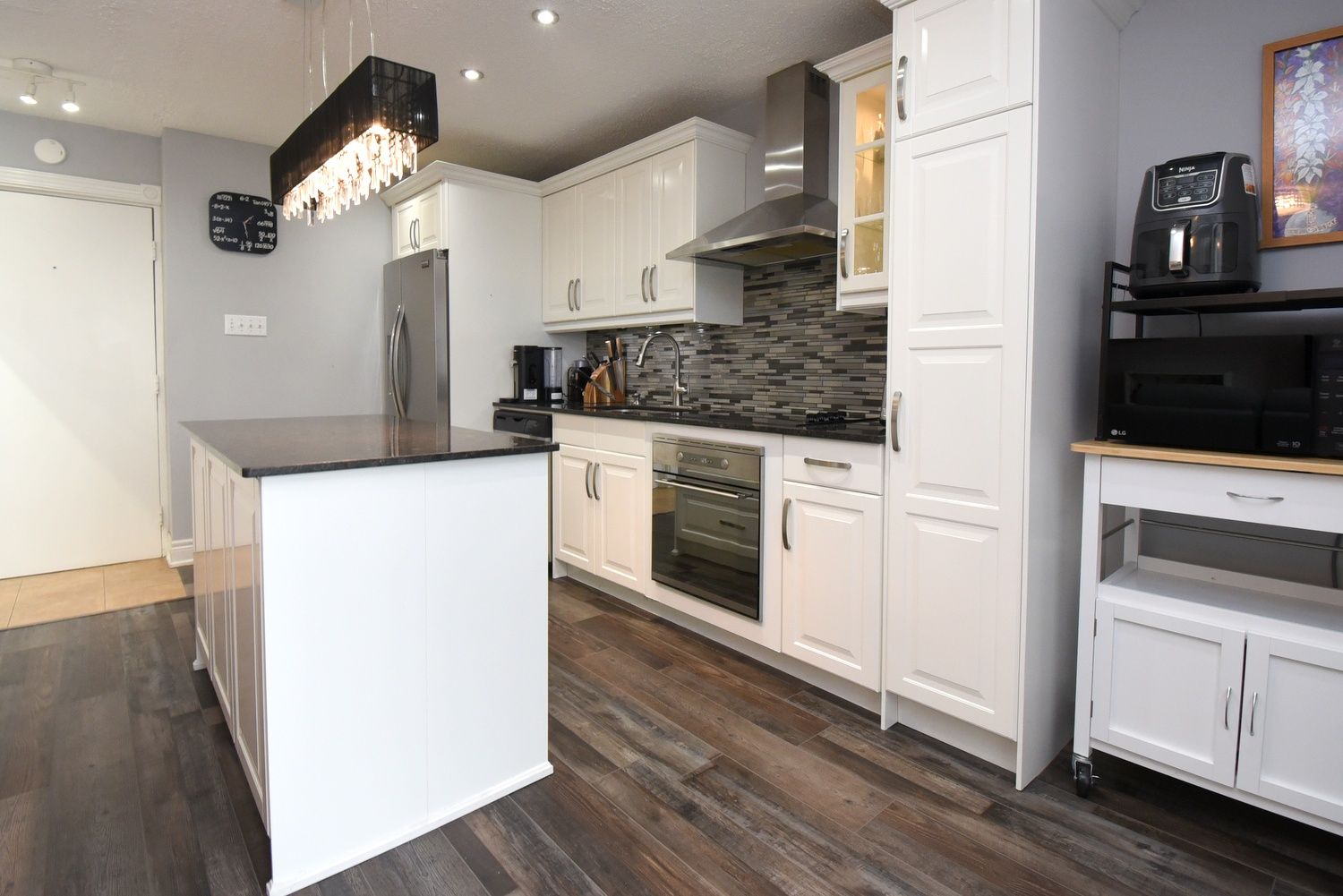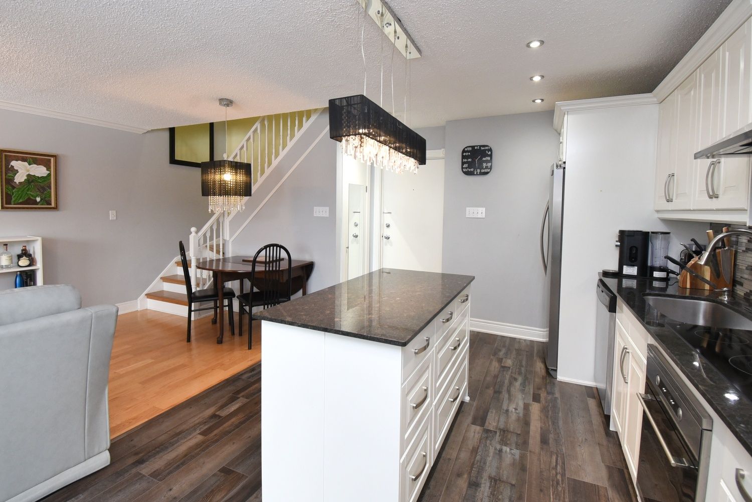 Renovated 2 storey condo in clarkson village. Open concept main floor with white custom kitchen granite countertops. S,s range hood fan, modern backsplash and light fixtures , pot lights an inviting center island kitchen which is great for entertainment and multi functional use. New baseboards and trim, hardwood floors thru out, very clean, 2nd floor features open den, patio doors to second balcony, 2 bedrooms on 2nd floor, full bathroom, en-suite laundry.
