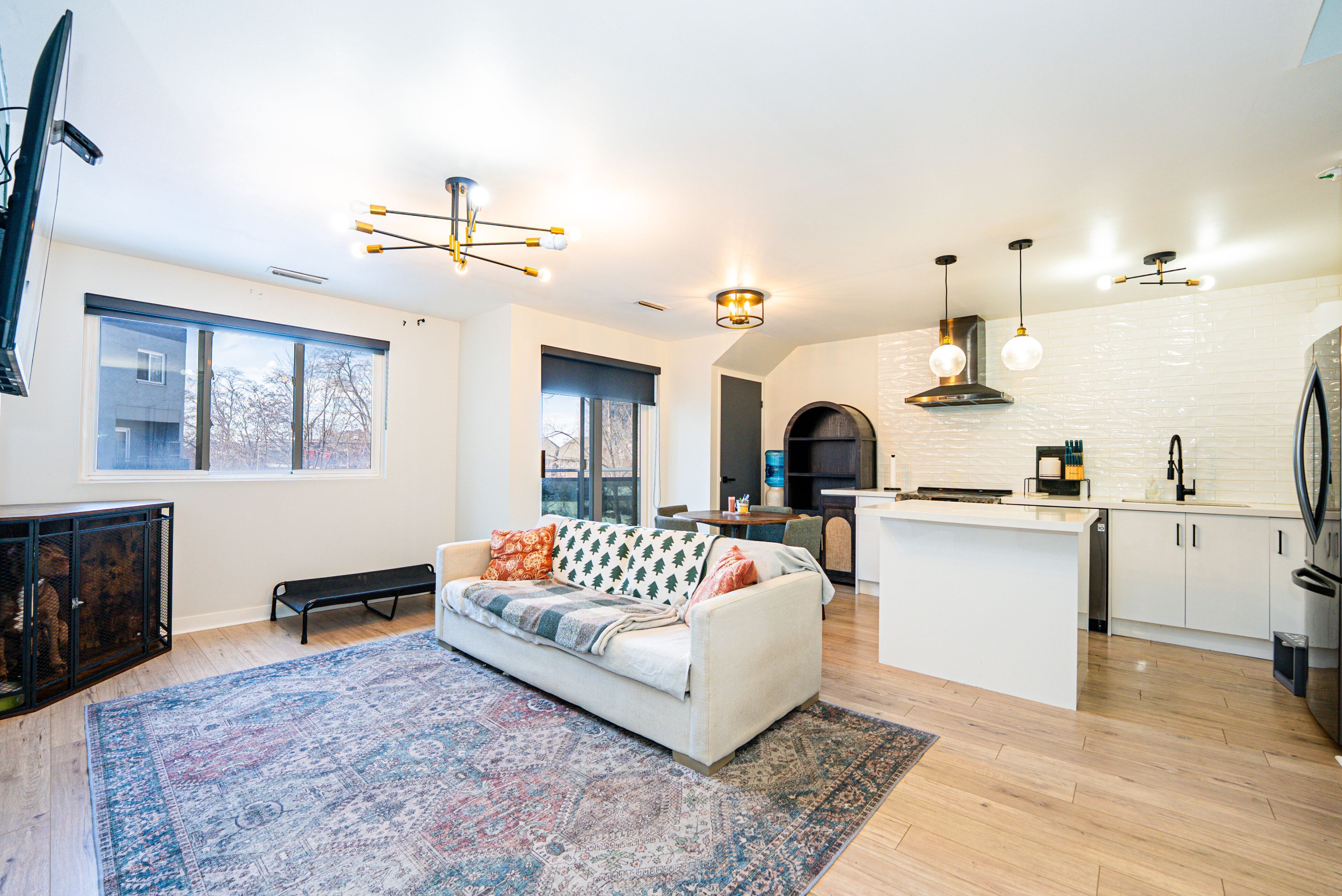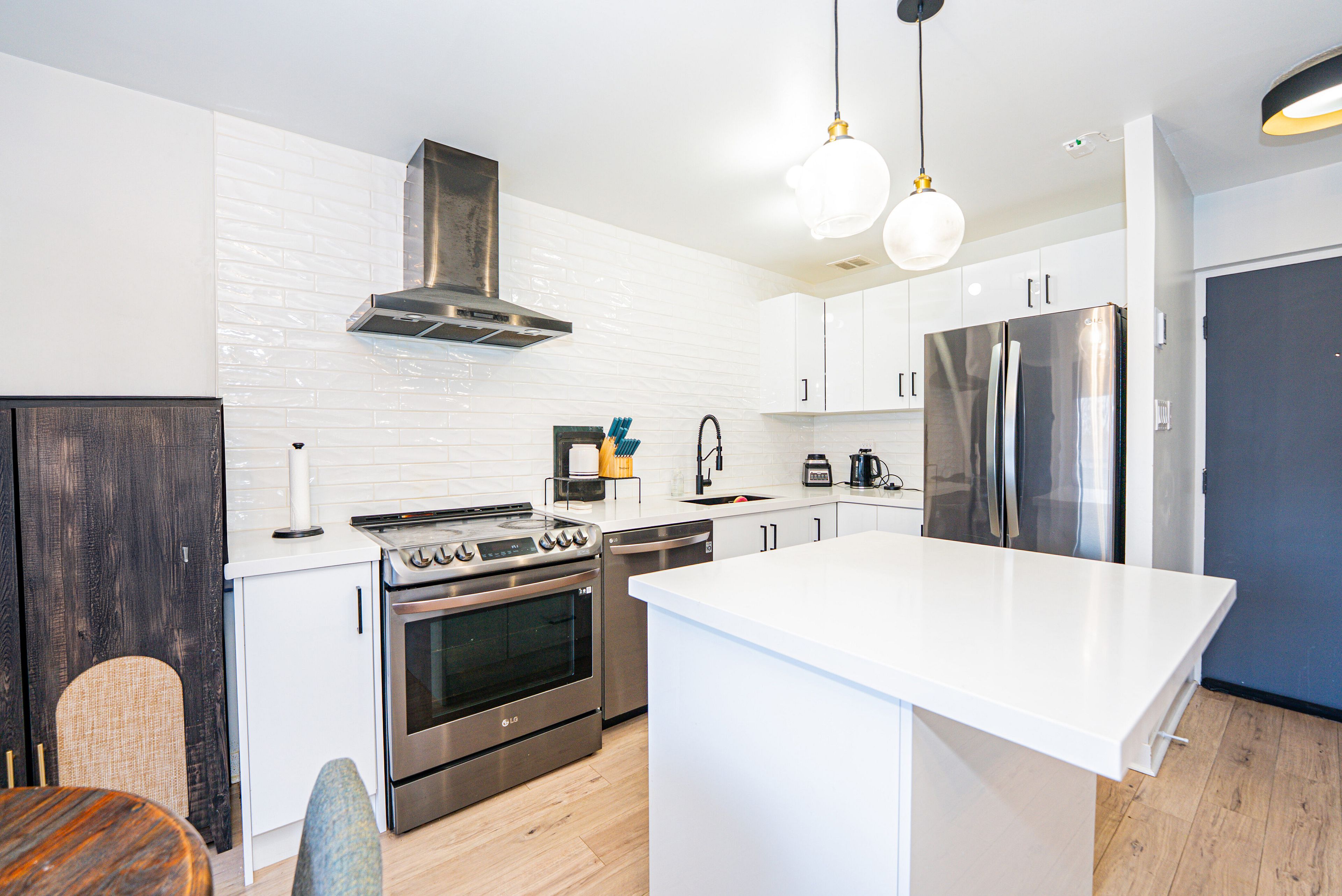 • Modern open-concept kitchen equipped with stylish appliances and spacious island.