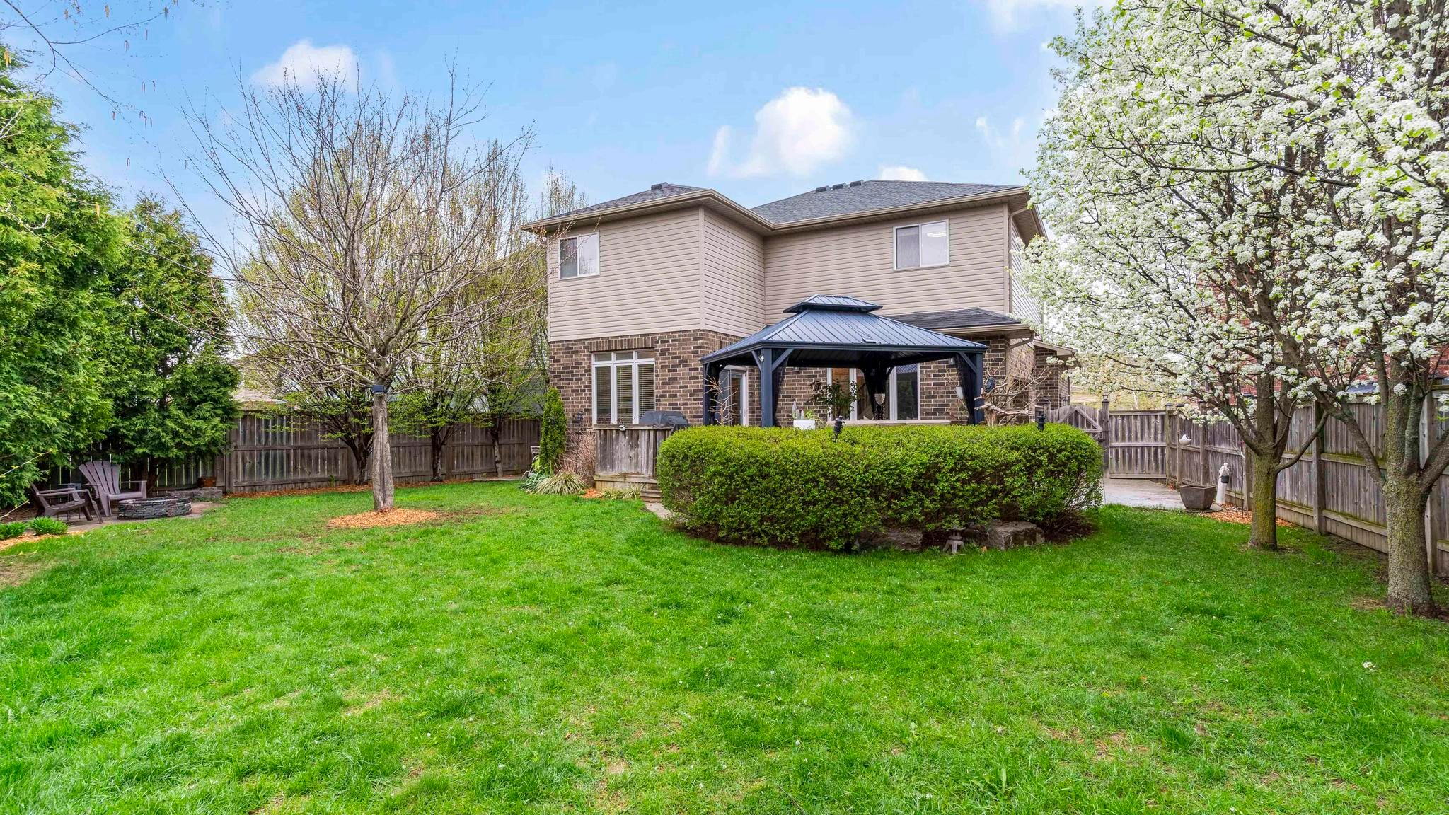 Tucked away on a quiet street in london, this 4 bedroom, 2 storey home sits on one of the largest pie shaped lots in the area, fully fenced, incredibly private, and designed for both everyday living and entertaining. Located in the sought after hyde park area, this home offers the perfect balance of space, privacy, and convenience built by vanderwielen homes, it has over 2600 square feet of finished space across three levels, and it shows in all the right places. The main floor is bright, open, and functional, starting with a tastefully renovated entryway that creates even more practical, usable space right from the moment you walk in. From there, you'll find a white eat-in kitchen with quartz countertops, a centre island, under cabinet lighting, a built in pantry for added storage, and seamless flow into the spacious family room with a stunning stone gas fireplace. A dedicated dining area offers the perfect space to host, along with the convenience of main floor laundry. Step outside to a backyard that truly stands out. A huge sundeck with built in lighting and bbq centre overlooks the fully fenced yard, complete with stamped concrete, a charming gazebo, and a storage shed. It is the kind of space that feels like your own private retreat. Upstairs, you'll find four generously sized bedrooms, including a primary suite designed to unwind in, featuring a walk-in closet and a luxurious 5 piece ensuite with a glass shower, jacuzzi tub, and a private water closet. The lower level was built with extra ceiling height and professionally finished, creating a massive additional living space. Whether it's movie nights, a games area, or hosting guests, the oversized family room, sleek linear fireplace, and full wet bar with quartz counters make it incredibly versatile. A modern 3 piece bathroom adds even more flexibility. This home is move in ready and close to parks, schools, shopping, and restaurants. Don't miss your chance to see it in person, book your showing today!