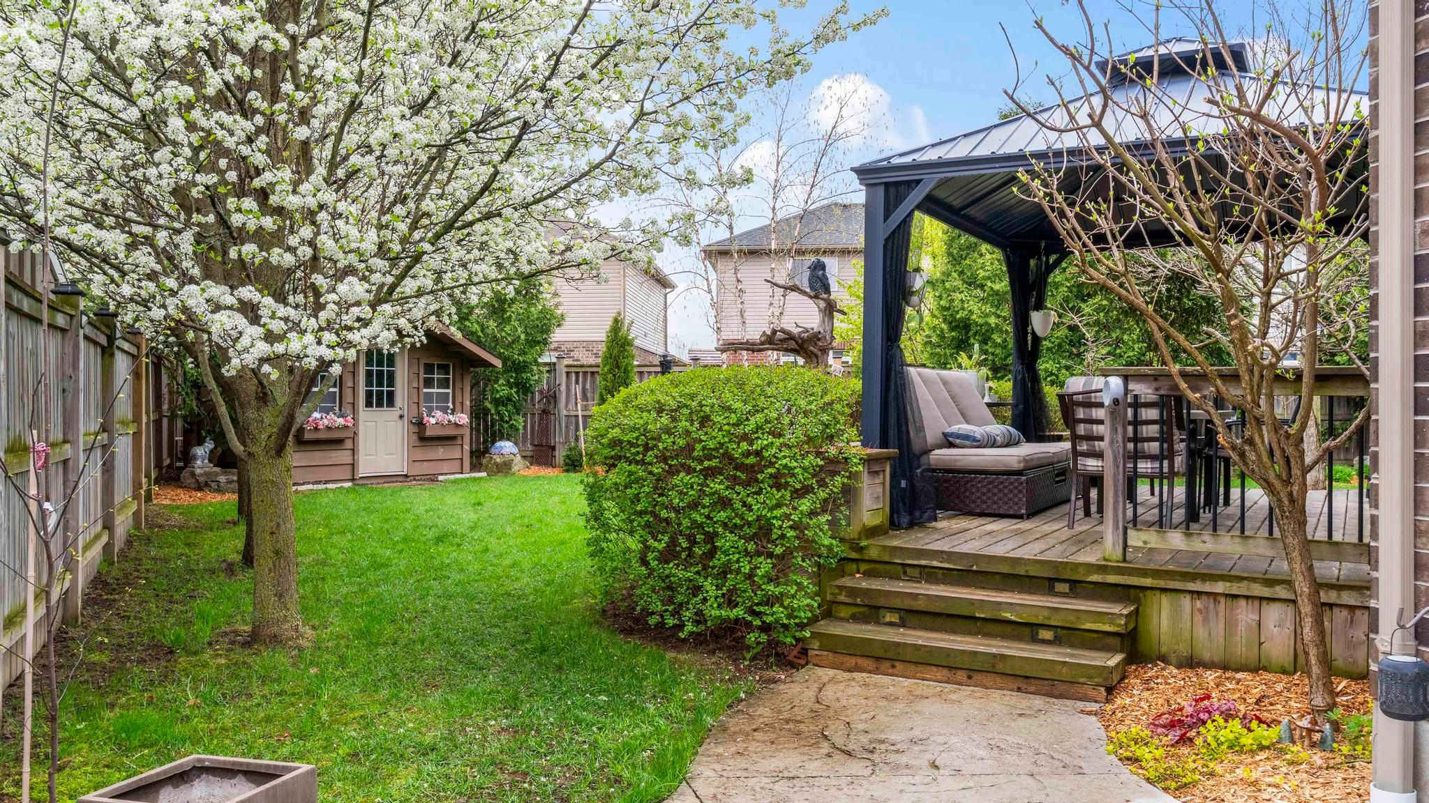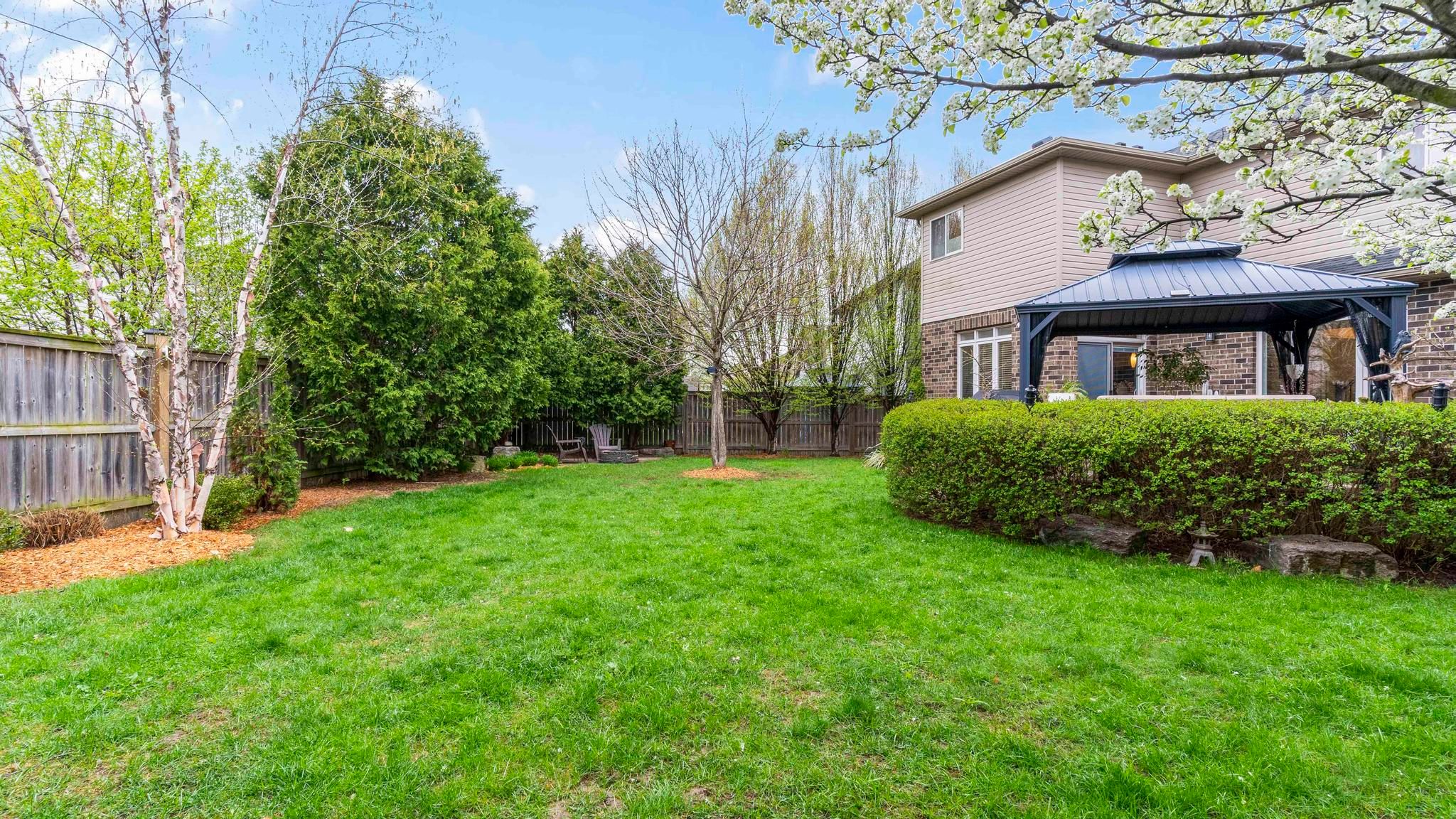 • Large backyard featuring a sundeck, gazebo, and BBQ center for outdoor fun.