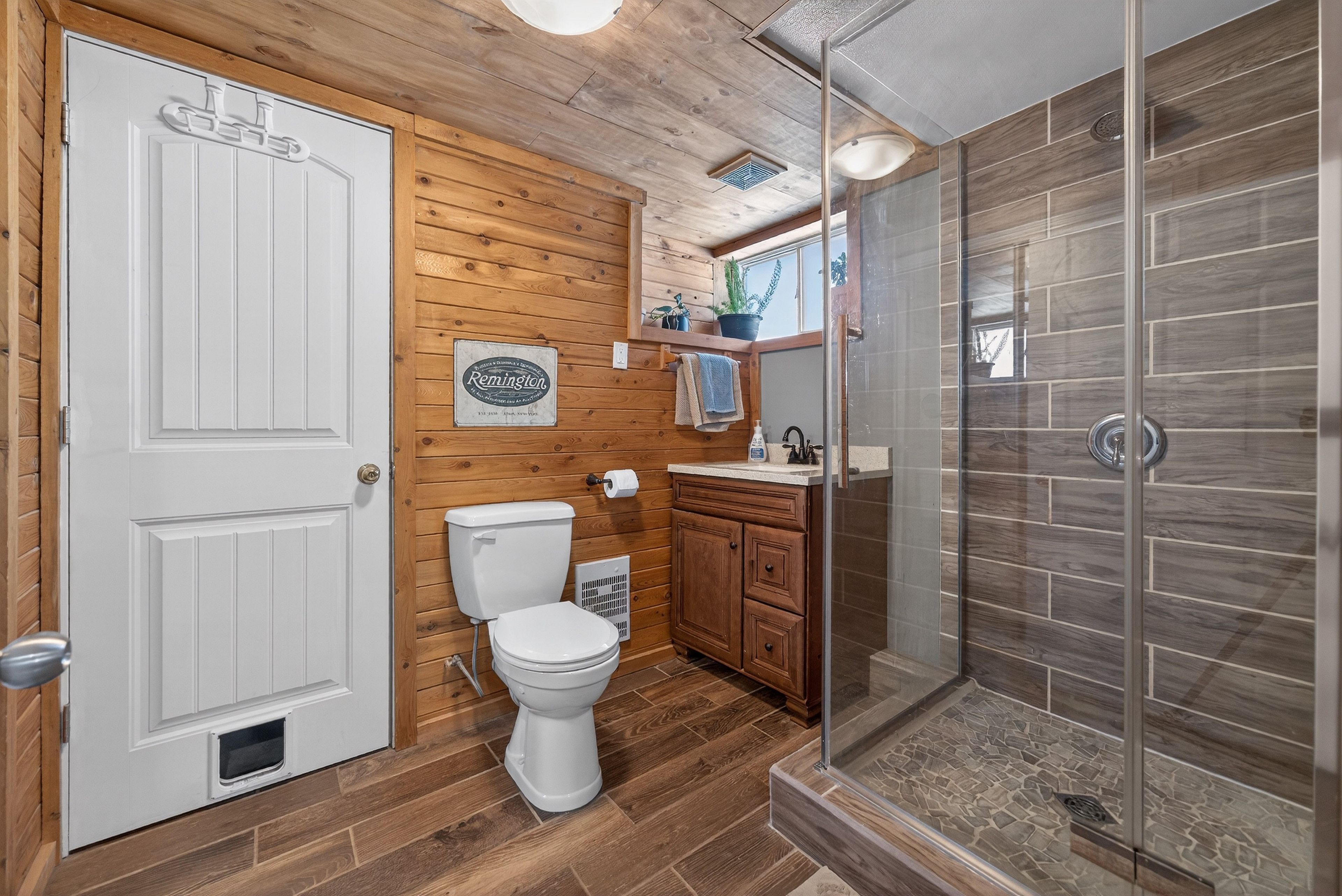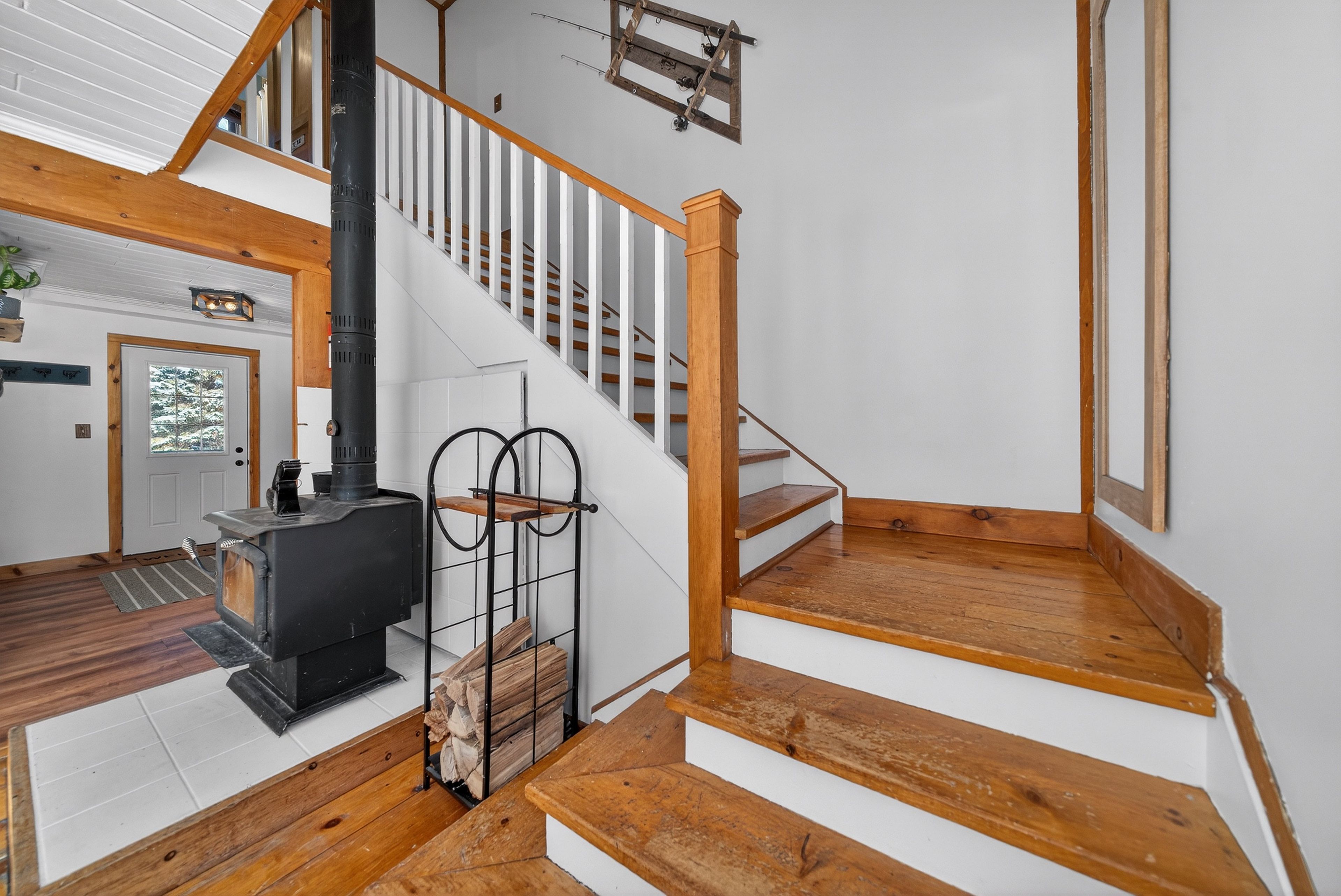 • Cozy wood stove and surrounding forest create a tranquil retreat.