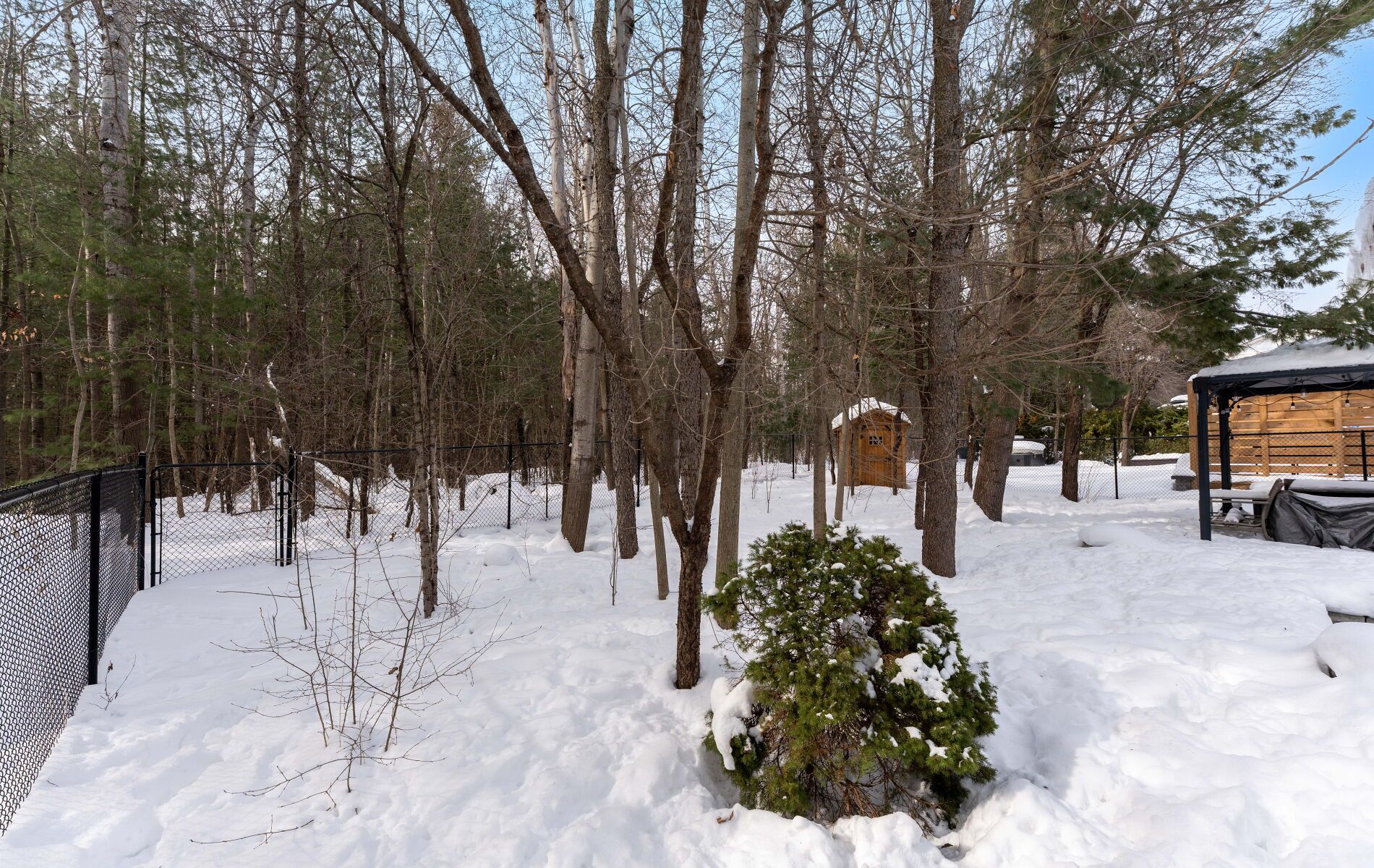 • Professionally landscaped backyard features a large gazebo and mature trees.