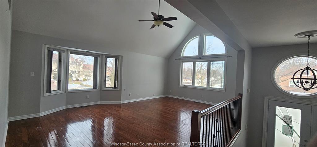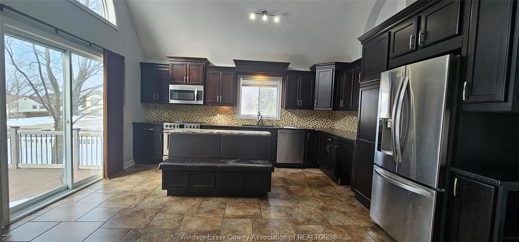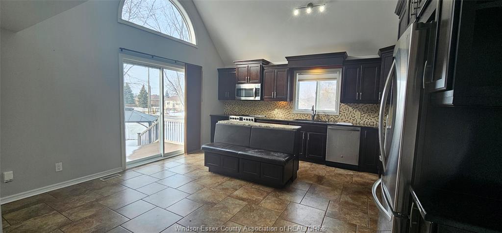 • Bright interior with vaulted ceilings and large windows.