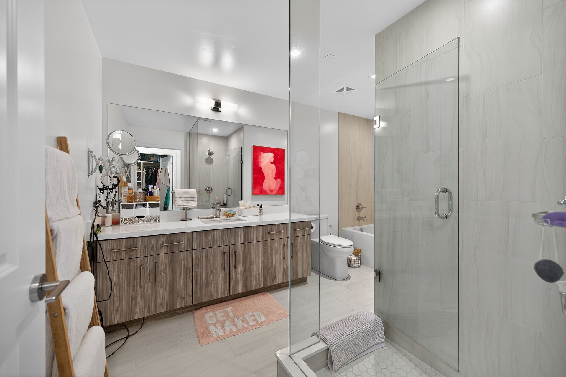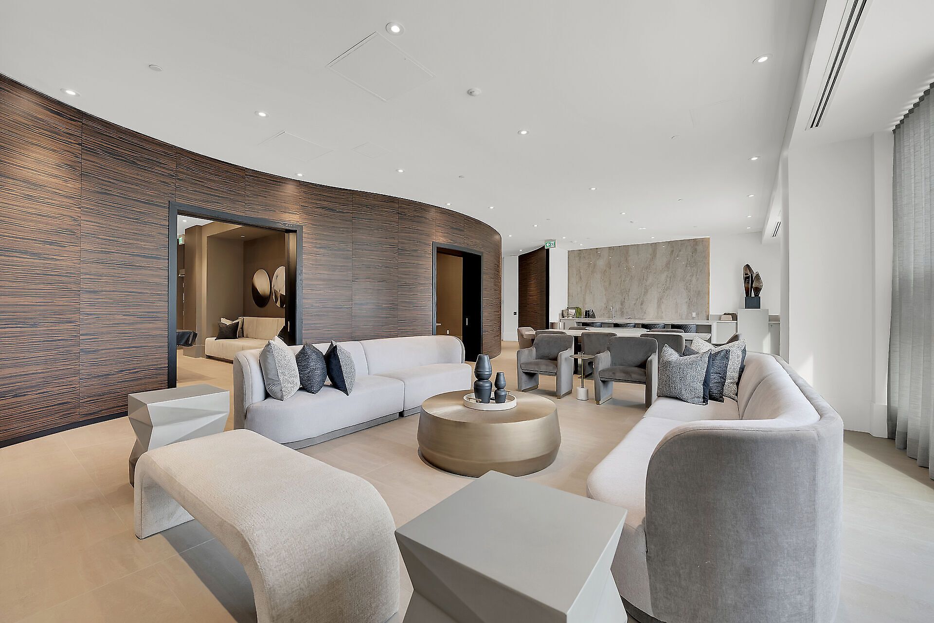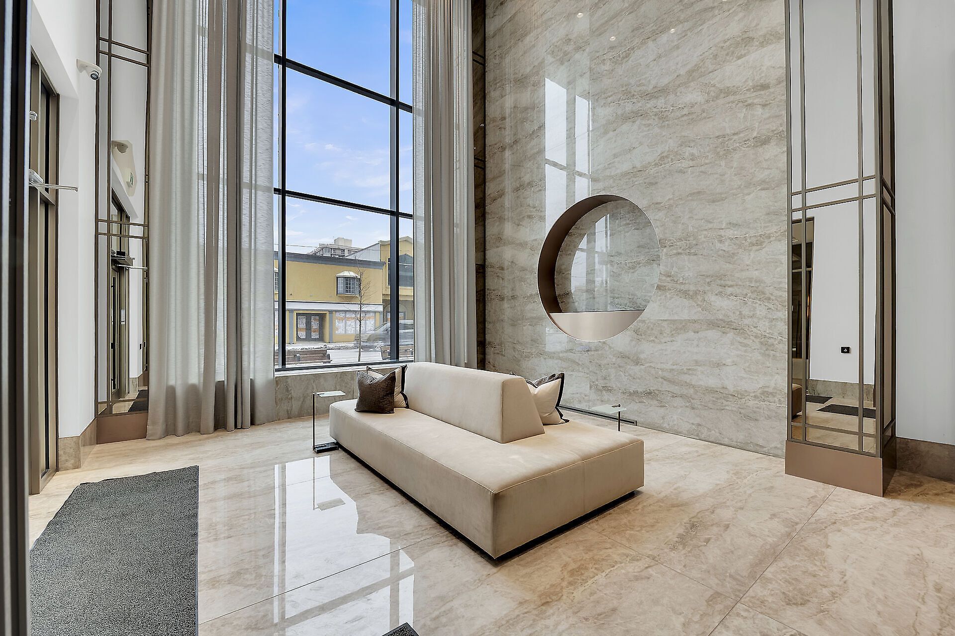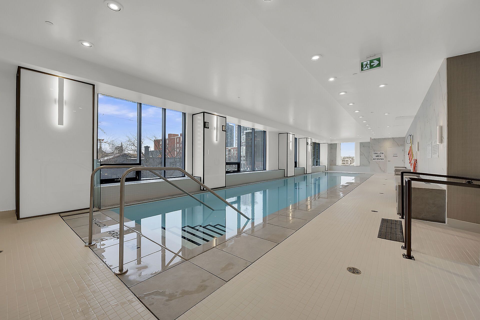 • Luxurious amenities include an indoor pool, gym, and yoga studio.