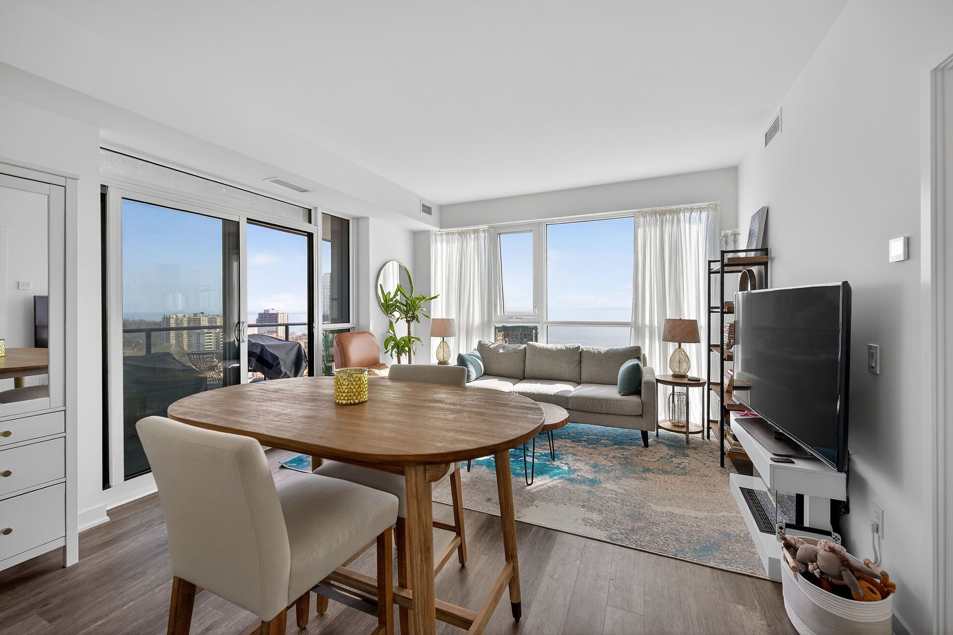 Experience stunning views and luxurious downtown living with hotel-like amenities in this 2-bedroom, 2-bathroom suite. Enjoy a spacious primary bedroom with a 4-piece ensuite, separate walk-in shower, and walk-in closet. Unobstructed views of the lake enhance your living experience. The building provides exceptional amenities including an indoor pool,24-hour concierge, gym, yoga studio, party room with a full kitchen, billiard table, tv room, and a roof terrace with bbq facilities, multiple seating areas, and fire pits. Conveniently located near shops, cafes, restaurants, the mall, and go transit for easy access to all that downtown has to offer.