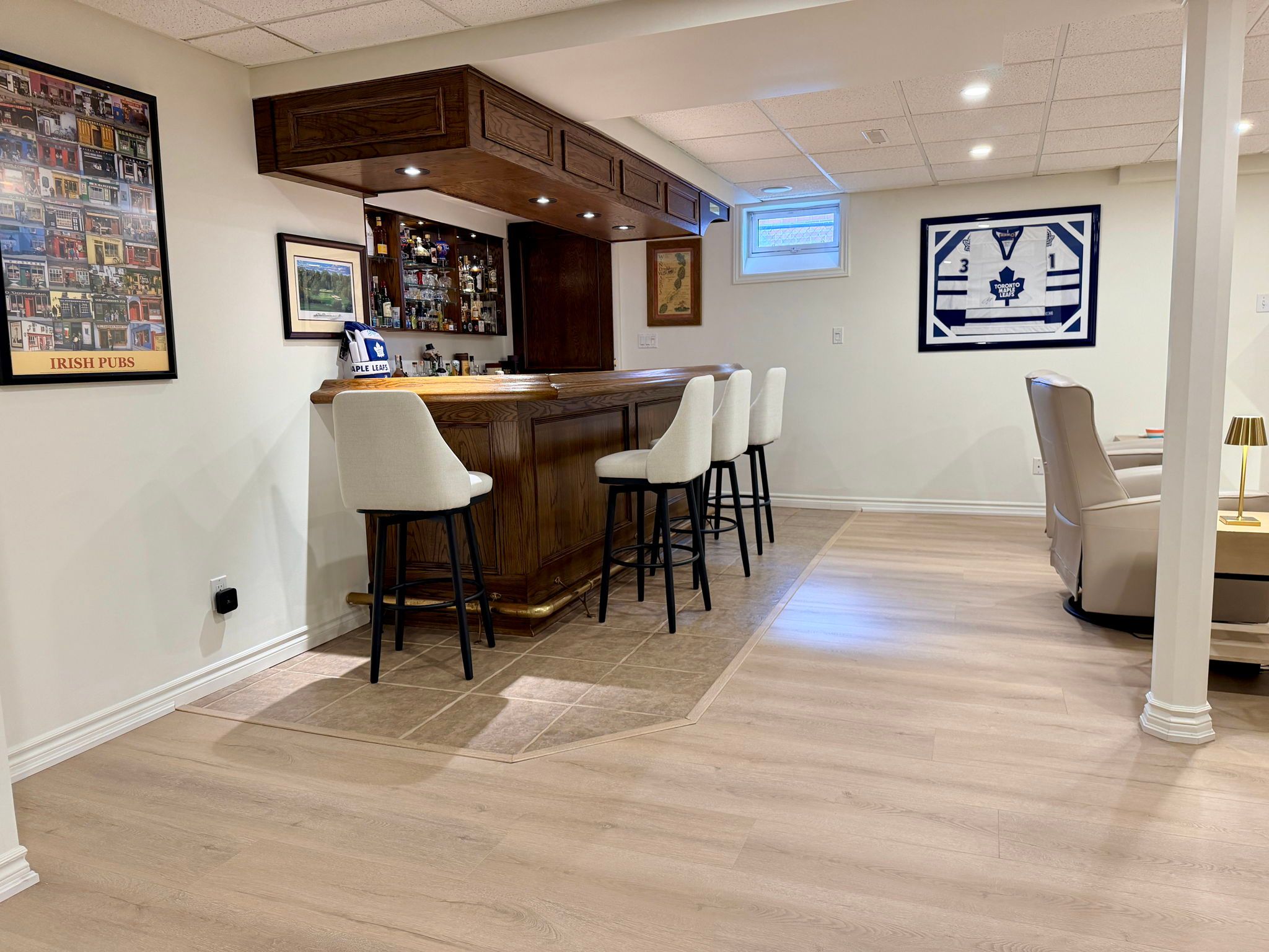 • Finished lower level with rec room, wet bar, and versatile fifth bedroom.