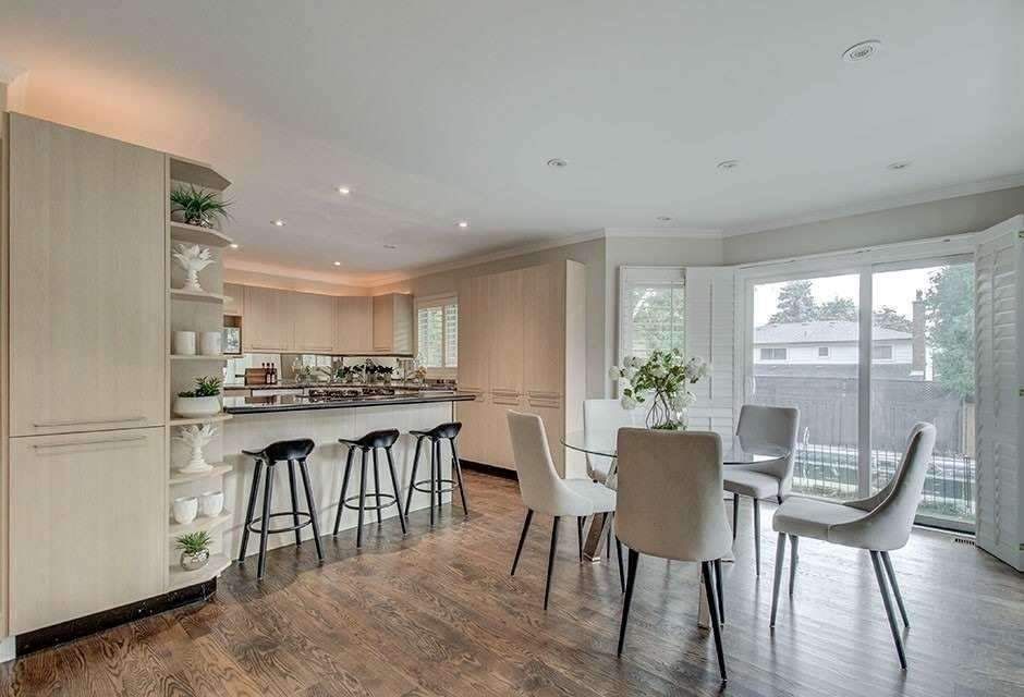 Welcome to the highly sought-after delos school district, surrounded by multi-million-dollar homes in a prestigious and well-established neighbourhood. This beautifully maintained, sun-filled residence is ideally located in the heart of the banbury-don mills community. The main floor features spacious principal living and dining areas adorned with hardwood flooring and expansive windows that flood the home with natural light. A warm and inviting family room with a gas fireplace seamlessly connects to a large eat-in kitchen, creating an ideal space for everyday living and entertaining. The kitchen boasts stunning cabinetry, built-in high-end appliances, including a sub-zero refrigerator and premium stainless steel built-ins, along with a generous breakfast area surrounded by windows. Step outside to a private and serene backyard oasis featuring a large deck and a swimming pool, complete with a newer pump and heater-perfect for relaxing or hosting summer gatherings. The home also offers a finished basement with an additional bedroom, providing extra living space for guests, extended family, or a home office. A rare opportunity to own a bright, elegant home in one of toronto's most desirable communities.