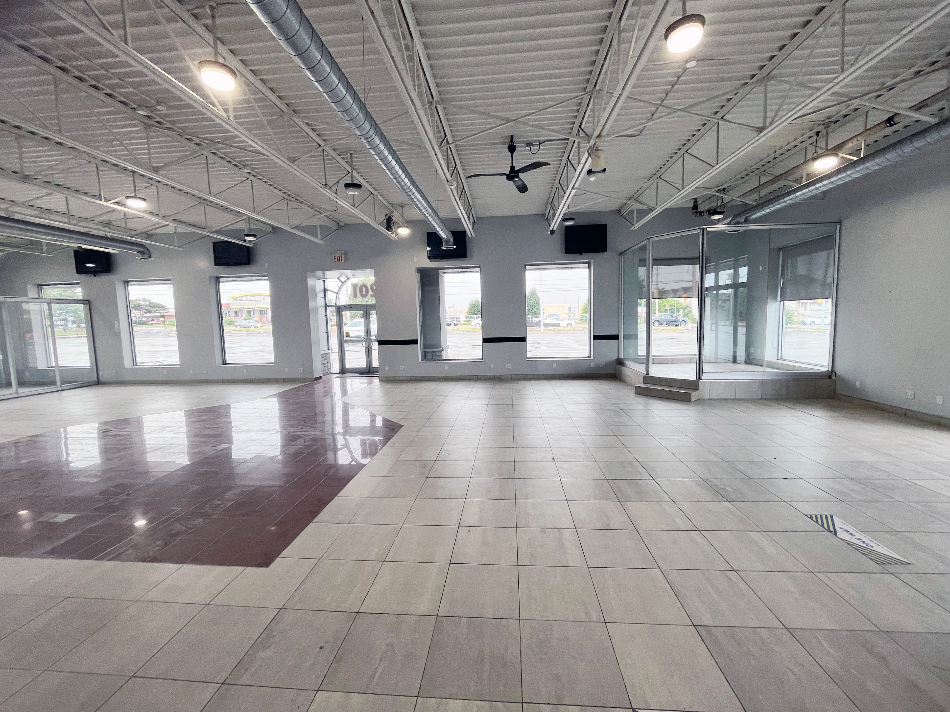 Don't miss out on this exceptional opportunity to lease a prime stand-alone building offering unparalleled visibility on bayly st w. Situated on a corner lot with ample parking, this property is conveniently located near a variety of amenities and public transportation. The area also benefits from a highly skilled labour pool. Flexible zoning permits a wide range of uses. The lease includes parking for 96 single cars and 17 double-parked cars (or the option to double-park an additional 12 cars), clear heights ranging from 12 to 18 ft, and six drive-in doors, some of which are oversized, making it ideal for accommodating diverse business needs. Please note: auto repair is not permitted. Additional parking for 128 cars (approx. 50% double-parked) or 64 trucks for an extra $5,500 per month + hst can be leased in conjunction or separately. Permitted uses include: accessory outdoor patio, art gallery, banquet facility, commercial fitness centre, commercial school, community centre, convenience store, crisis care facility, day care facility, dry cleaning depot, financial institution, funeral home, laundromat (self serve), library, medical clinic*, motel motor vehicle rental depot, motor vehicle sales establishment (excluding accessory service/repair facilities and outdoor storage or display of vehicles), museum, office, parking lot as a principal use, personal service shop, place of assembly, place of entertainment, place of worship, restaurant, retail store*, service or repair shop (non-automotive), sports arena veterinary clinic. *provisions apply. Please contact the town to confirm if your intended use is permitted.*
