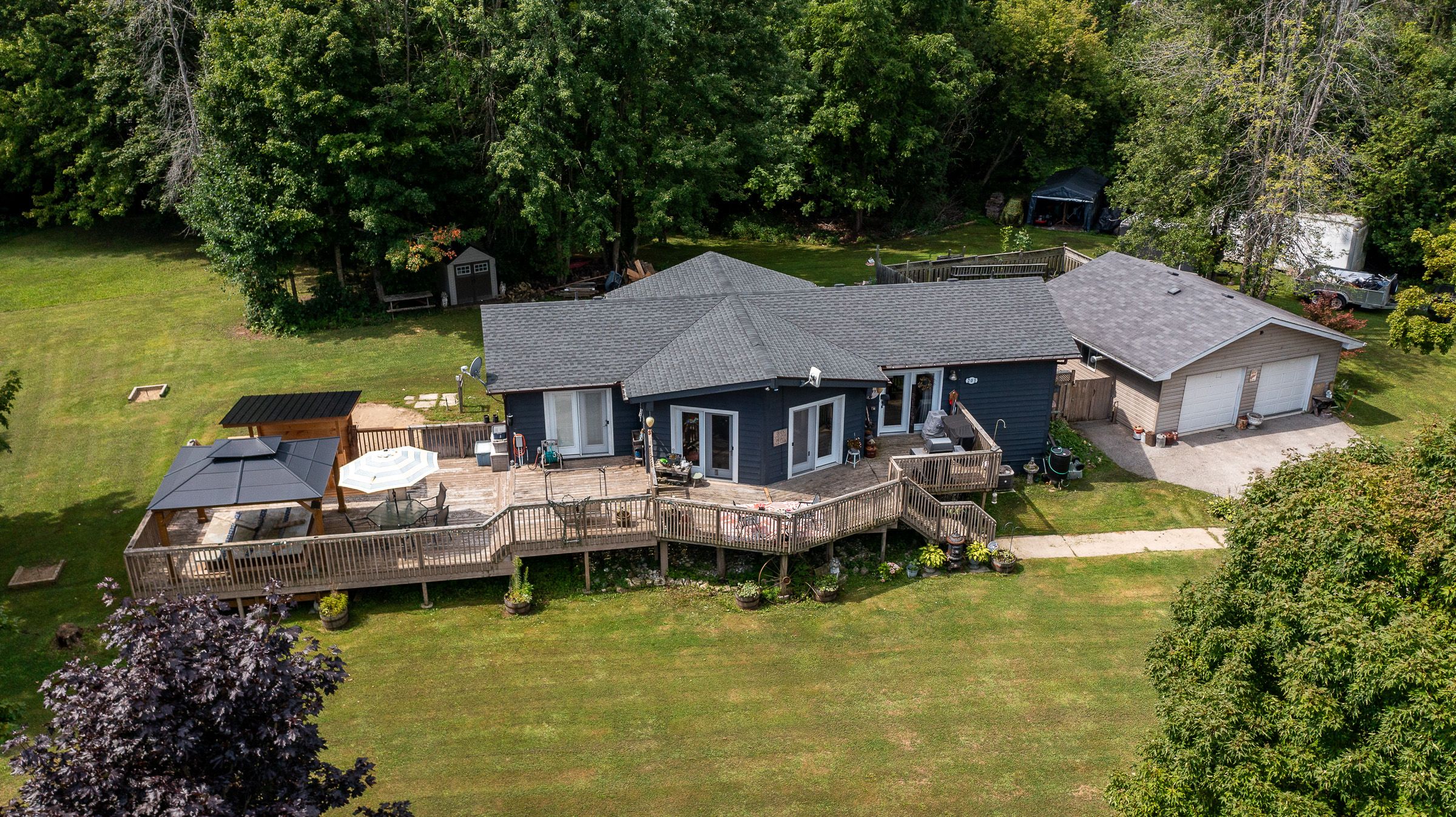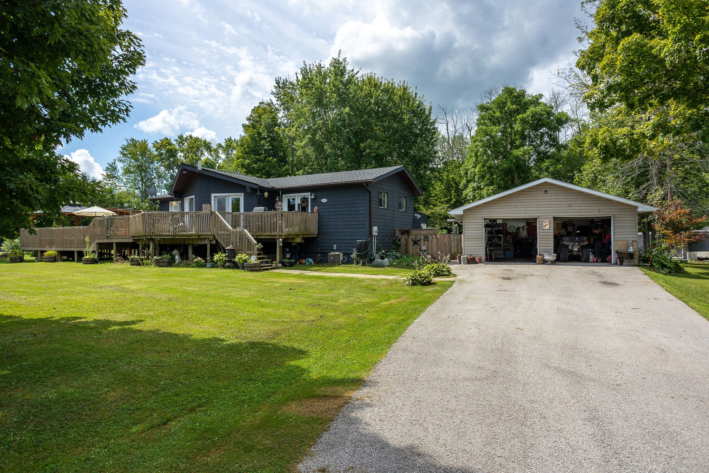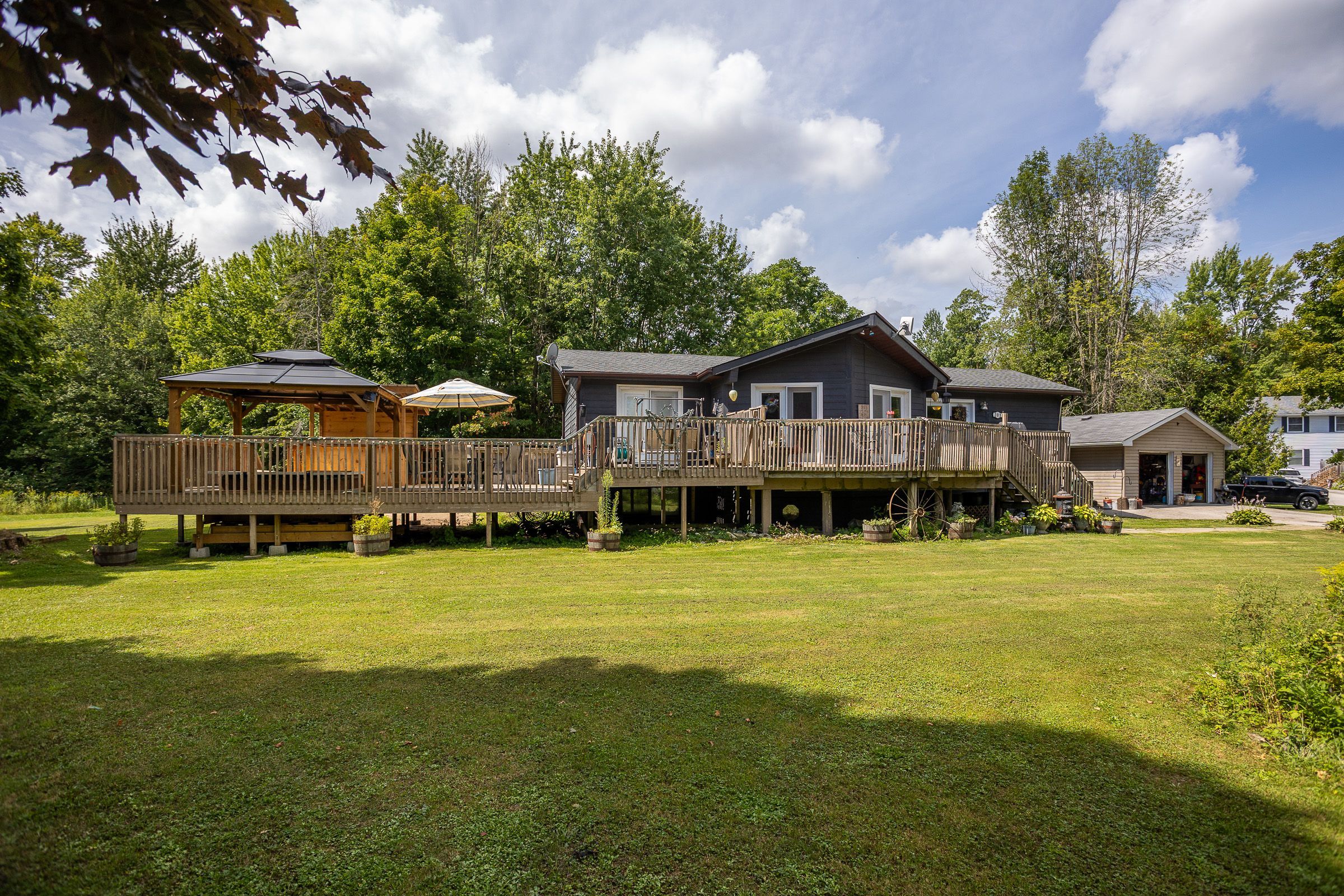 Welcome to this spacious 3+1 bedroom, 2-bath home located on a quiet dead-end road in the heart of shallow lake. Perfect for families; this property offers a functional layout with plenty of room to grow. The main level features a bright and inviting living space, a well-equipped kitchen and a dining area. With easy access to the large deck it is ideal for entertaining or enjoying peaceful evenings outdoors. Cozy up to the new tiki-bar and enjoy your favourite beverage. The lower level provides an additional full bathroom, bedroom and versatile living space, perfect a recreation room or having guests. A detached 2-car garage offers ample storage and workspace for vehicles, tools, or hobbies. Nestled in a friendly community, this home combines the best of small-town living with the comfort of a spacious property, making it an excellent choice for your next move.