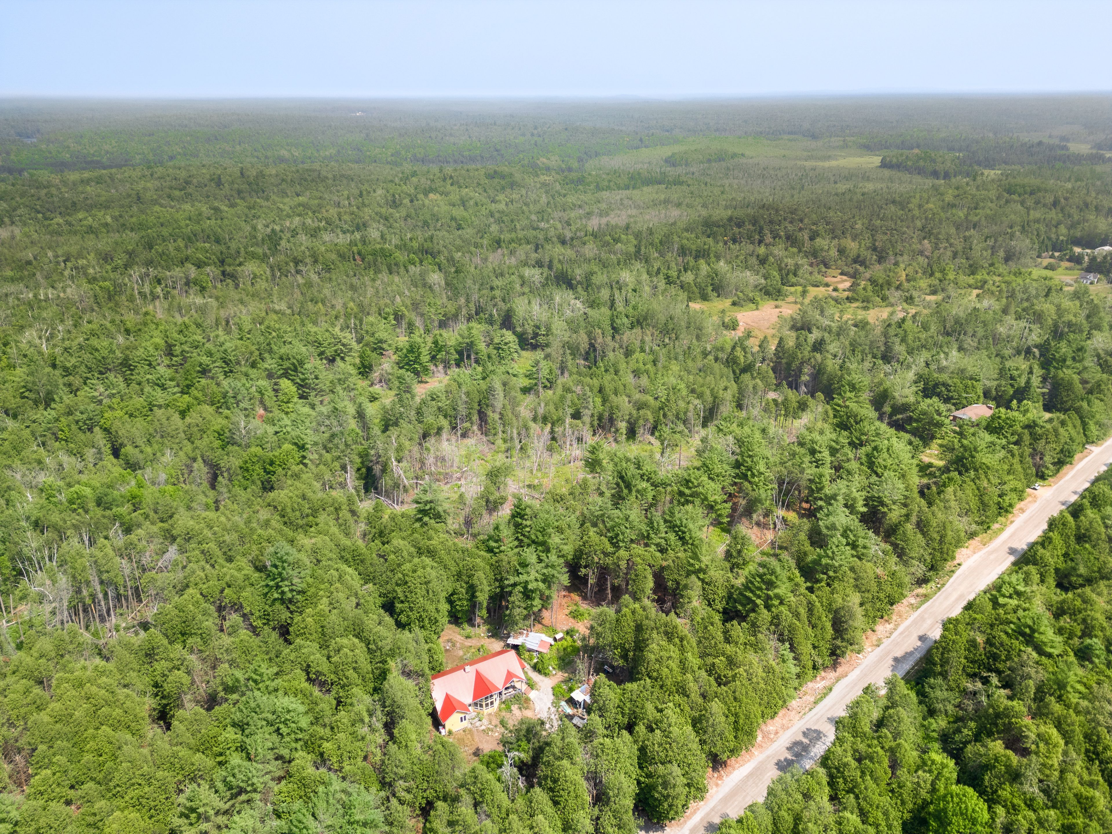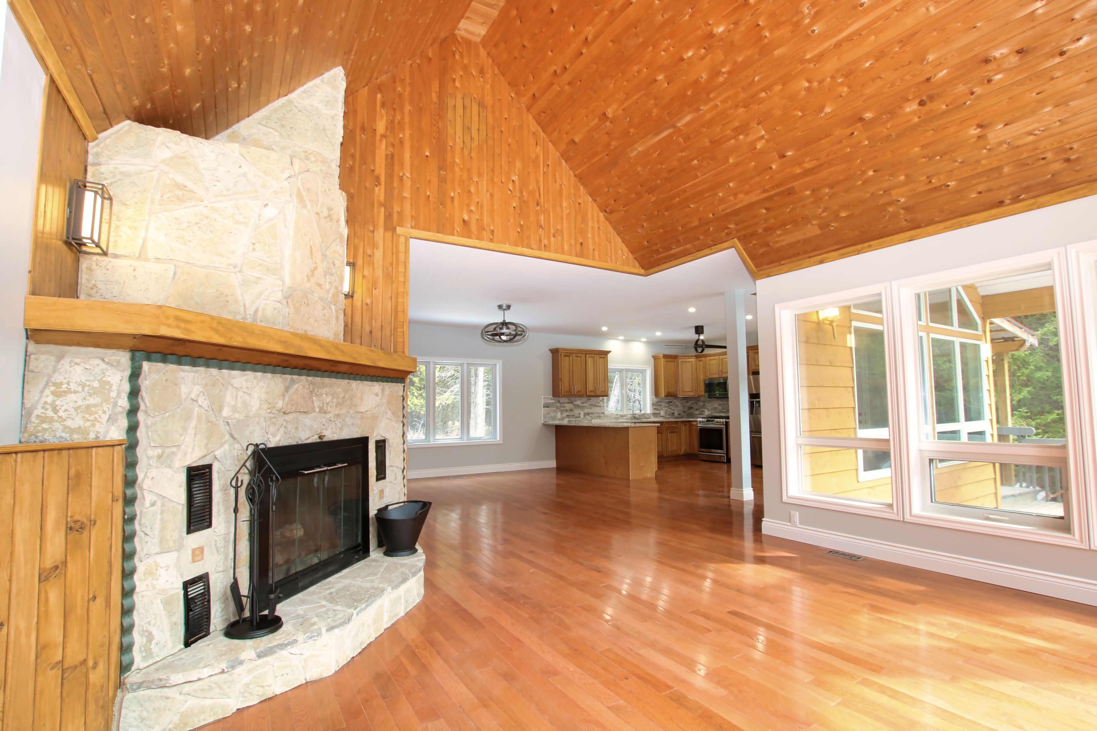Enjoy nature at your doorstep on this 96-acre retreat! This spacious and bright bungalow features 3 bedrooms and 2 modern bathrooms, complete with beautiful hardwood floors throughout. The great room boasts soaring cathedral ceilings, expansive windows that flood the space with natural light, and a cozy stone fireplace perfect for cool winter nights. The home is heated with a propane furnace and includes central air conditioning for year-round comfort. Ideal for entertaining, the large open-concept kitchen is equipped with elegant quartz countertops. The spacious, unspoiled walk-up basement includes a rough-in for an additional bathroom and offers plenty of potential for future customization. With a fresh coat of paint and a bit of elbow grease, this home will truly shine again. Step outside to enjoy scenic trails perfect for walking, four-wheeling, and snowmobiling right from your doorstep. Hunting and fishing opportunities abound nearby, offering the ultimate outdoor lifestyle. Conveniently located close to kinmount, this is the perfect escape from the hustle and bustle of the big city. Don't miss your chance to own a piece of paradise!