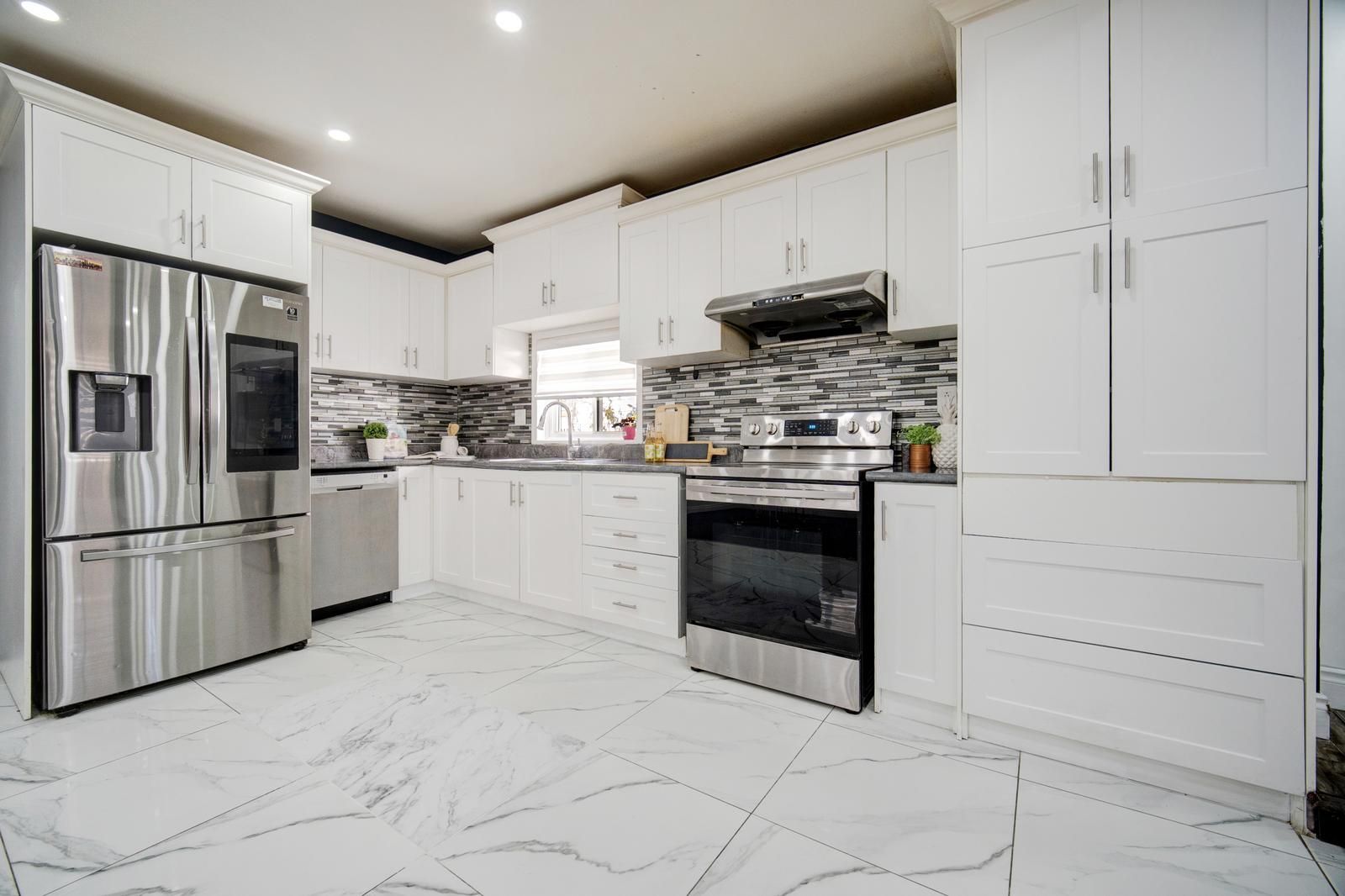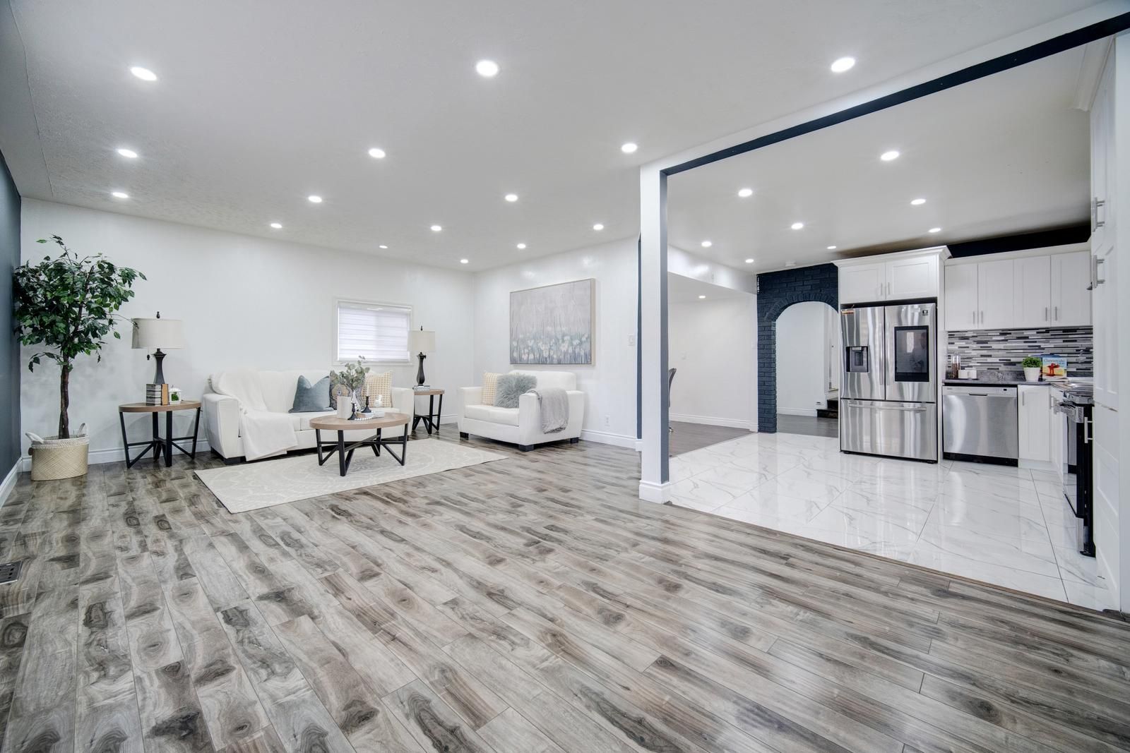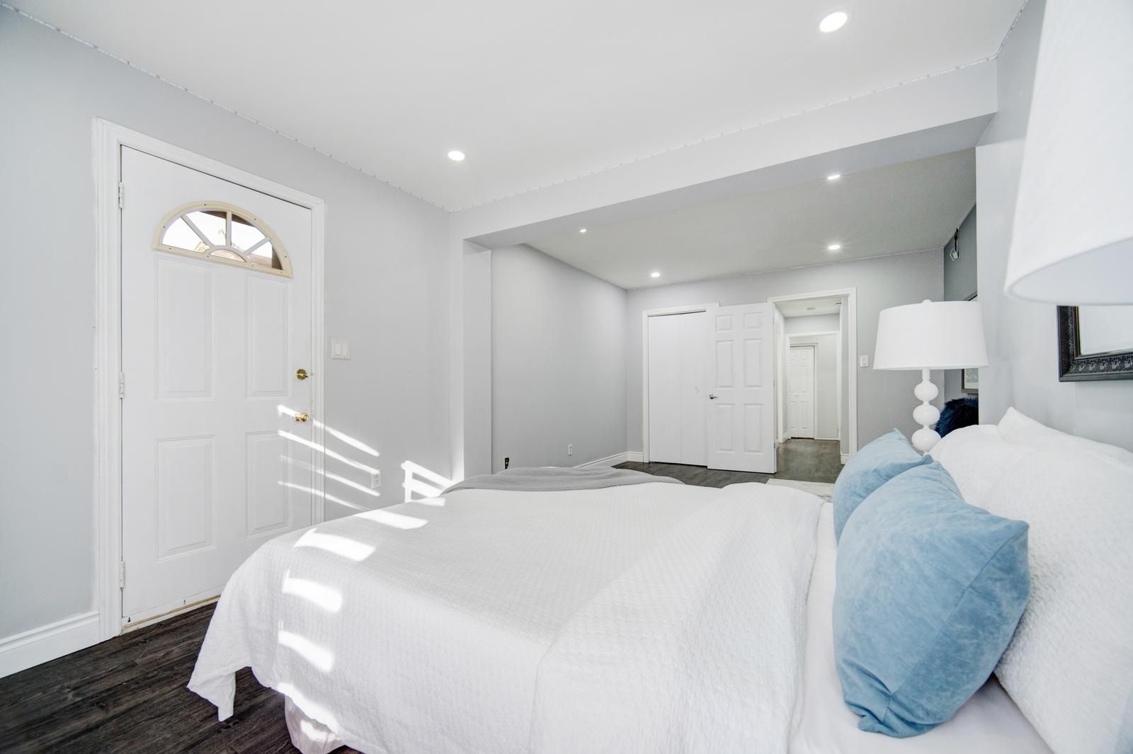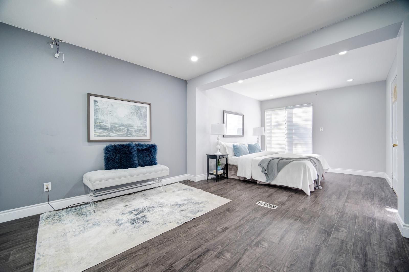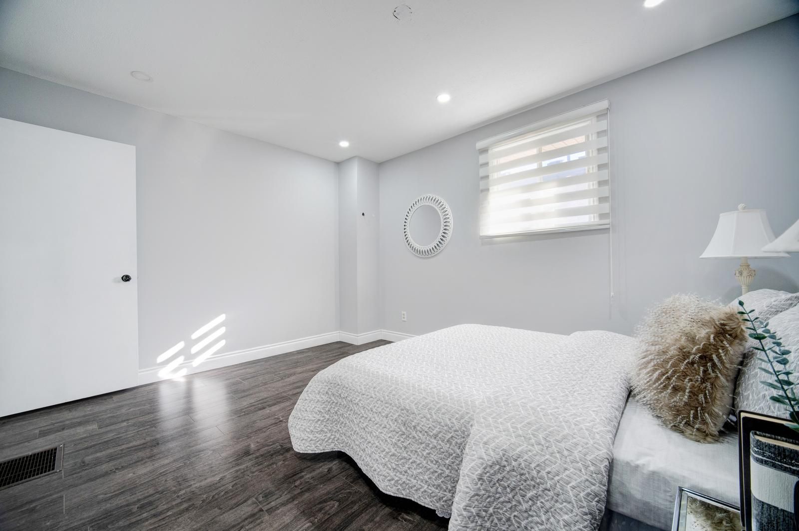 Welcome to this stunning, fully renovated 3-bedroom detached bungalow nestled in a quiet and family-friendly neighborhood. All three bedrooms are conveniently located on the main floor, with an additional area that can be used as a den or home office. The home features a separate dining room, an open-concept layout, and a grand living room perfect for entertaining. The upgraded kitchen showcases high-end stainless steel appliances, including a smart refrigerator with a built-in screen, along with modern finishes throughout. A side entrance provides access to one of the bedrooms, while another bedroom offers a walkout to the backyard. The main floor is beautifully illuminated with pot lights throughout, and the finished basement offers exceptional versatility-ideal for use as an entertainment room, media room, or spacious family room. This property is conveniently located close to parks, hospitals, schools, and all other amenities. With its flexible layout, the home can easily be converted into two self-contained units-each with two bedrooms and it s own bathroom-for potential rental income, or configured for individual room rentals to maximize investment potential. Enjoy quality finishes throughout this sophisticated home, including abundant natural light, elegant light fixtures, and premium pot lighting.