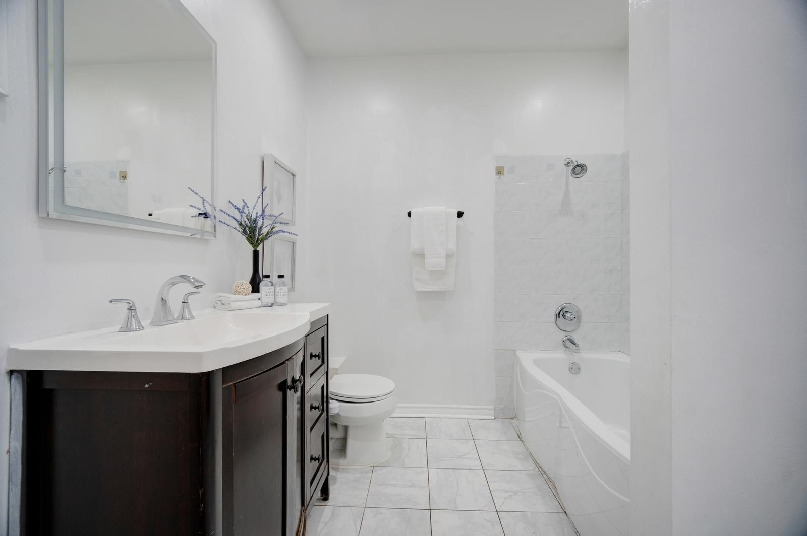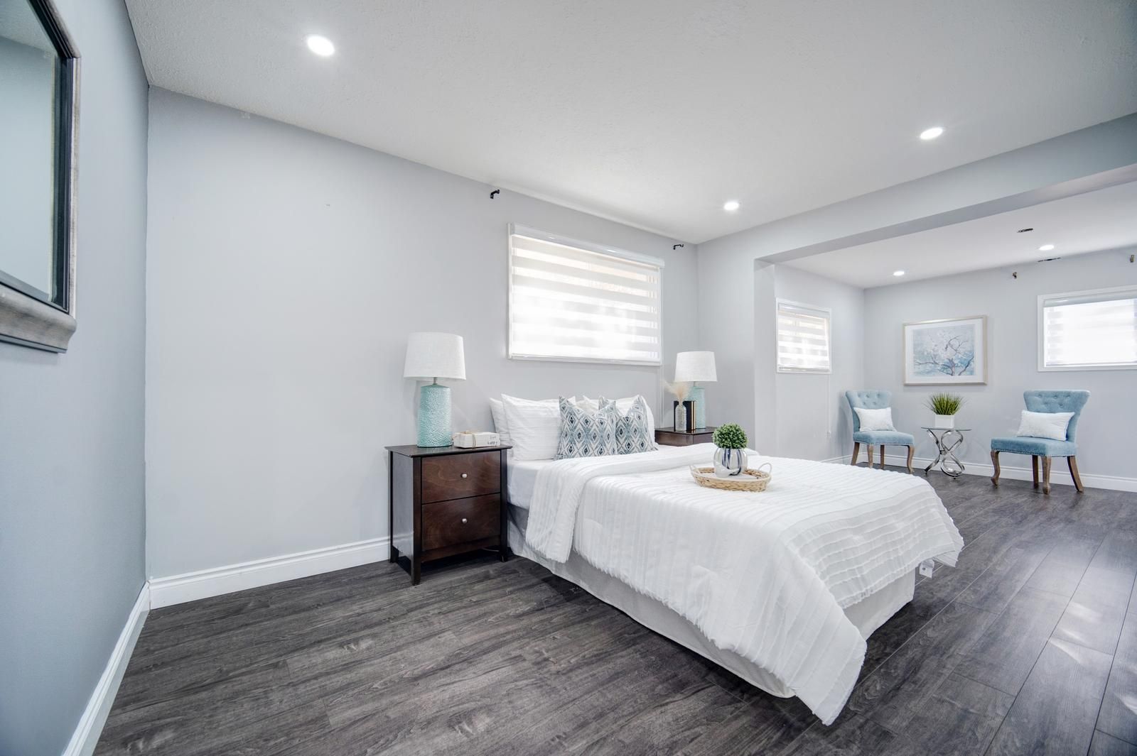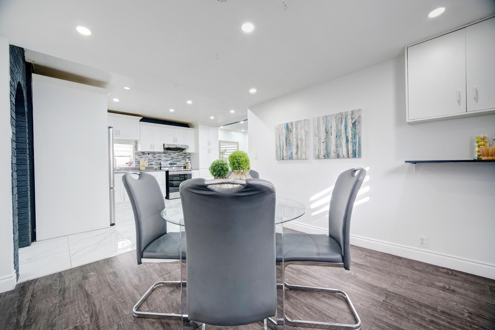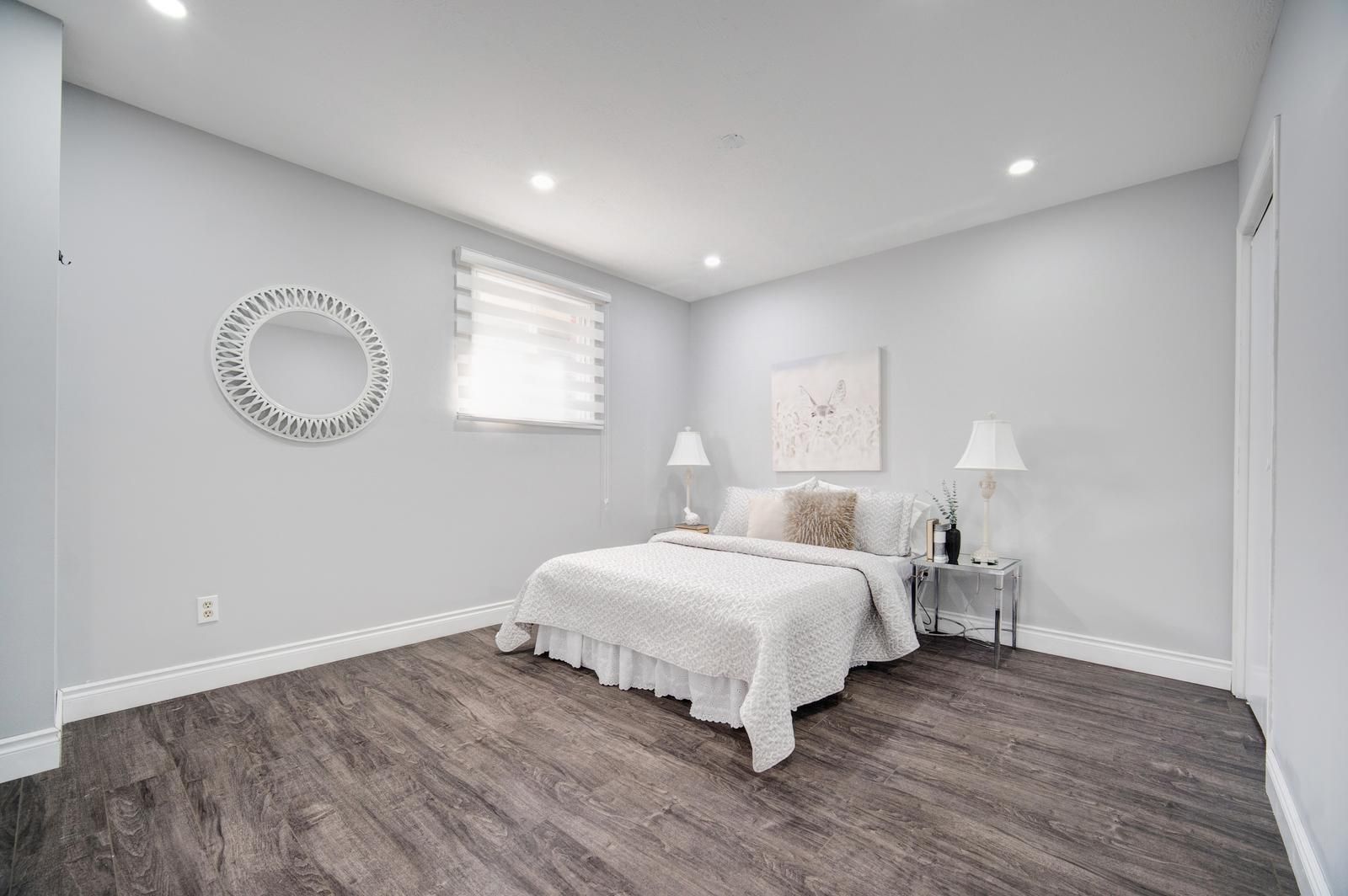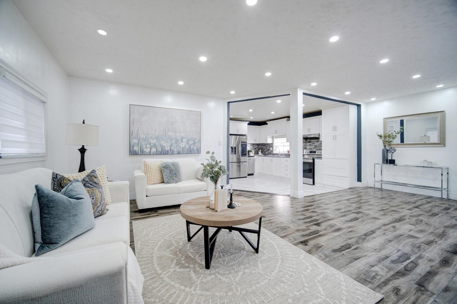 Welcome to this stunning, fully renovated 3-bedroom detached bungalow nestled in a quiet and family-friendly neighborhood. All three bedrooms are conveniently located on the main floor, with an additional area that can be used as a den or home office. The home features a separate dining room, an open-concept layout, and a grand living room perfect for entertaining. The upgraded kitchen showcases high-end stainless steel appliances, including a smart refrigerator with a built-in screen, along with modern finishes throughout. A side entrance provides access to one of the bedrooms, while another bedroom offers a walkout to the backyard. The main floor is beautifully illuminated with pot lights throughout, and the finished basement offers exceptional versatility-ideal for use as an entertainment room, media room, or spacious family room. This property is conveniently located close to parks, hospitals, schools, and all other amenities. With its flexible layout, the home can easily be converted into two self-contained units-each with two bedrooms and it s own bathroom-for potential rental income, or configured for individual room rentals to maximize investment potential. Enjoy quality finishes throughout this sophisticated home, including abundant natural light, elegant light fixtures, and premium pot lighting.