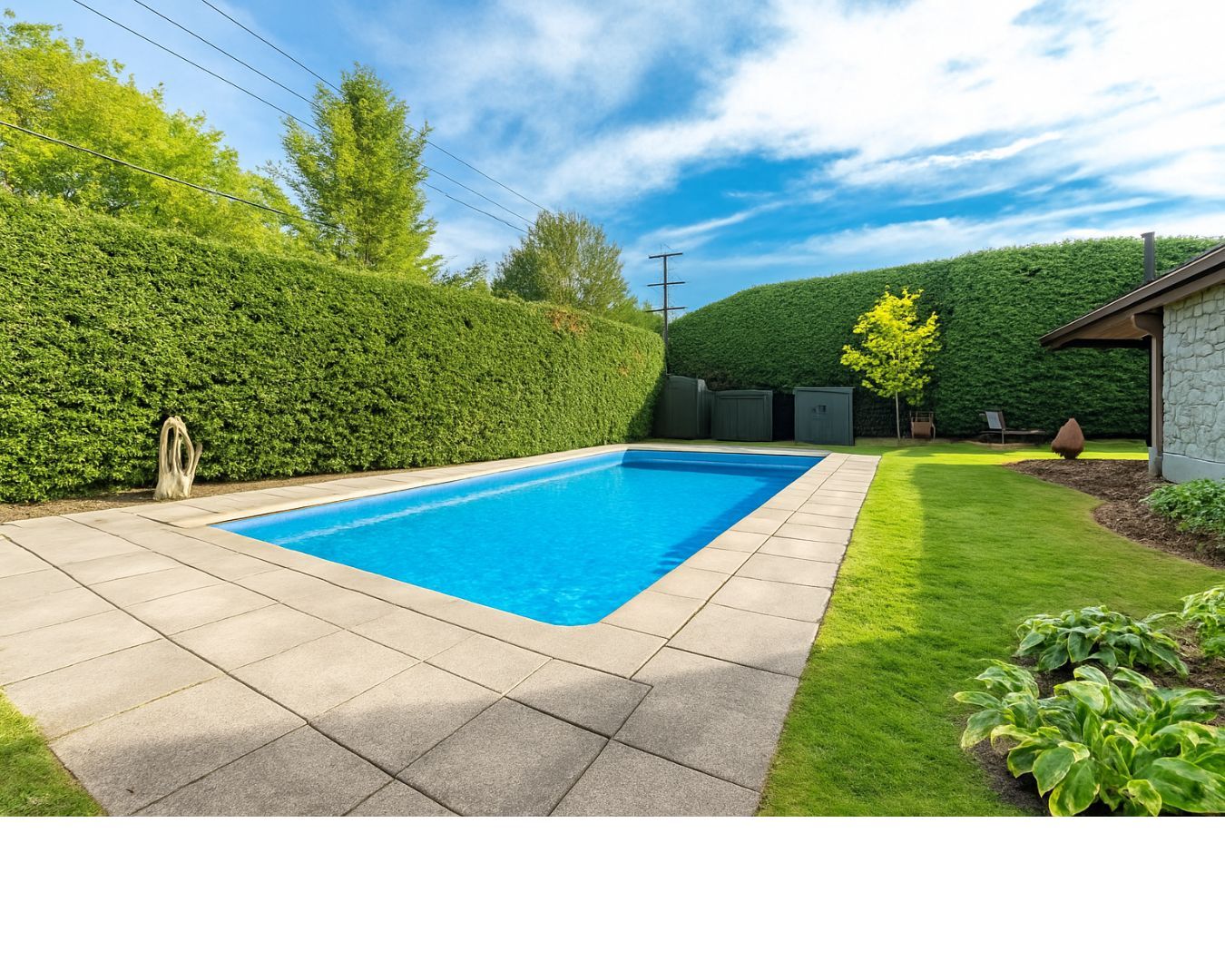 • Large in-ground concrete pool great for relaxation and gatherings.