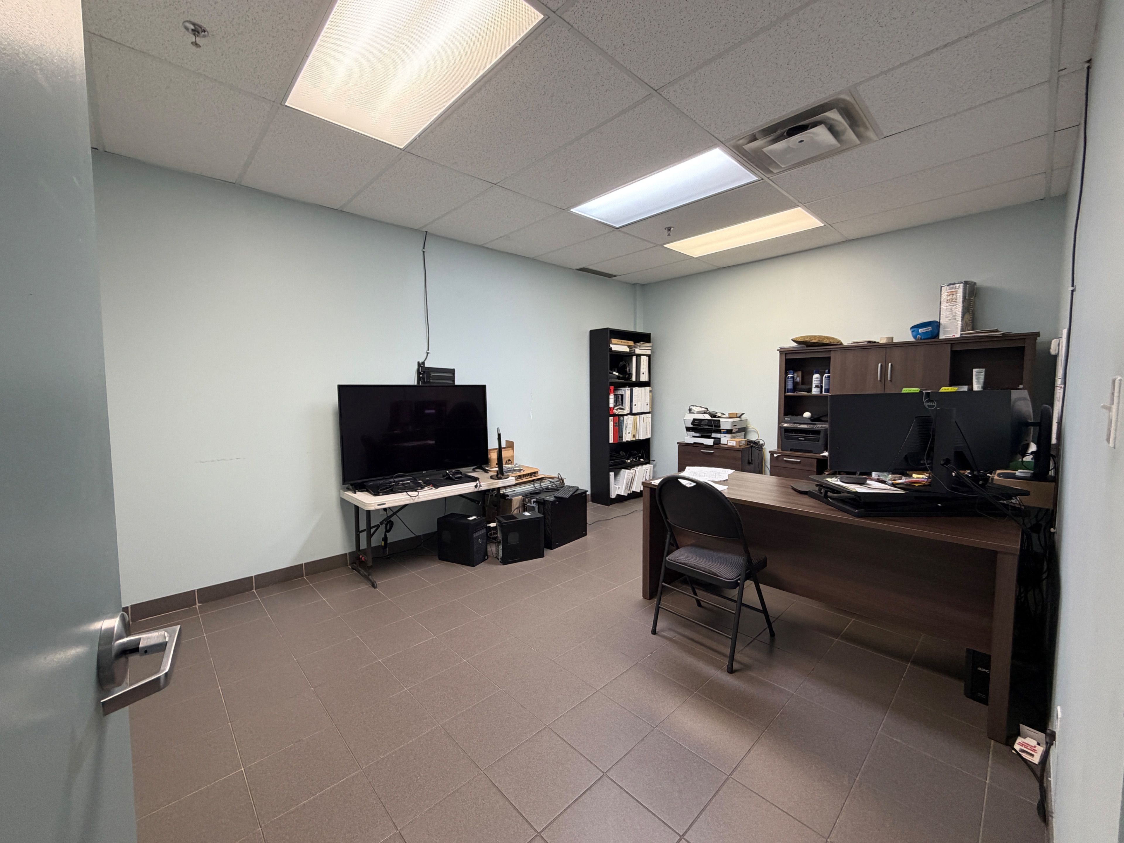 • Modern industrial condo with impressive 20' clear height for various uses.