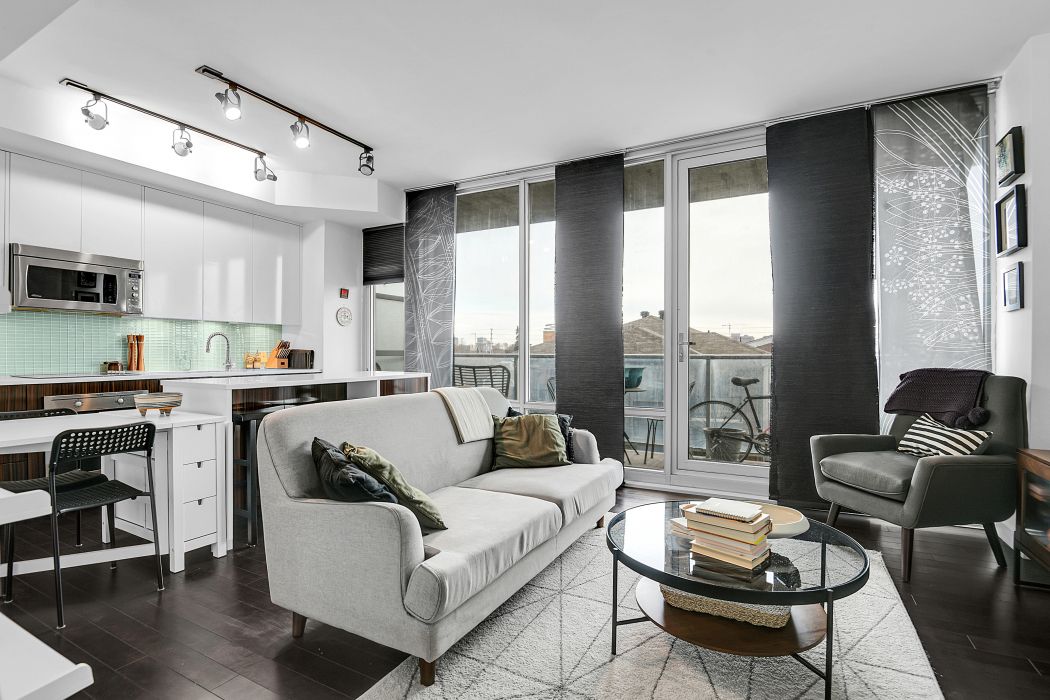 • Bright 1-bedroom condo with floor-to-ceiling windows and open layout.