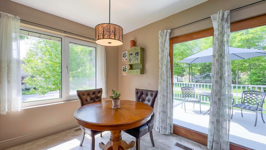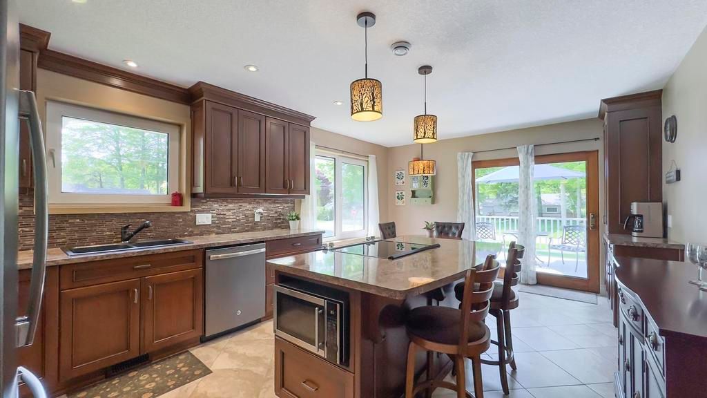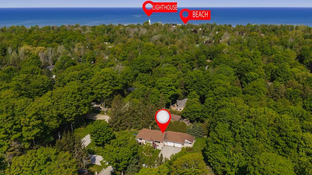 Welcome 201 shadywood crescent in picturesque point clark! Perfectly situated on a spacious, landscaped lot, this beautifully maintained raised bungalow is just a short stroll from the white sand beaches and world-famous sunsets of lake huron. Step into the grand foyer featuring skylights that flood the space with natural light. Upstairs, the bright and airy living room opens onto a cozy enclosed porch, the perfect spot to sip your morning coffee or unwind with a drink while watching the seasons change. The kitchen flows seamlessly into the dining area, where patio doors lead to a low-maintenance composite deck an ideal space to enjoy outdoor meals or simply relax in a quiet, natural setting. The primary bedroom is generously sized, and just down the hall you'll find a luxurious 5-piece spa-style bathroom complete with a jacuzzi tub. A second bedroom offers its own walk-in closet, providing ample storage. Downstairs, you will find a versatile lower level with a third bedroom, a second full bathroom, laundry room, second living room with fireplace, utility room, and additional storage spaces. Oversized windows throughout the home ensure every corner feels open and bright. Additional features include an oversized double garage with an attached sunroom, double car driveway, a storage shed, and low-maintenance landscaping that lets you enjoy the outdoors without all the upkeep. Whether you're looking for a peaceful year-round home or a relaxing weekend escape, this beautifully kept property offers comfort, space, and a welcoming community atmosphere.