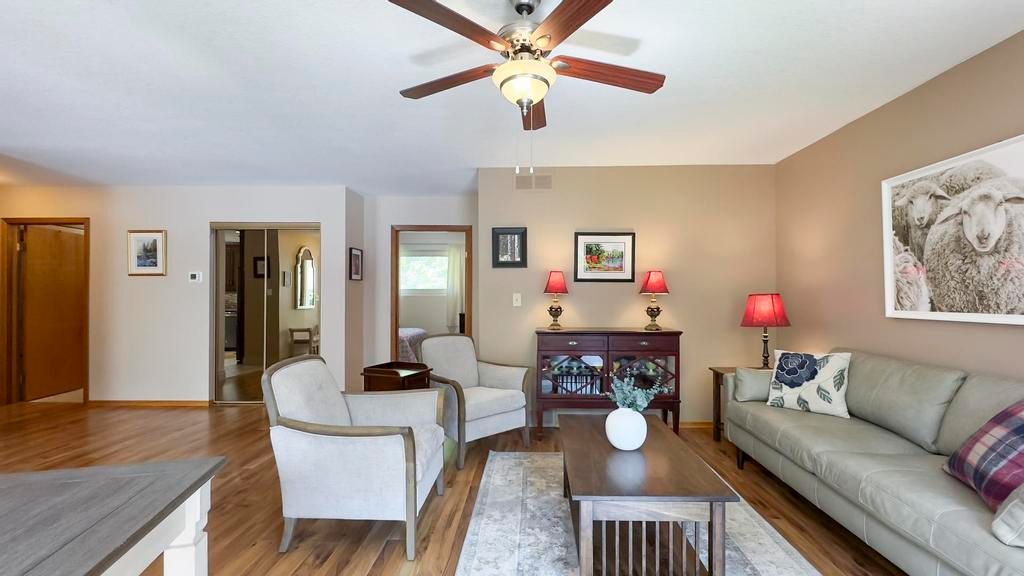 • Bright living room with cozy enclosed porch for relaxing views.