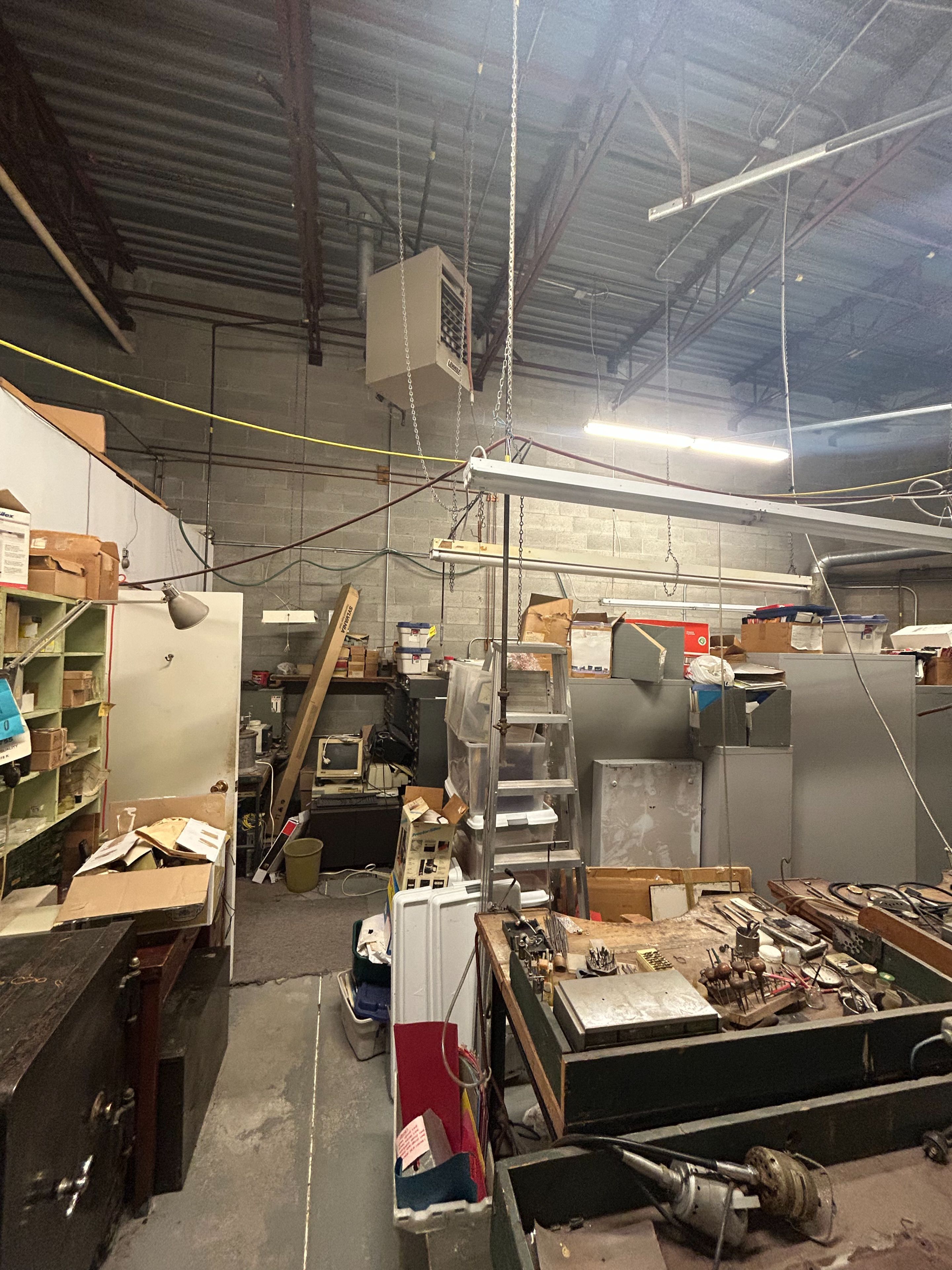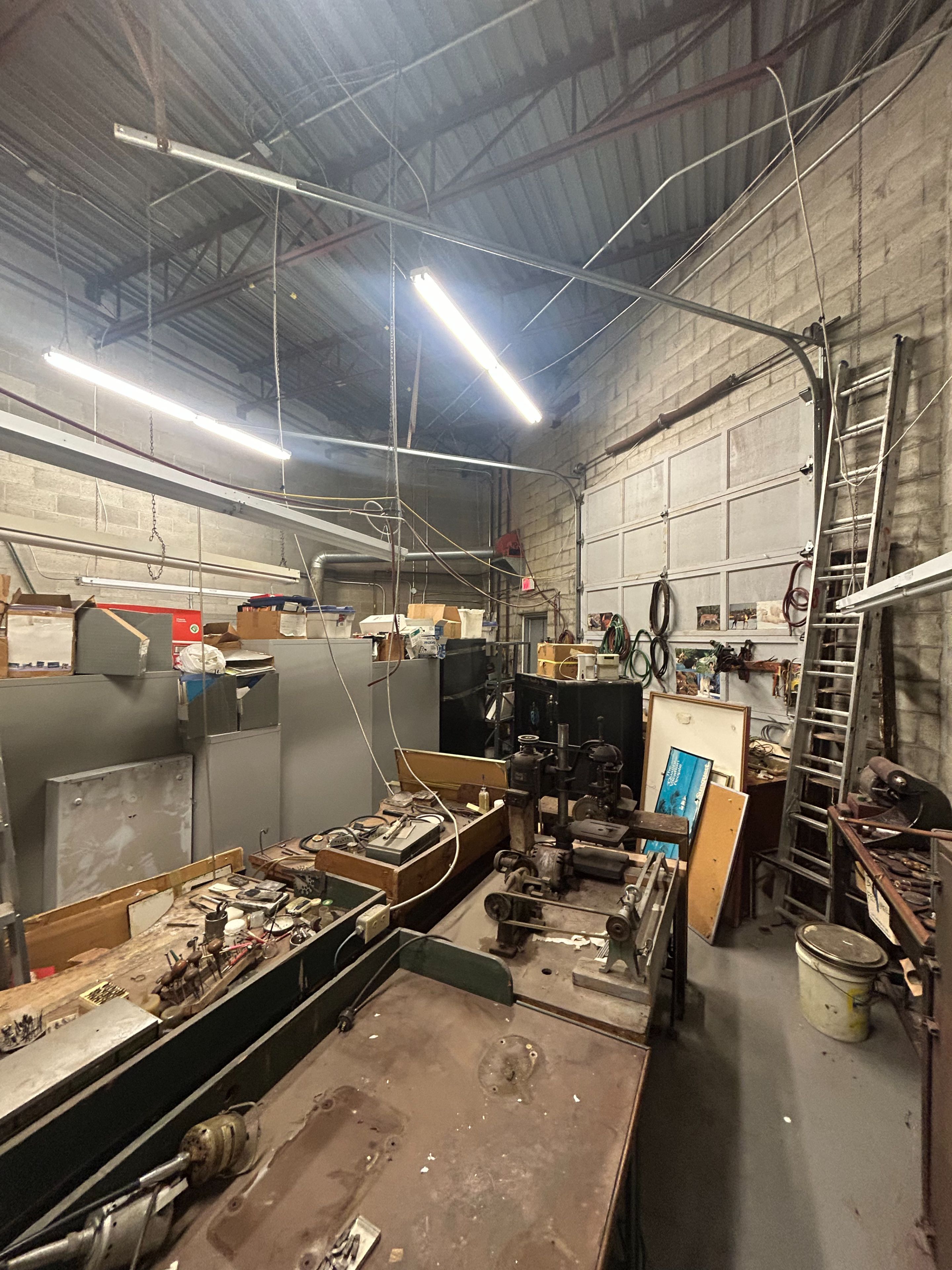 • Open warehouse with a large drive-in door for accessibility.