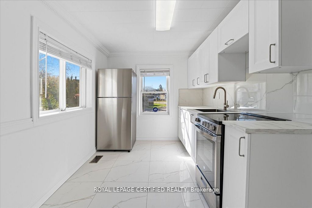 Beautifully renovated dream home just waiting for you! Welcome to your new haven! Just unpack your bags and start living your best life in this beautifully renovated home. Every detail has been meticulously crafted for those who appreciate style, comfort, and functionality. Key featuresmodern kitchen: a show-stopper with quartz countertops, sleek ceramic tiles, and top-of-the-line new appliances. Perfect for the family chef or casual home cooks alike. Luxurious bathroom: fully renovated with ceramic tiles and fine finishes. Floors to amaze: luxury plank vinyl flooring runs throughout the house, providing both elegance and durability. Freshly painted: with a refreshing new coat, both inside and outside, it gives a vibrant, tranquil living environment. Electrical upgrades: modern electrical systems replace the old knob and tube, ensuring safety and efficiency. Structural integrity: added support beams under the kitchen mean peace of mind for years to come. The entire structure has been repurged with care. The city has approved an 8 ft. Fence around the property for added privacy. Ideal for your lifestylewhether you're a couple, a small family, or enjoying your golden years, this home is designed with you in mind. Step inside and feel the warmth and joy of a place that matches your lifestyle and future plans. Neighborhood highlightsthis gem is nestled in a community that's not only welcoming but practical. Enjoy the convenience of being close to public transportation and the 401, making commutes a breeze and exploring the city easier than ever. Imagine calling this place home: a setting where modern amenities meet thoughtful touches, all designed to fit your dreams. Don't miss out on the chance to make it yours!