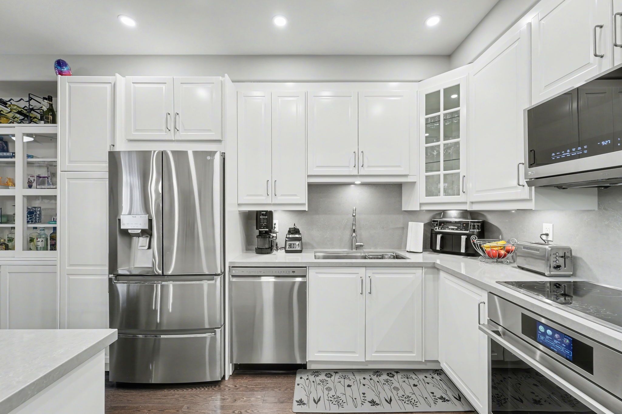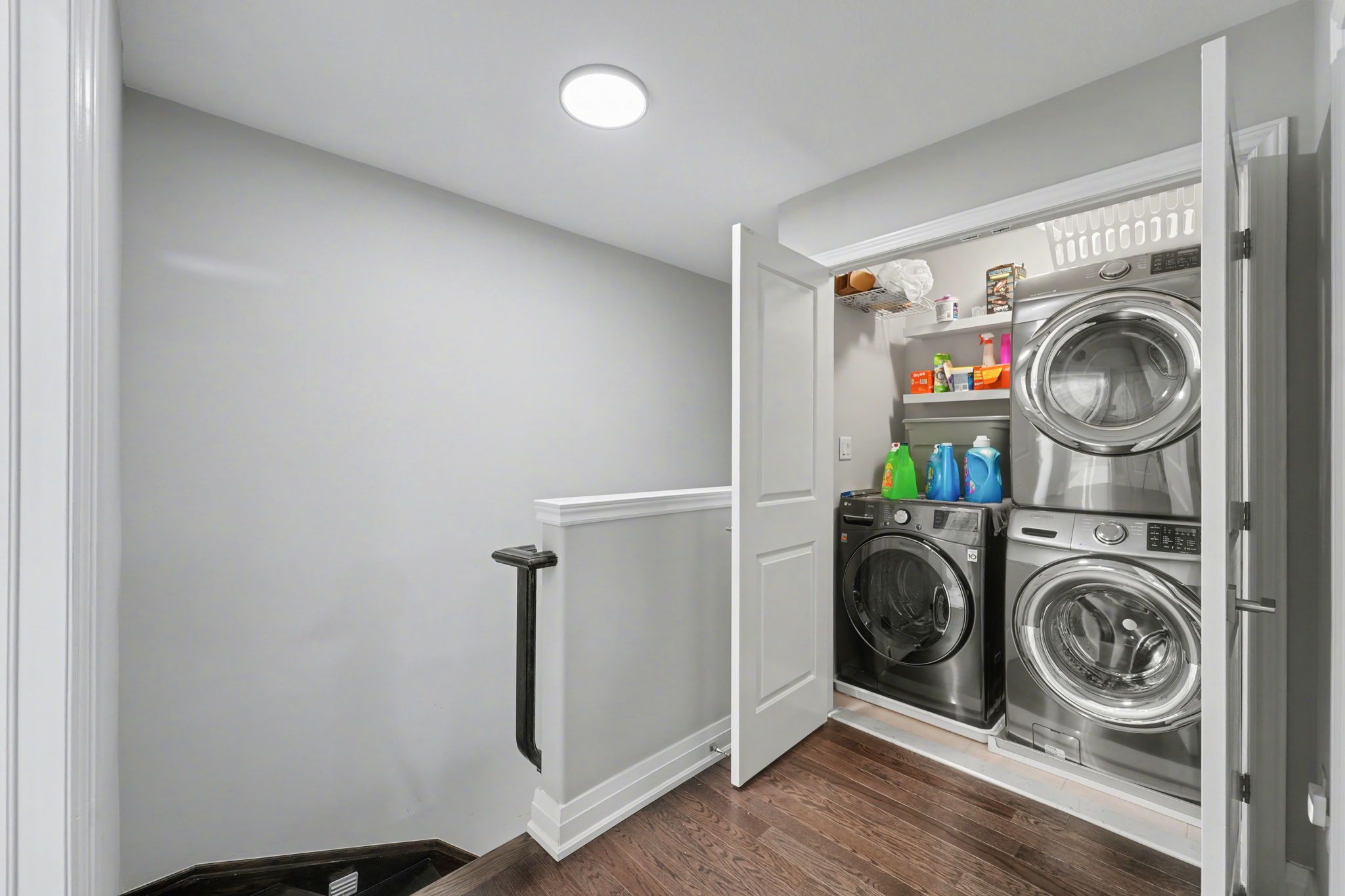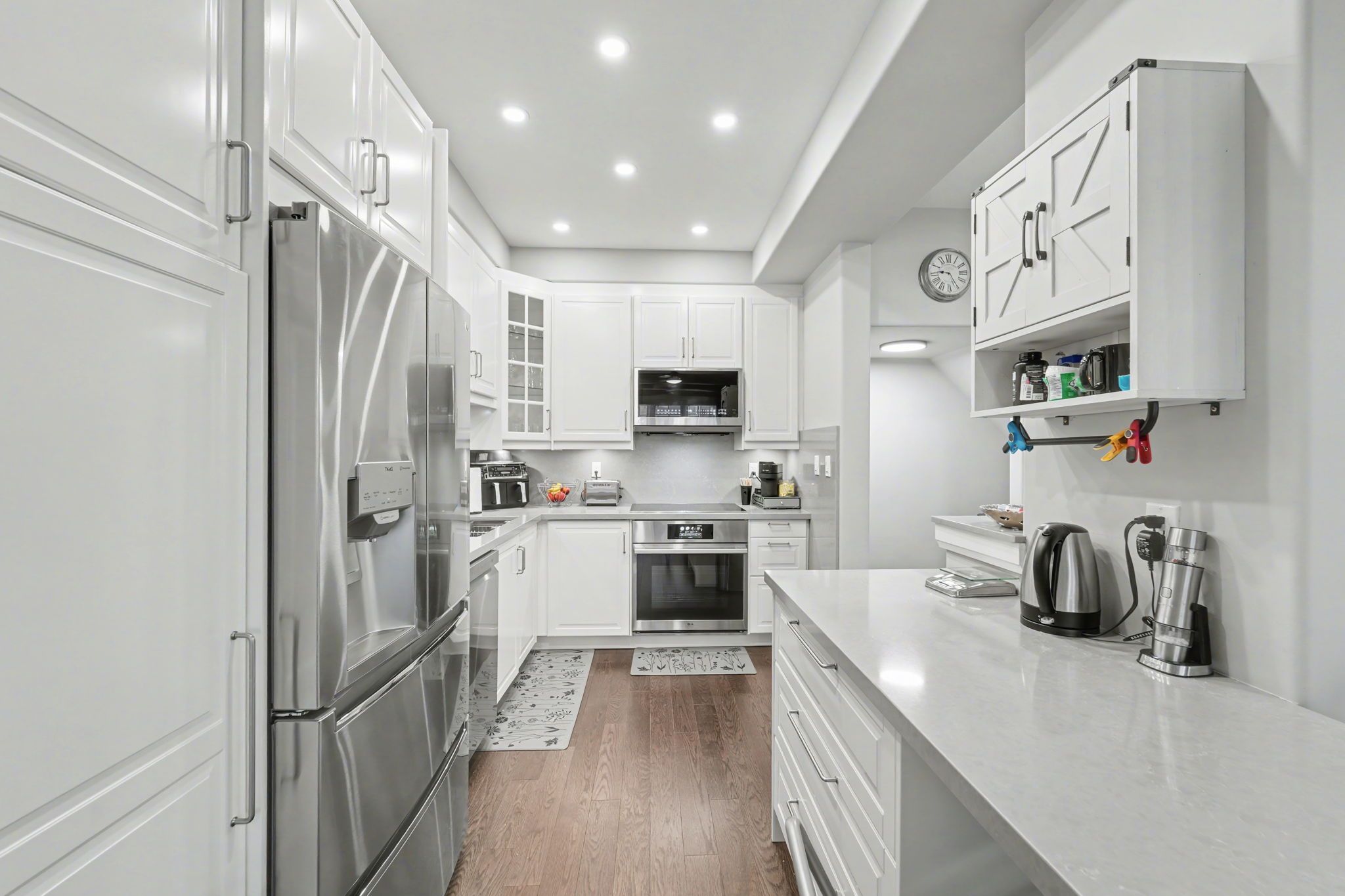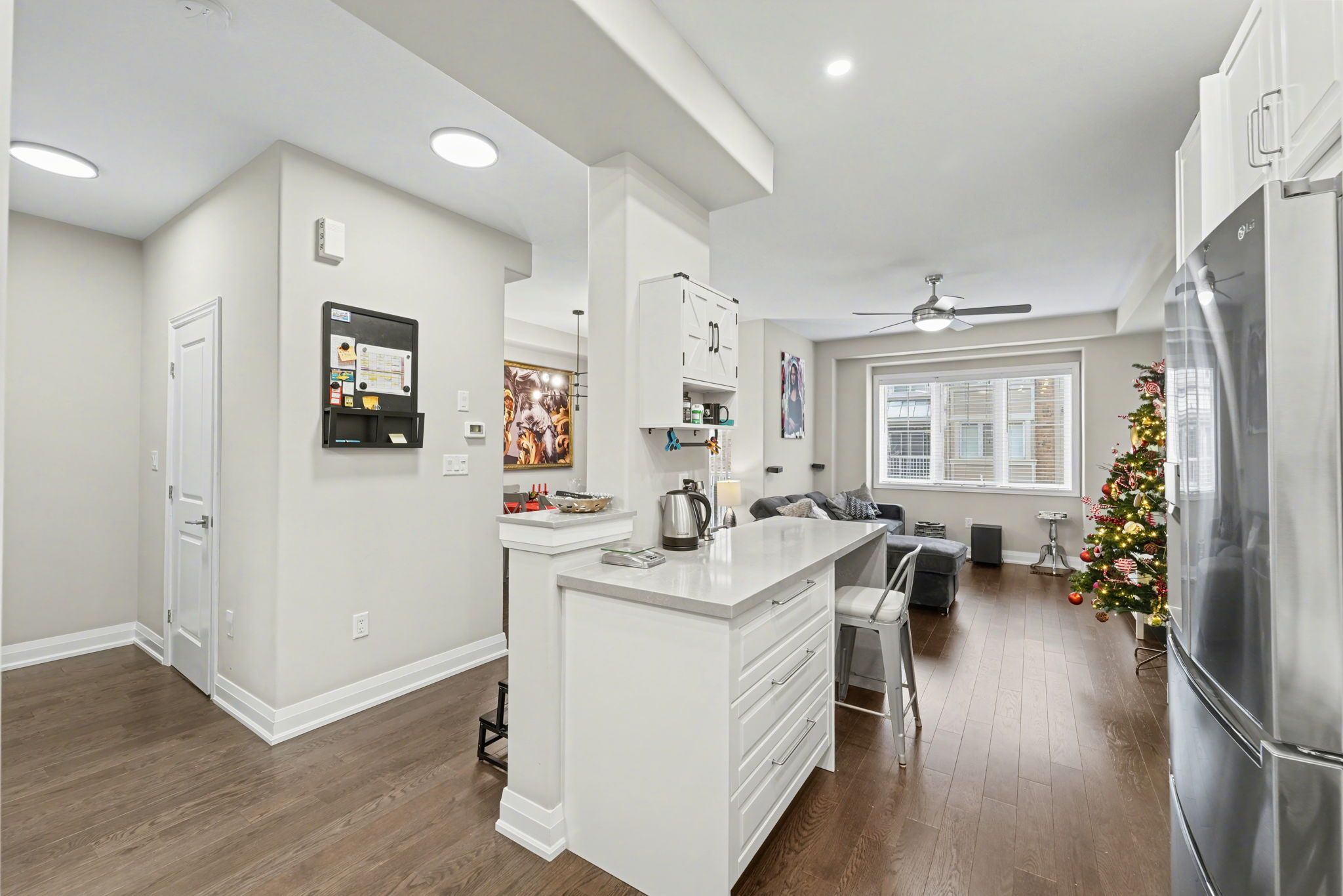 Welcome to 201 westbank trail unit 49! This fully renovated 3-storey townhouse in sought-after stoney creek blends modern design with convenience. The open-concept 2nd floor features a chefs kitchen with quartz countertops, waterfall island and quartz backsplash, french-door lg appliances with cooktop and built in stove and hardwood floors through out, plus pot lights with dimmers. Elegant dining area with walkout to balcony and spacious living room. Upstairs boast a luxurious primary retreat, spa-inspired bathroom with huge standup shower and a rainfall shower panel. 2nd floor laundry (samsung washer/dryer), additional lg 2 in 1 washer and dryer. A versatile 2nd bedroom converted to a private gym. The home welcomes you with a spacious foyer featuring a large closet and additional storage closet, offering plenty of room to stay organized. A generous garage with built-in shelving adds even more convenience, providing the perfect space for tools, seasonal items, or everyday storage needs. Proudly showcasing over $80,000 in upgrades, this home is truly move-in ready. Minutes to red hill, linc & qew.