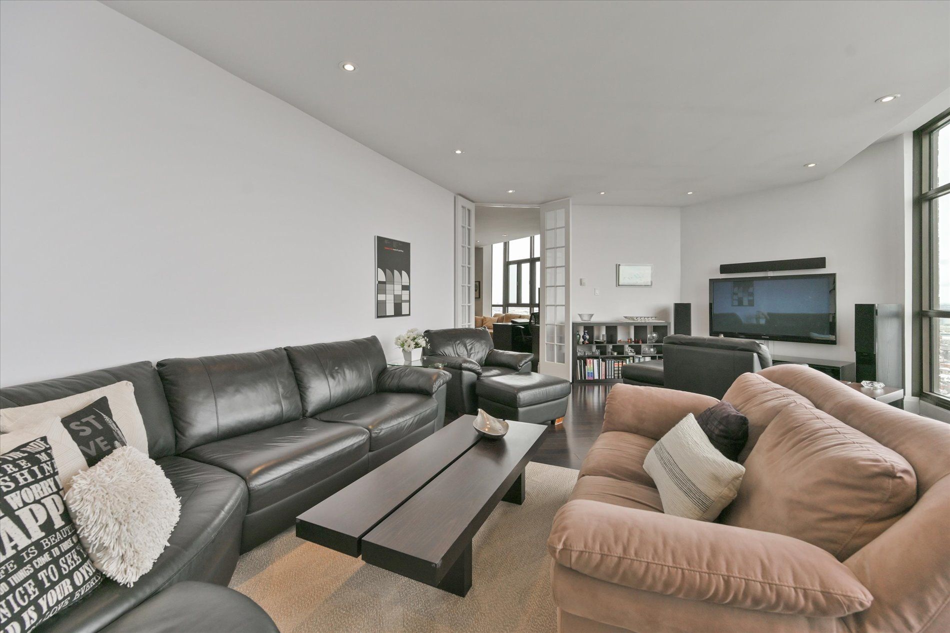 Experience refined penthouse living in the heart of islington 2000. This rarely offered 2+1 bedroom, 2-bath residence spans approximately 2,100 sq ft, delivering exceptional scale, natural light, and timeless comfort within a beautifully maintained, established building surrounded by lush landscaped grounds. Expansive floor-to-ceiling windows showcase breathtaking, unobstructed north-west views, filling the home with golden afternoon light and spectacular sunsets. A dramatic cathedral ceiling with an oversized skylight crowns the chef-inspired kitchen, creating an airy, light-filled centerpiece ideal for both everyday living and entertaining. Elegant stone tile and engineered hardwood flooring flow throughout, enhancing the suite's classic appeal. Generous principal rooms provide remarkable flexibility for hosting and relaxing alike, while the separate den offers the perfect space for a home office, library, or guest retreat. The thoughtfully designed kitchen features abundant cabinetry and prep space to inspire culinary creativity. The spacious primary suite is a private sanctuary, complete with ample closet storage and a full ensuite bath. A well-proportioned second bedroom and additional full bath ensure comfort for family and guests. Offering the privacy, quiet prestige, and proportions of true penthouse living, along with exceptional building amenities, this residence is ideally situated close to transit, major highways, shopping, and parks. A rare opportunity to own substantial square footage and sweeping views in one of etobicoke's most established communities.