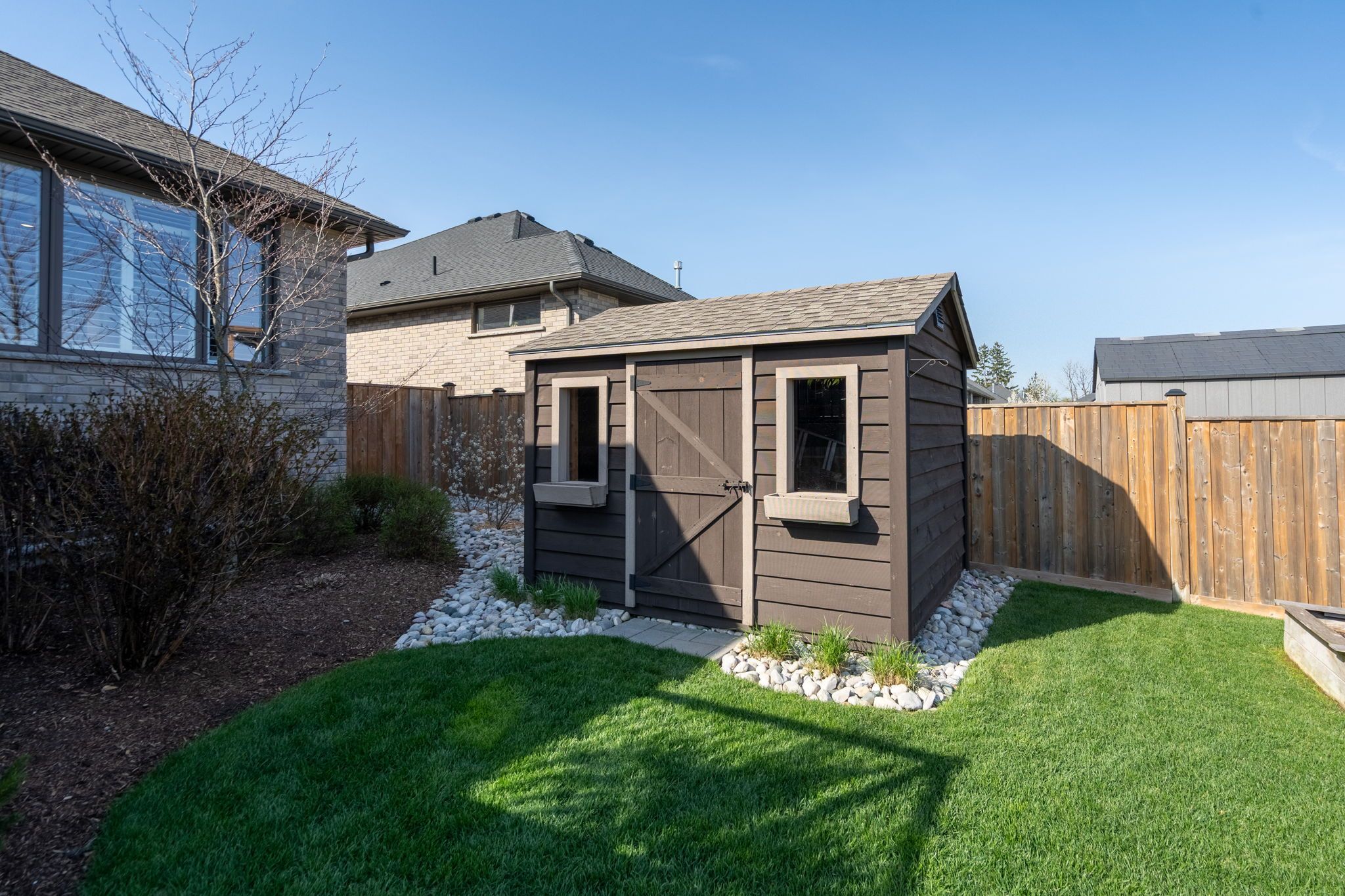Sharp, bright and well beyond "better than new!" every inch of this home will impress from your from covered front porch to your part-covered rear deck perched over your fully fenced greenspace and idyllic gardens that are groomed by baseline nursery. Over 2700sf of luxury living space and tastefully appointed with custom features offering 2+2 bedrooms and 3 full baths + 900sf of storage/workshop space or further room for a gymnasium or further living space. A central vaulted great room with gas fireplace welcomes, opens to a chic black on white kitchen with relief splash and both granite and quartz counters plus ambient décor lighting. A lavish primary 5 piece ensuite offers heated ceramic floor, a relaxing soaker, glass/cermaic shower and separate water closet. Your lower-level bedroom with oversized wall-to-wall garden level windows is complemented by yet another full bath and expansive living room + den or bedroom if required by adding a door. Further features: crown molding in master bedroom; hunter douglas shutters/blinds from custom shades; irrigation system from greenland irrigation; deep garage can fit full sized pick up; 16 x 20 composite deck and outdoor fan; granite and quartz counter tops in baths; 8 x 10 garden shed; cement patio and path to rear of home; large "bristol" under mount sink with grate; dual fuel ge cafe range. Mount brydges is easily one of the best communities surrounding the greater london area with community centers, shops, abundant amenities and very easy access to 401/402 and of course many many golf courses!... And so much more. Come see this place!! You will be impressed!!!