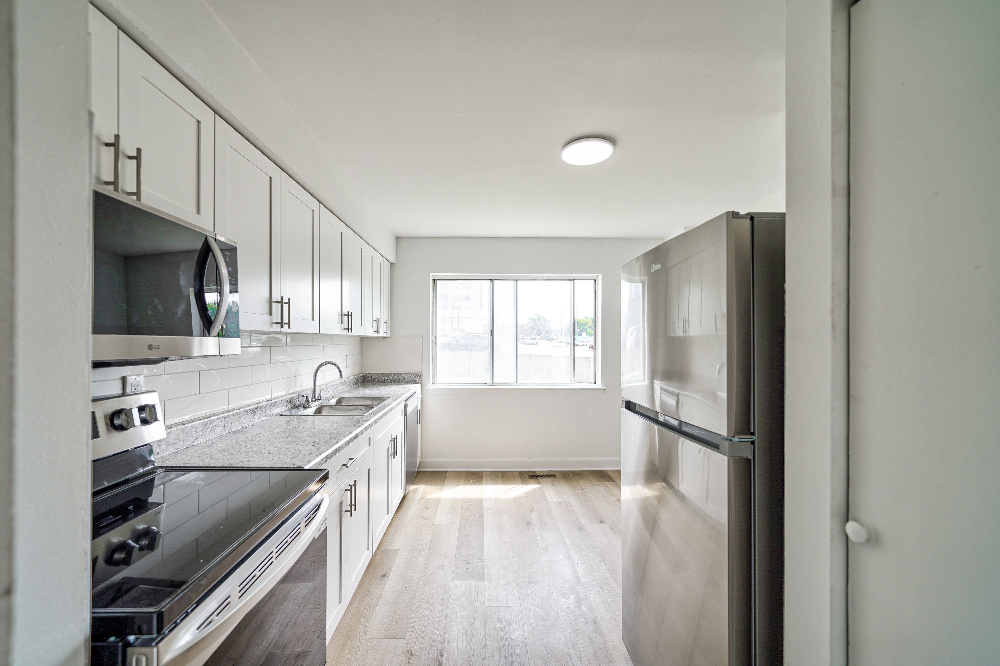 • Hardwood floors and new appliances throughout the townhouse.