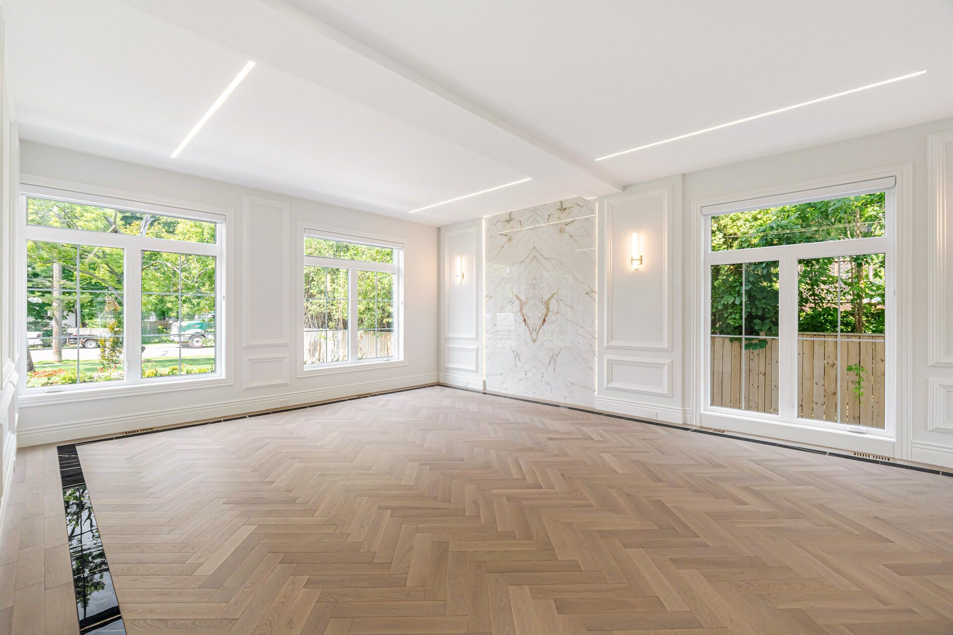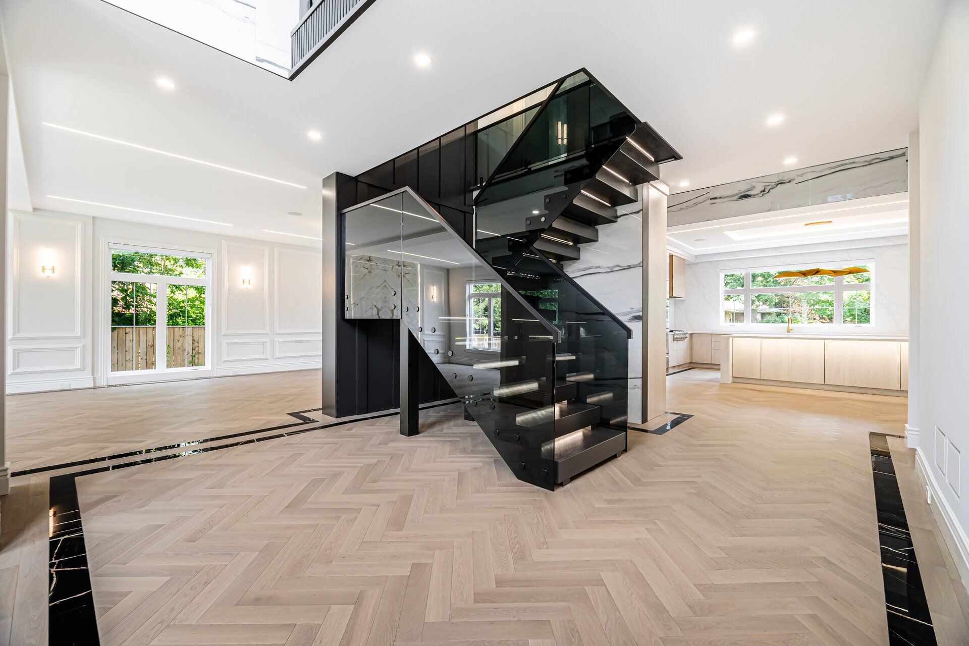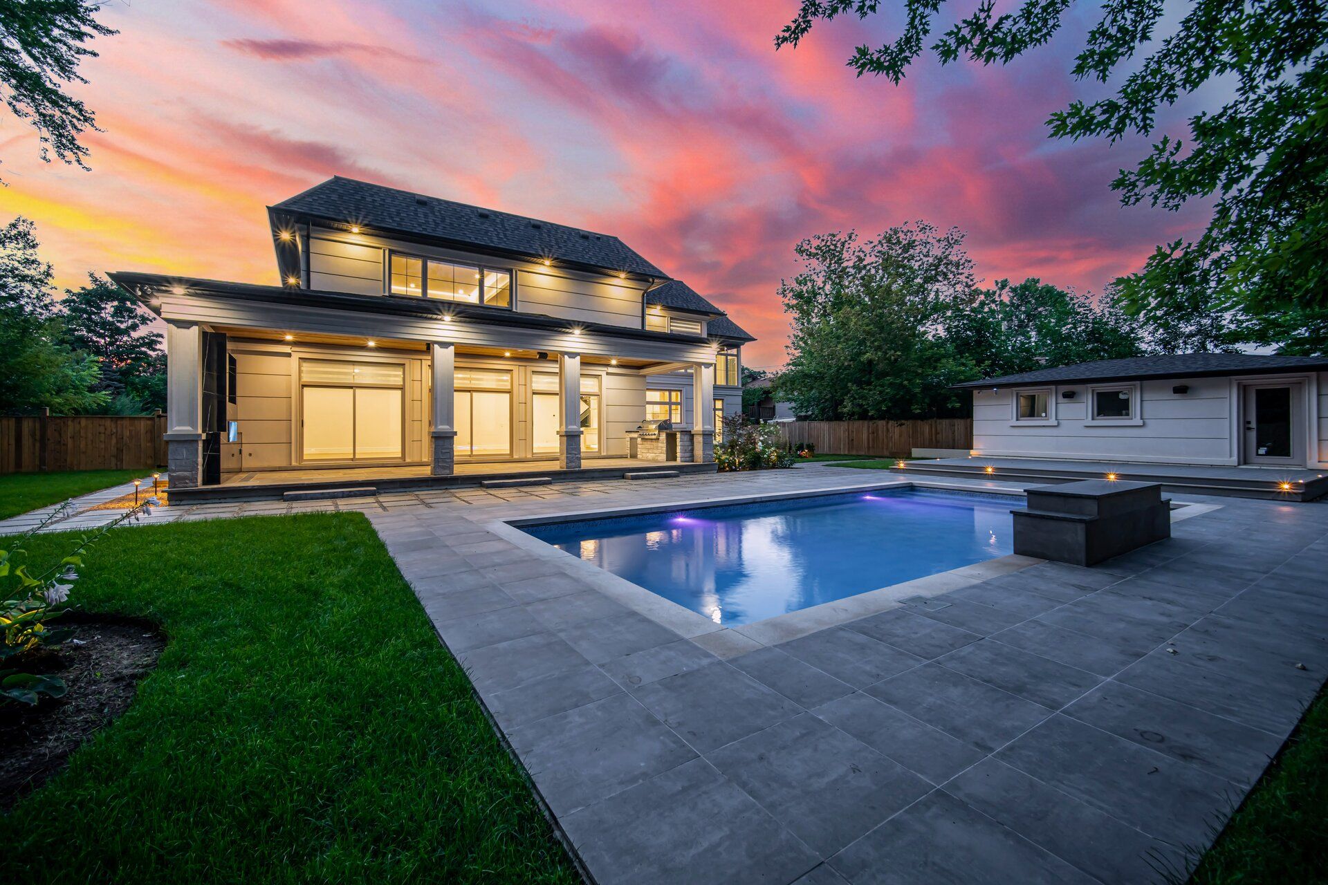 Set on a commanding 112. 5'x199. 5' lot just steps from the lake, this custom modern-traditional estate offers nearly 11,000sf of finished living space across three levels. A long private drive with parking for up to 12 cars and oversized 3-car garage create a striking arrival, complemented by stone and stucco architecture, soffit lighting, and professionally landscaped grounds. A dramatic double-height foyer introduces the home's scale, anchored by an open-riser staircase with smoked glass panels and integrated lighting. Principal rooms feature tile inlaid borders, herringbone engineered hardwood flooring, oversized windows, and sleek architectural lighting. The chef's kitchen is centred around a 10' quartz island with premium thermador appliances, bespoke cabinetry, and a dedicated coffee station, flowing seamlessly into the family room with a modern fireplace feature wall, built-in media cabinetry, and multiple walkouts to a covered portico designed for four-season entertaining. A private main-floor office with double french doors and its own exterior entry offers exceptional work-from-home flexibility. Upstairs, four bedroom suites include a luxurious primary retreat with dual walk-in closets and a spa-inspired ensuite featuring a steam shower, freestanding tub, wall-mounted fixtures, and heated floor. The walk-up lower level is designed for lifestyle living with radiant in-floor heating, theatre room, wet bar, glass-enclosed gym, guest suite, pet spa, and extensive storage. Outdoor living is elevated with a rectangular pool and water feature, large-format stone terraces, composite sun deck, covered outdoor fireplace wall with tv rough-in, built-in bbq station, and pool-house. Smart home technology, multi-zone audio, dual hvac systems, and security surveillance complete this exceptional lakeshore road offering near parks, trails, and bronte amenities. An outstanding blend of architectural presence, scale, and resort-style living! (some images have virtual staging)